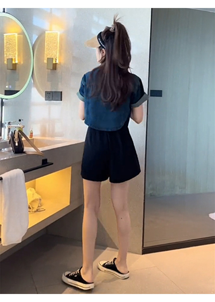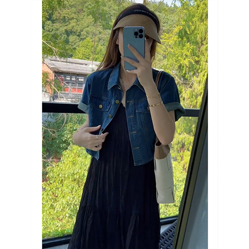 외부 데님 재킷 여자 2025 봄 여름 한국 스타일 새로운 올 매치 짧은 소매 캐주얼 셔츠 작은 짧은 탑