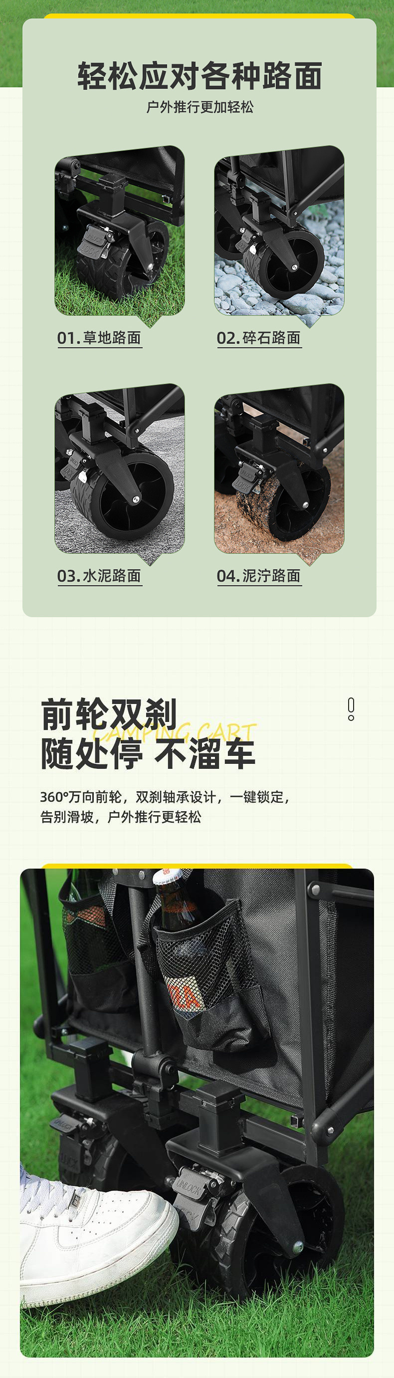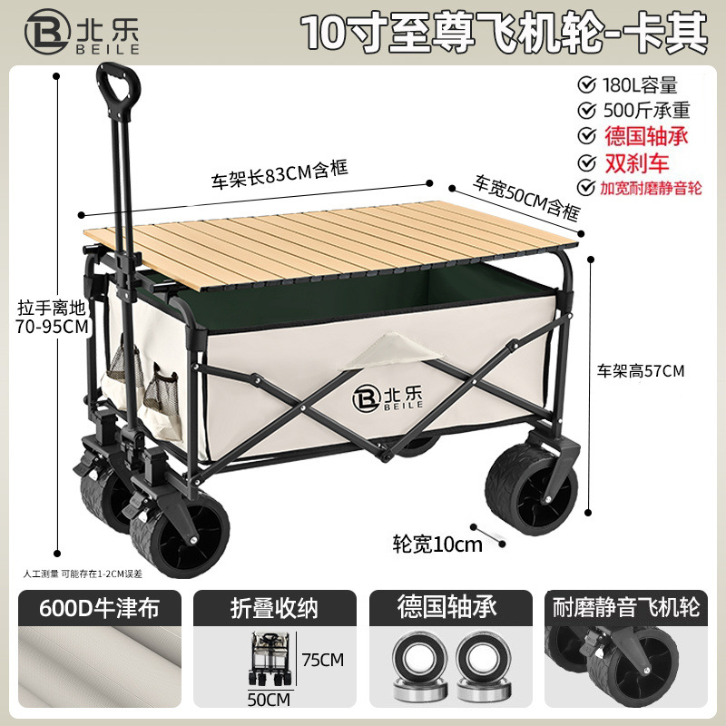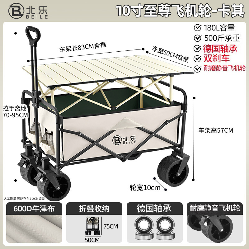 • 캠퍼밴 + 접이식 테이블 - 이중 브레이크가 장착된 대형 항공기 바퀴(카키색)