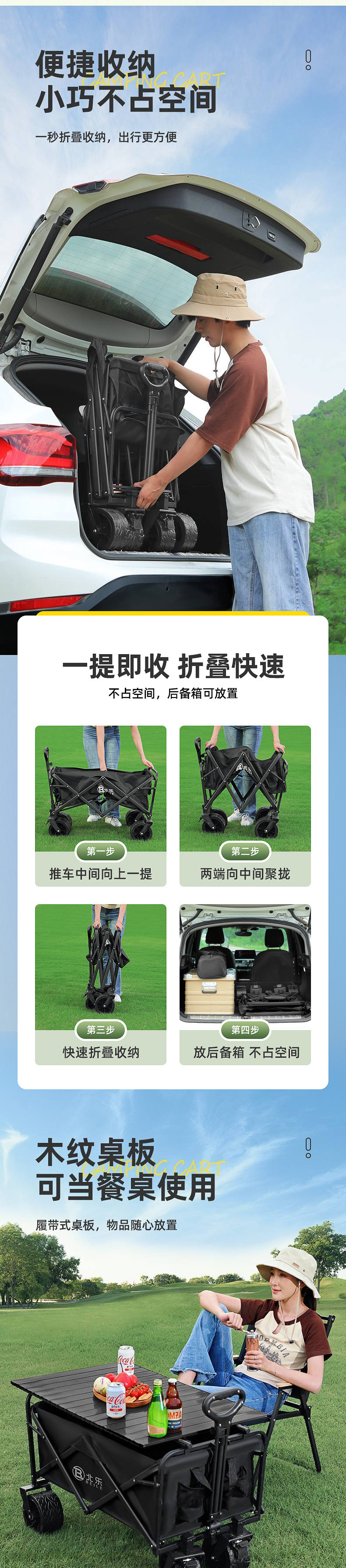 새로운 캠핑 카트 접이식 야외 핸드 푸시 피크닉 자동차 휴대용 캠프 트레일러 풀 로드 작은 당김 자동차 캠핑 차스토어 가기