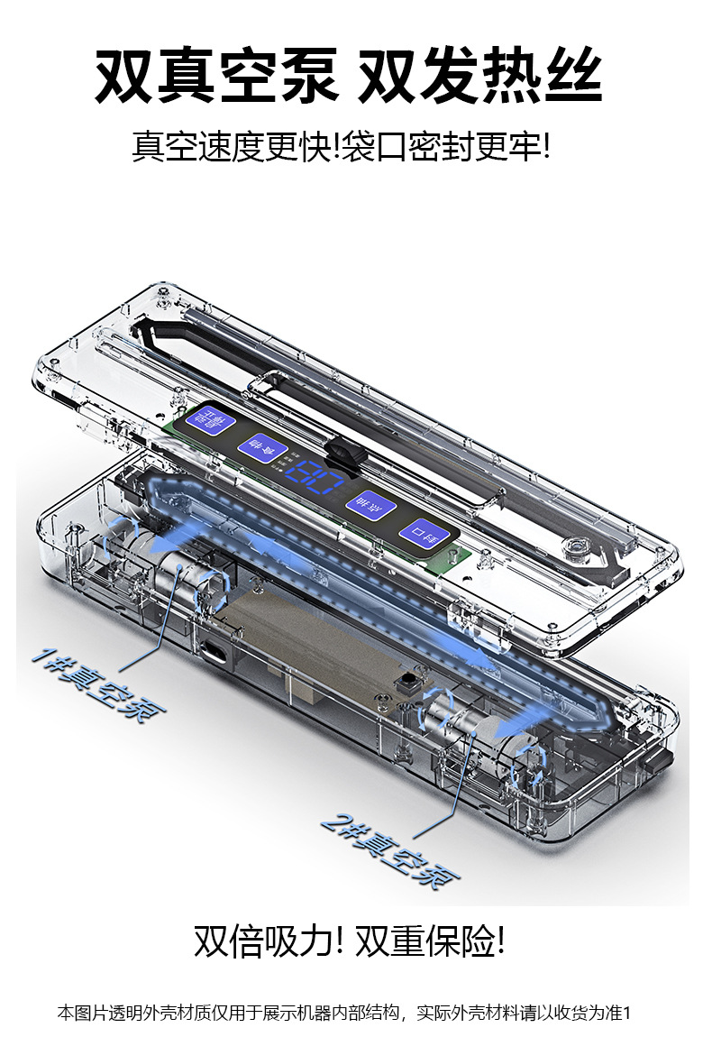 • [공식 표준 구성] 블루 라이트 윈도우 더블 펌프 + 8MM 더블 씰 + 100KPA 대용량 흡입 + 20x30cm 진공 백 150개