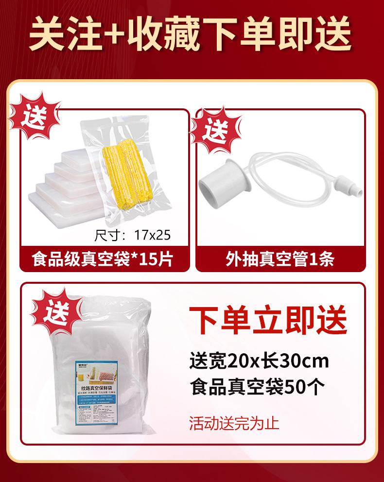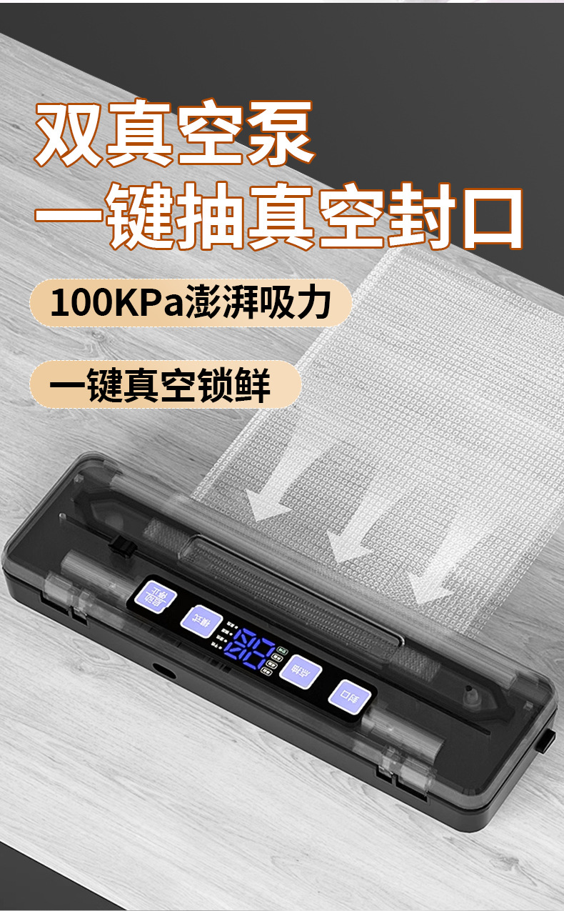 • [공식 표준 구성] 블루 라이트 윈도우 더블 펌프 + 8MM 더블 씰 + 100KPA 대용량 흡입 + 20x30cm 진공 백 100개