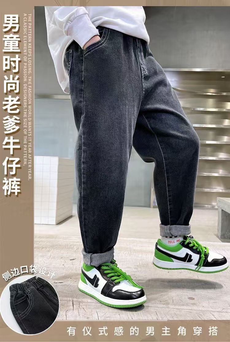 남아용 청바지 2025 봄 신상 중대형 아동용 루즈핏 바지 패셔너블한 한국 스타일 캐주얼 스트레이트 팬츠