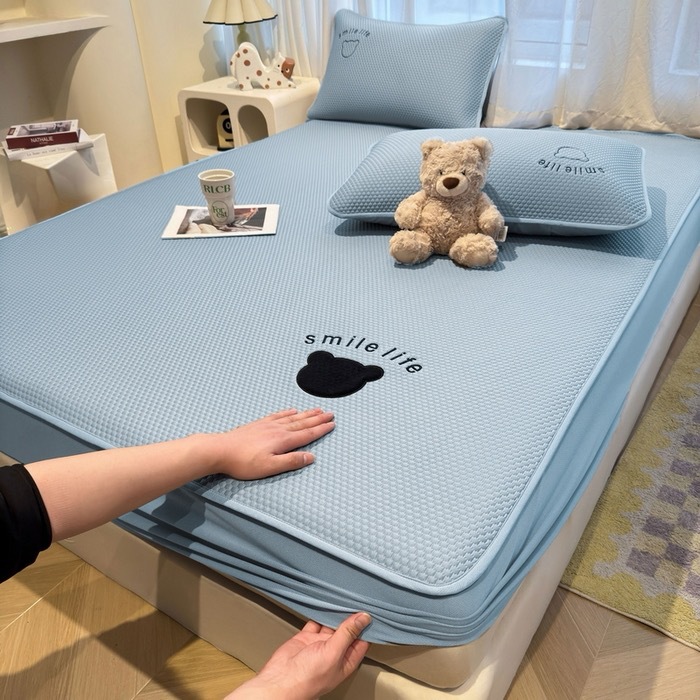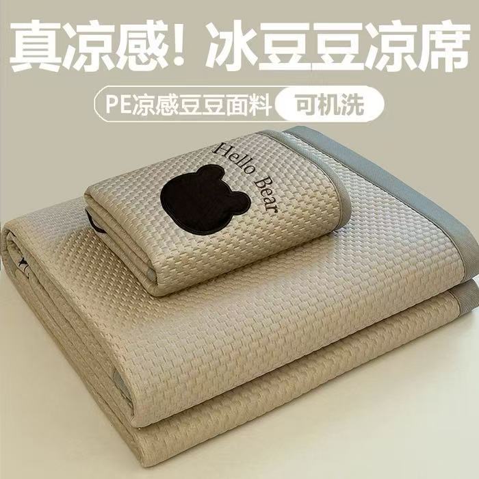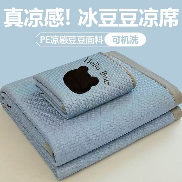 여름 얼음 콩 침대 시트 매트 3 조각 세트 기계 세탁기 침대 모자 가정용 에어컨 매트 PE 쿨 아이스 실크 매트스토어 가기