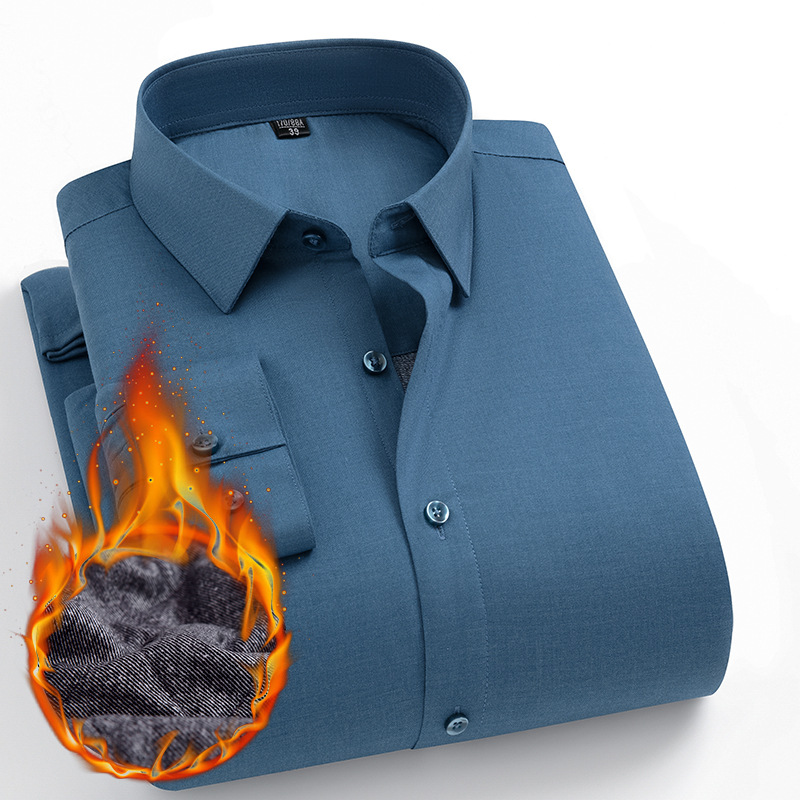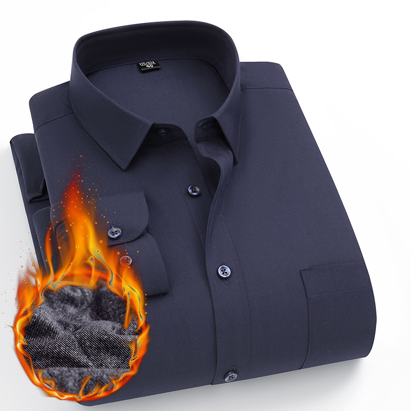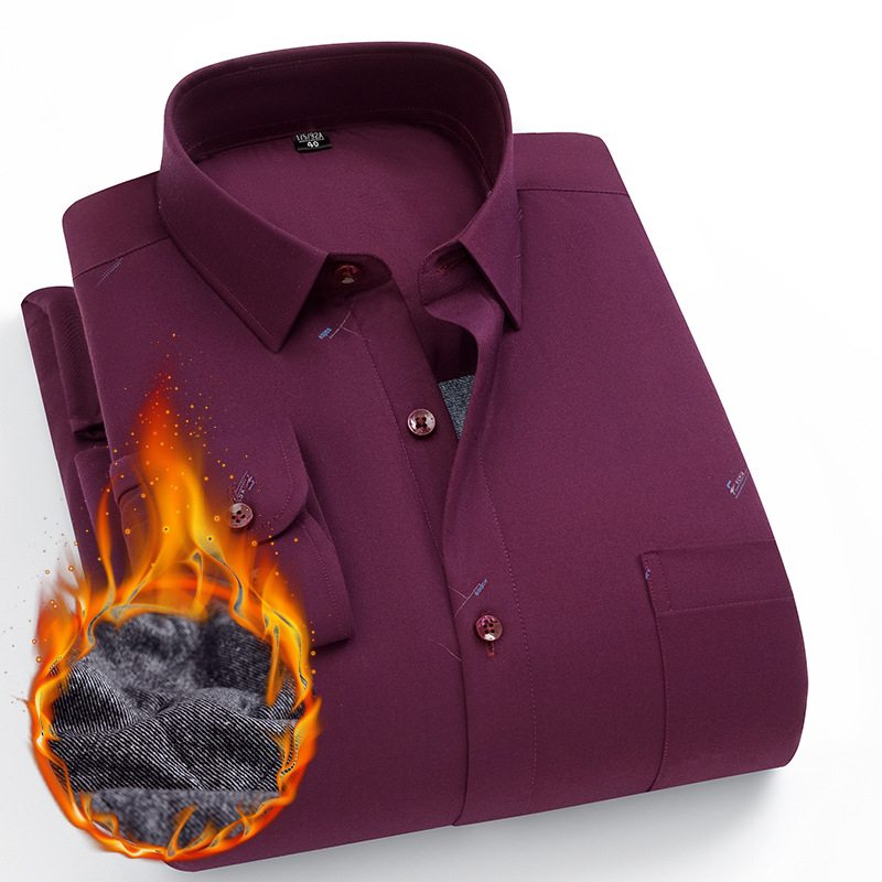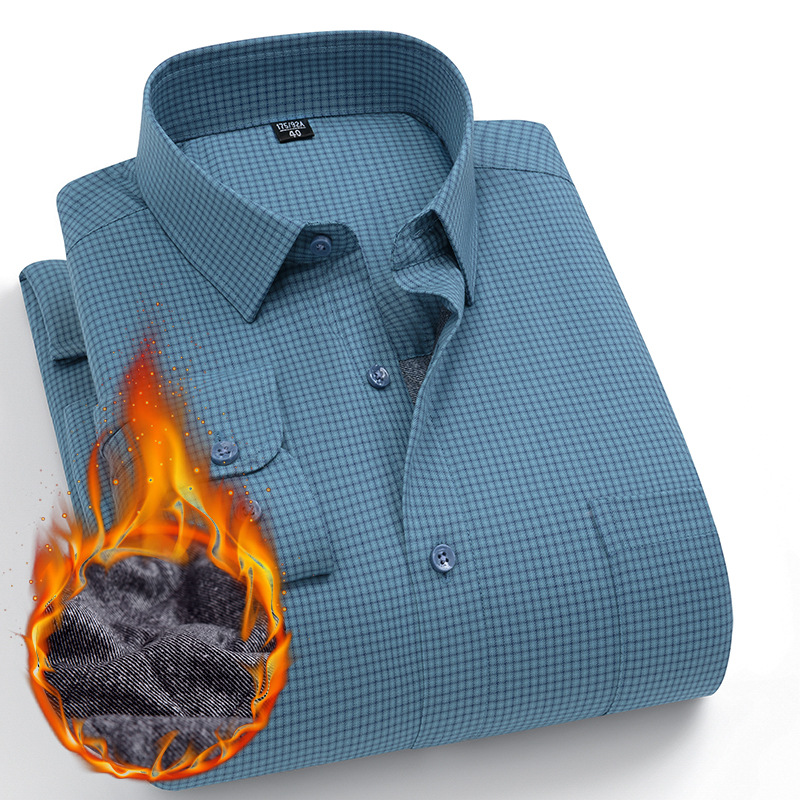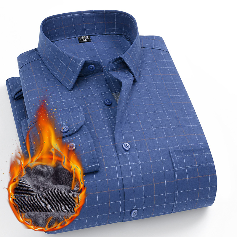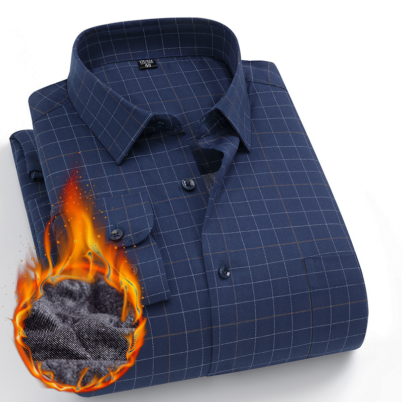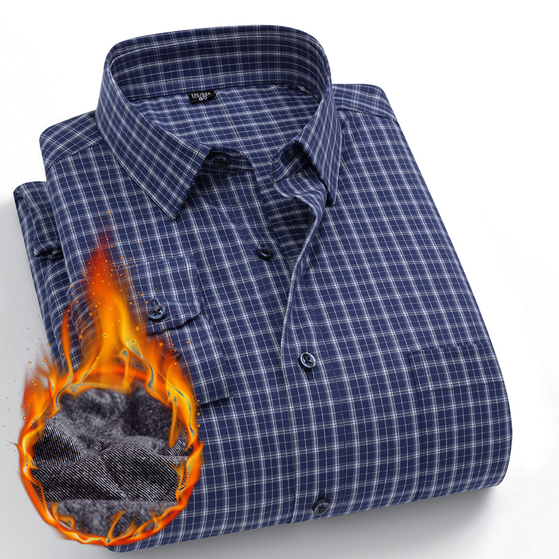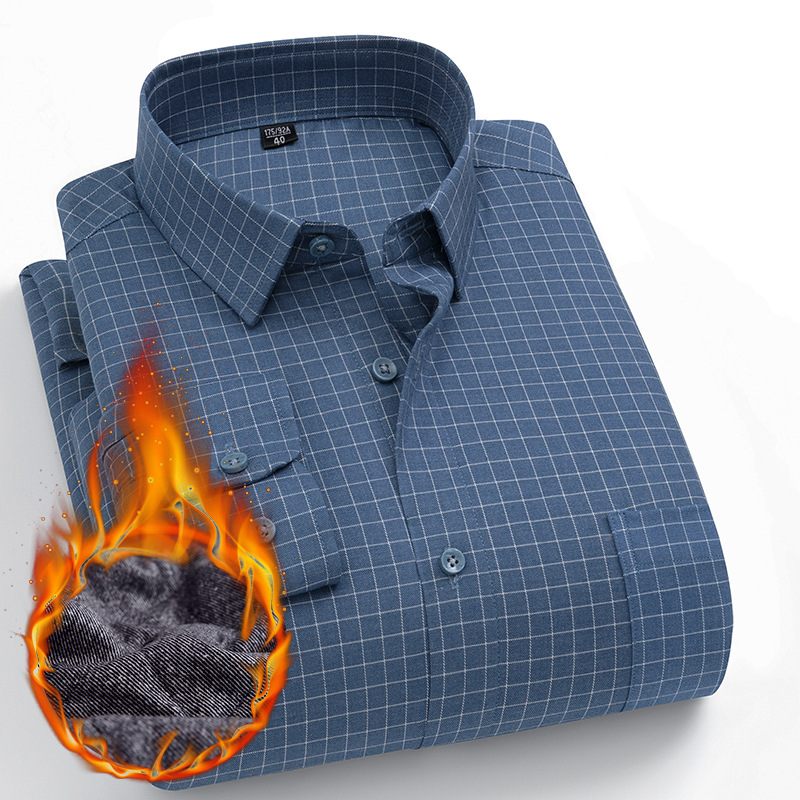 새로운 스타일의 울 따뜻한 셔츠 남성용 격자 무늬 비즈니스 캐주얼 겨울 중년 남성용 기모 플러스 벨벳 두꺼운 셔츠