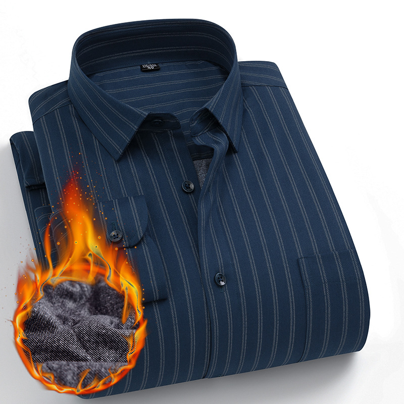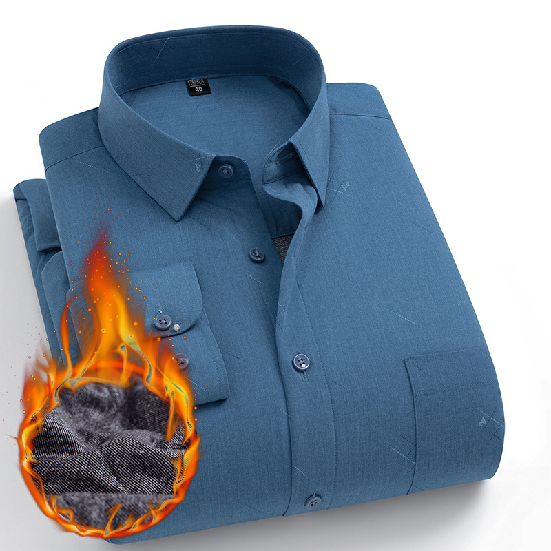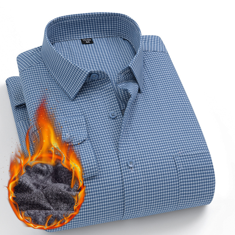 새로운 스타일의 울 따뜻한 셔츠 남성용 격자 무늬 비즈니스 캐주얼 겨울 중년 남성용 기모 플러스 벨벳 두꺼운 셔츠스토어 가기