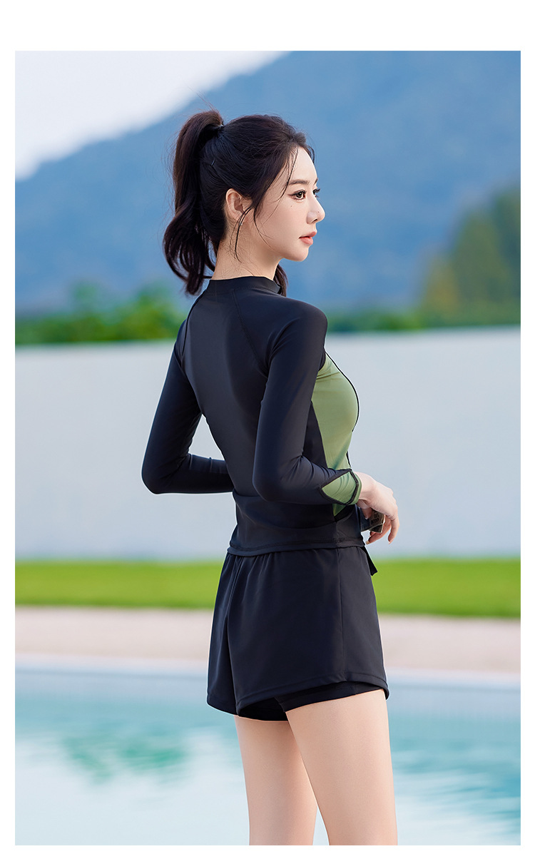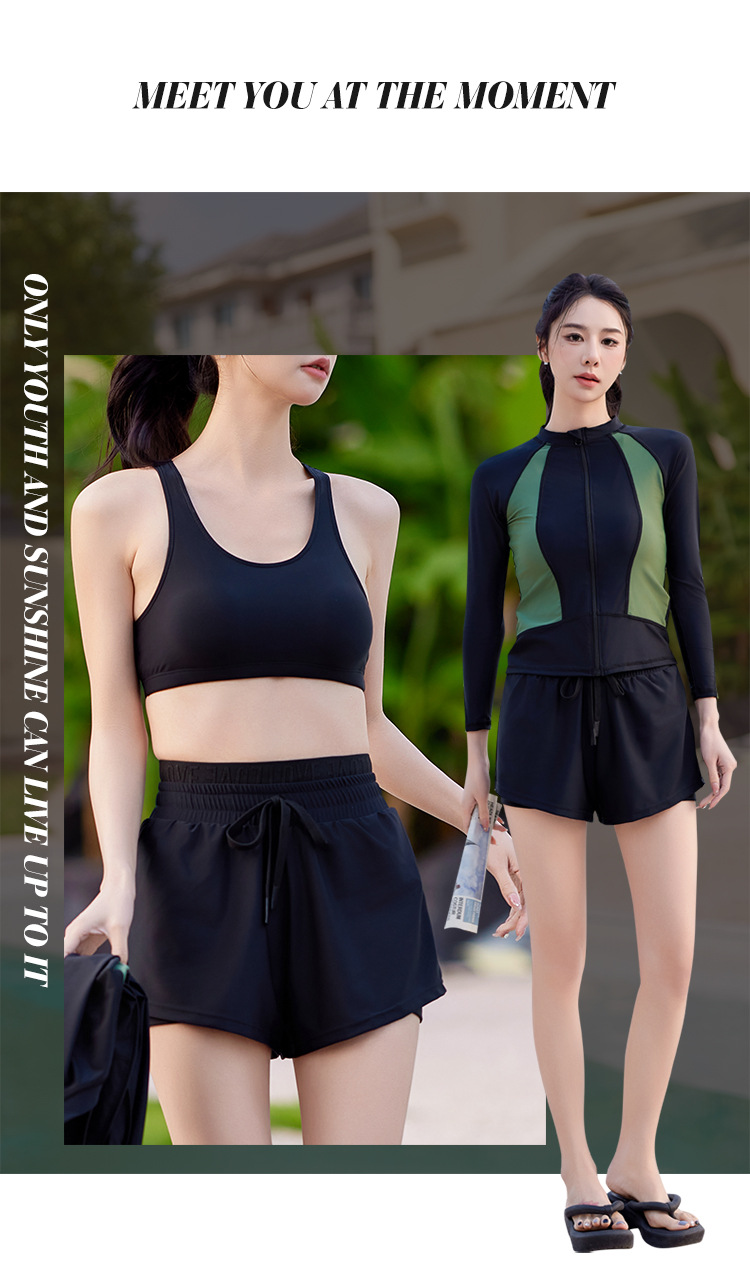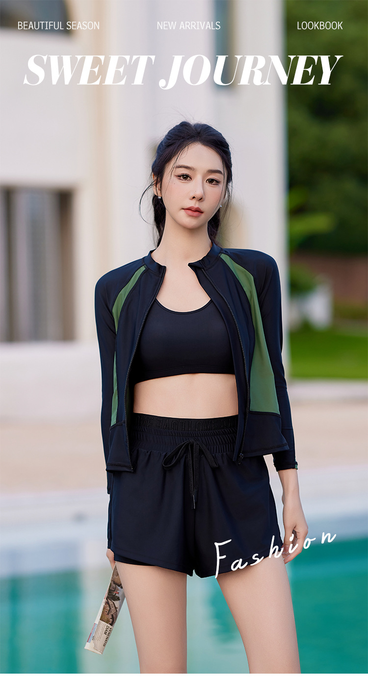 2025 신상 여성 수영복 스플릿 3피스 세트, 보수적 배 커버, 슬리밍, 섹시한 한국 인스 스타일 온천 수영복스토어 가기