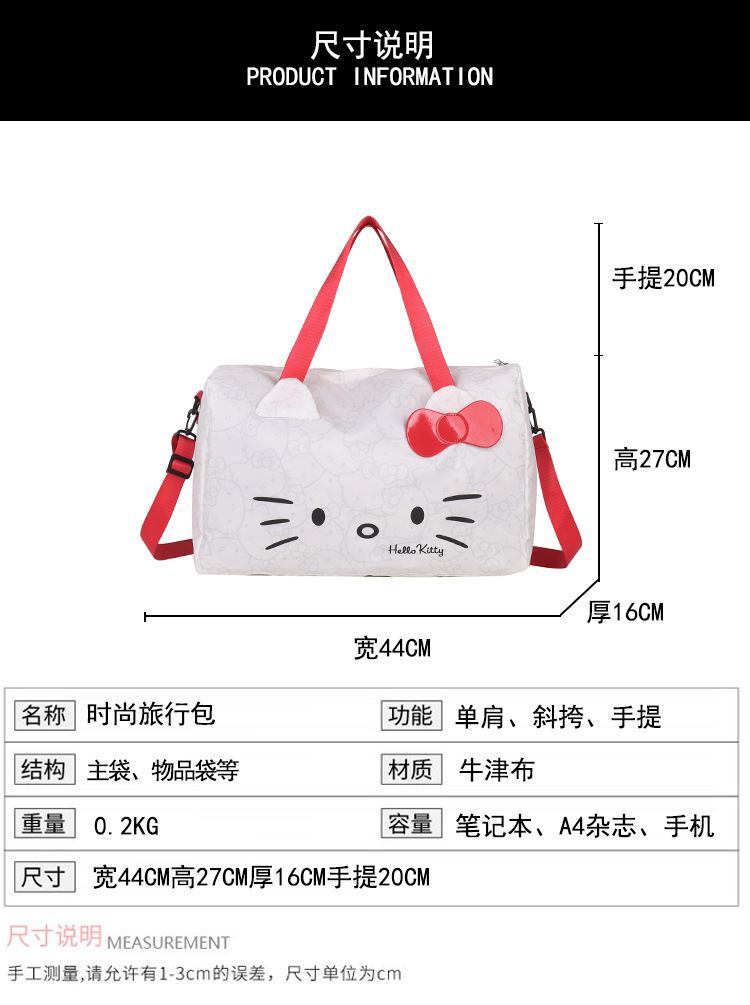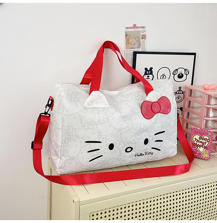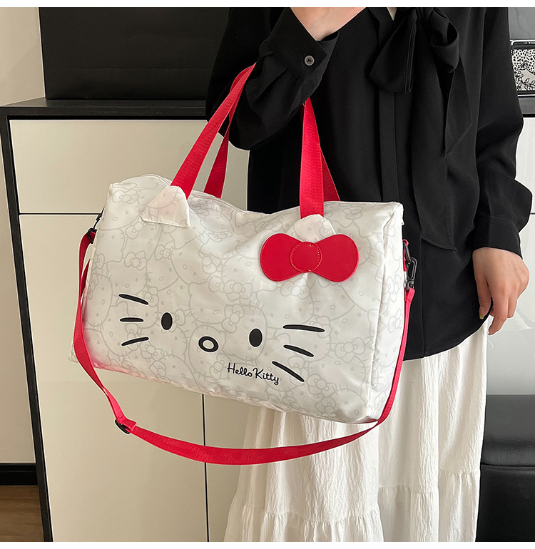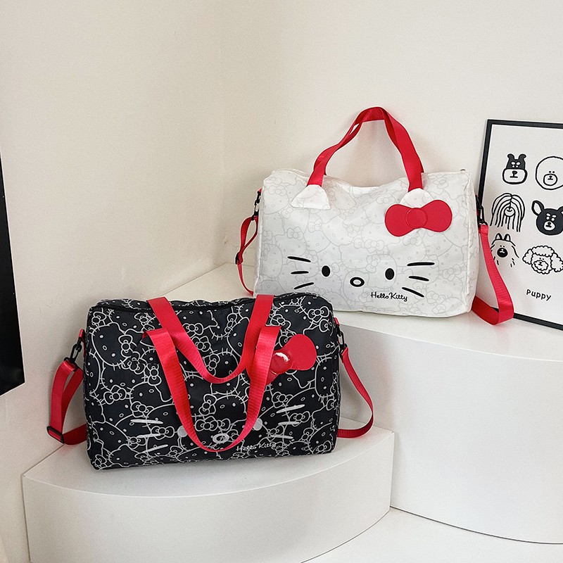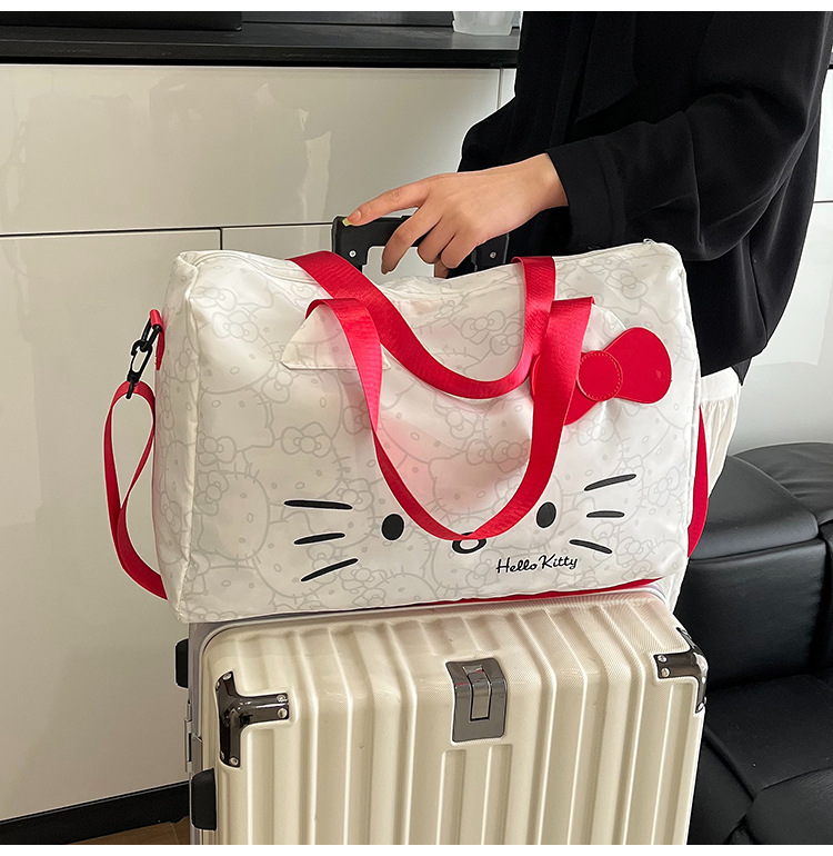 일본식 트롤리 수하물 가방 대용량 키티 고양이 휴대용 여행 가방 크로스 바디 숄더 백 보관 가방