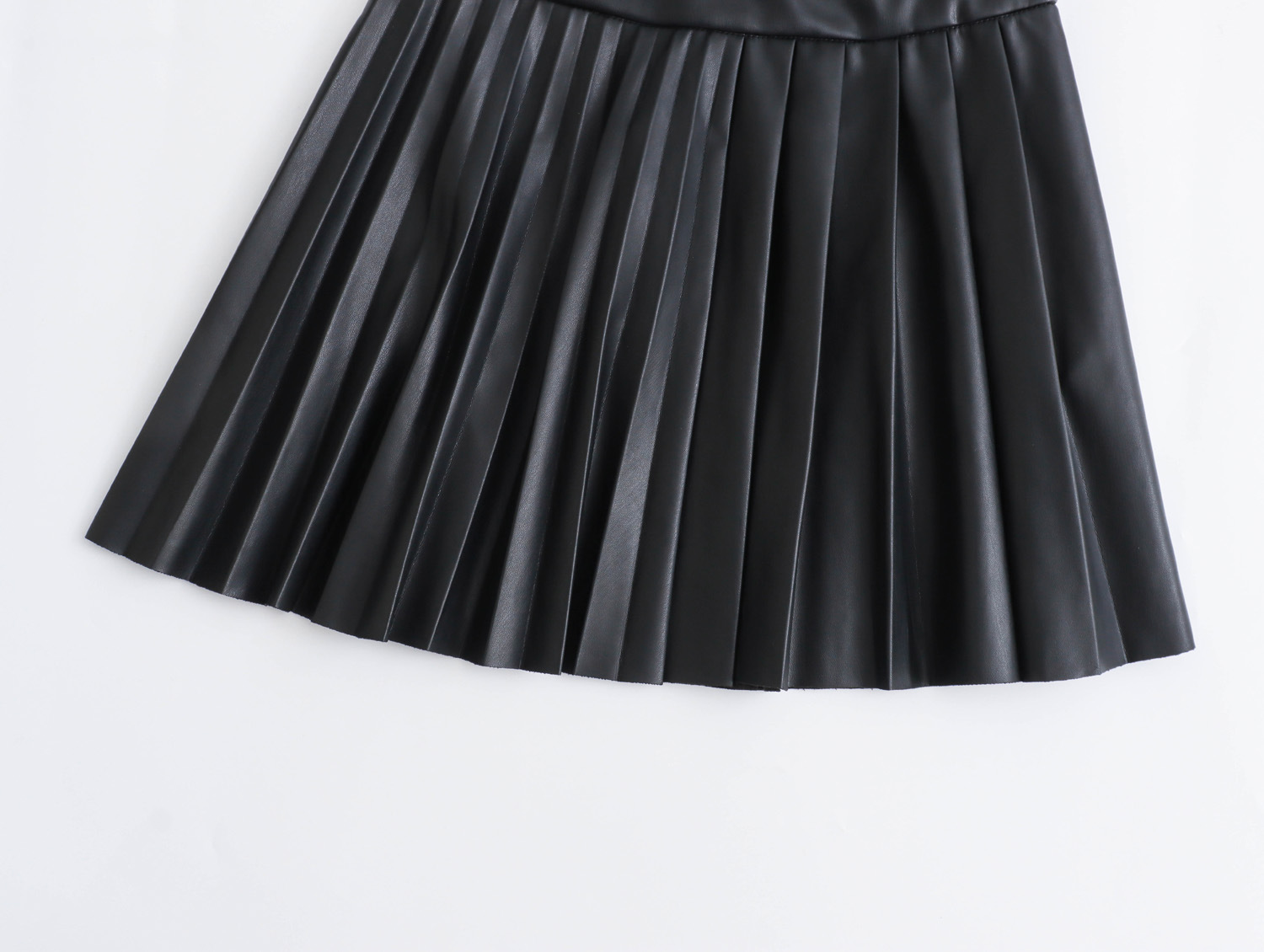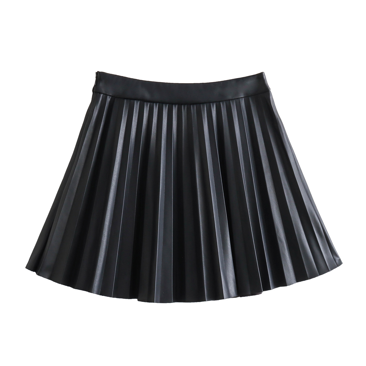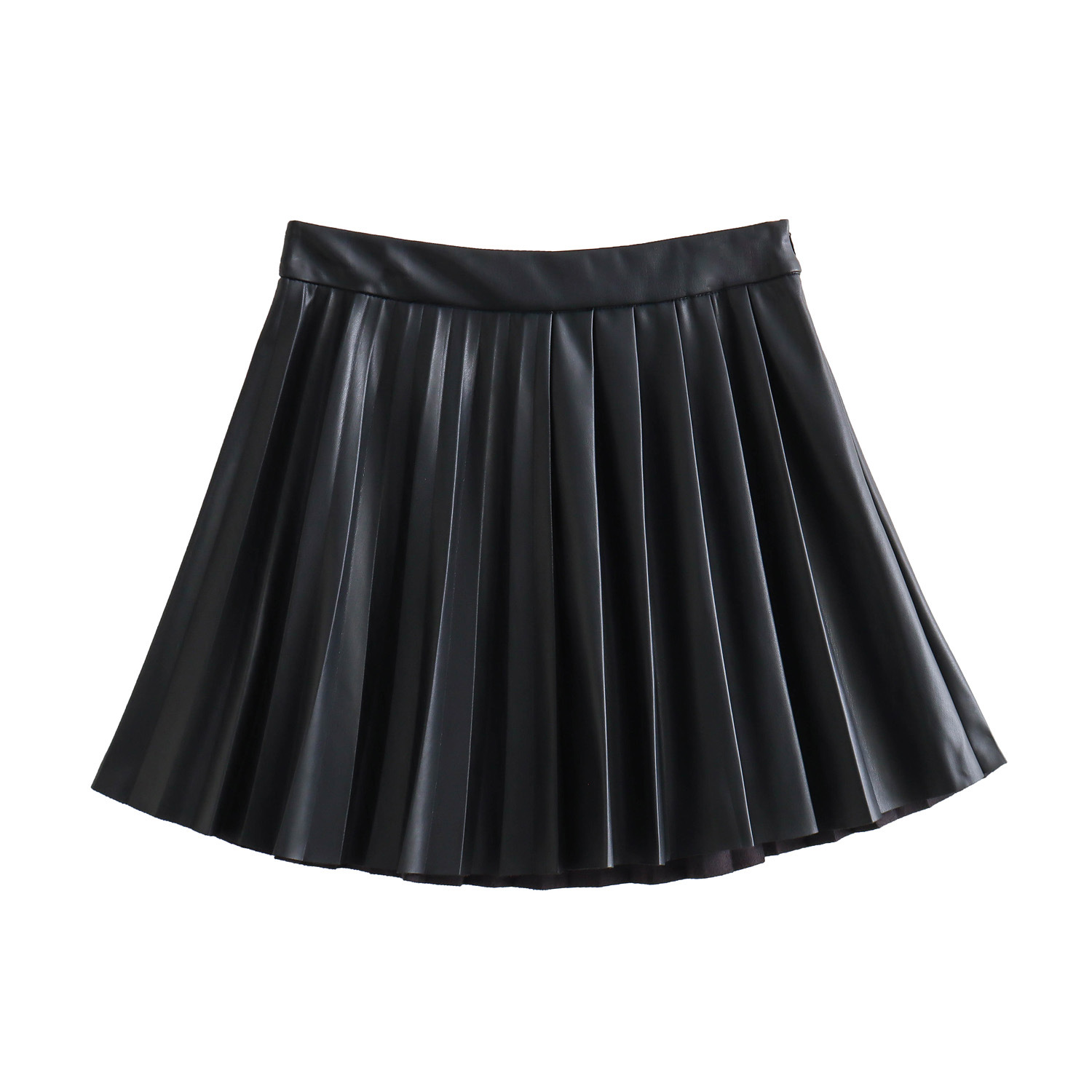 국경 간 유럽과 미국 의류 AliExpress INS 핫 스타일 하이 웨이스트 플리츠 스커트 대학 스타일 모조 가죽 A 라인 미니 스커트스토어 가기