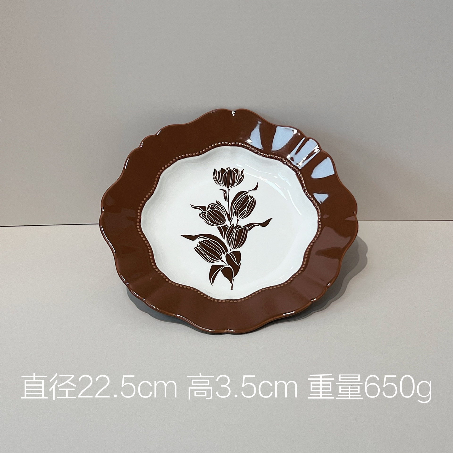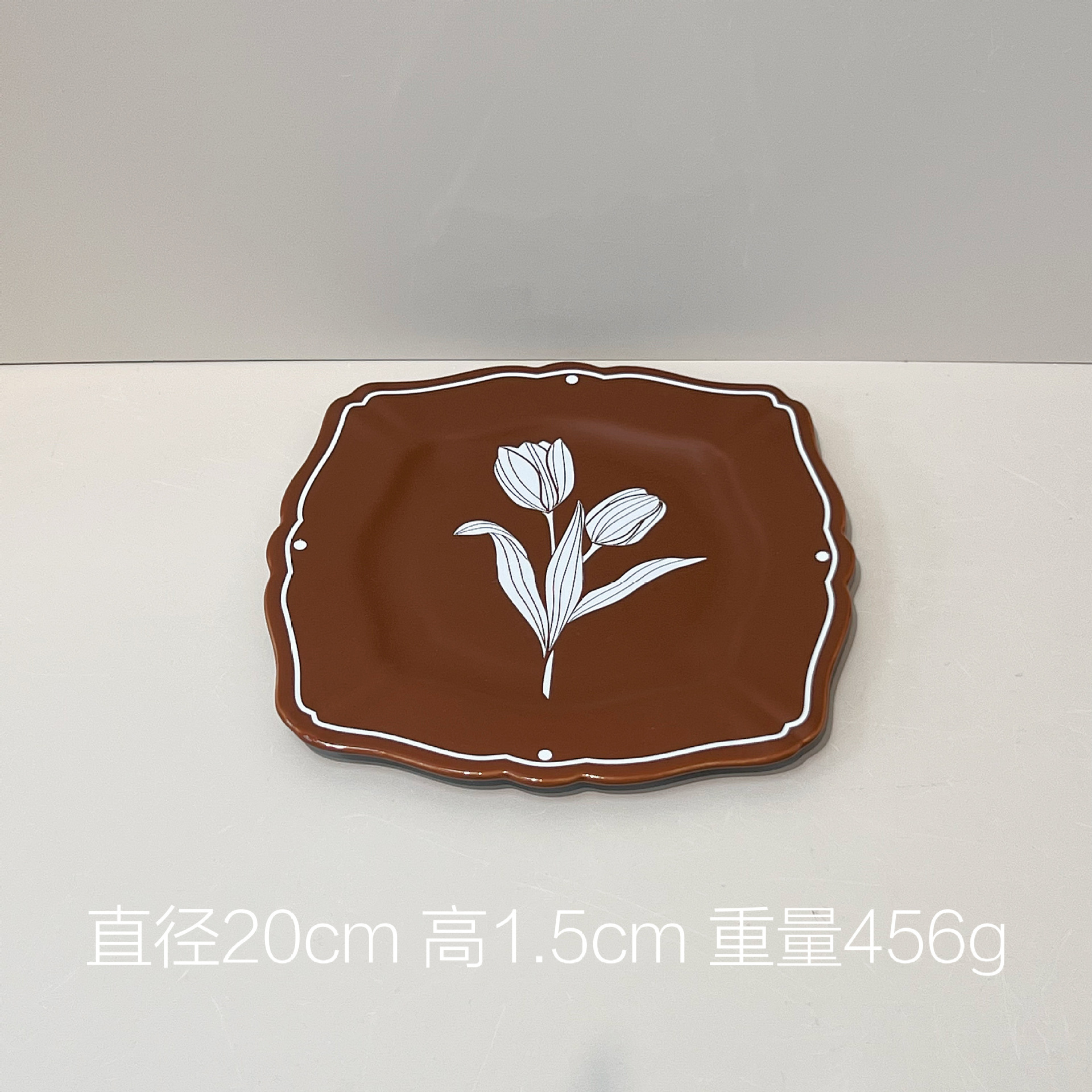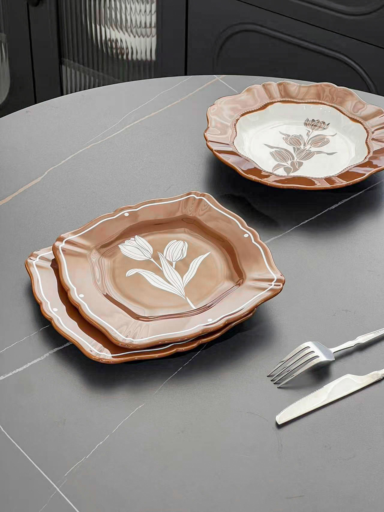 중간 고대 튤립 빈티지 다크 브라운 식기 그릇 및 요리 가정용 고급 센스 트레이 흑백 디너 플레이트 스퀘어