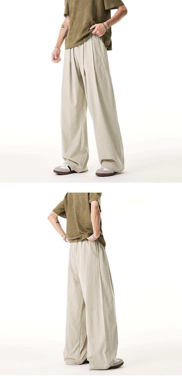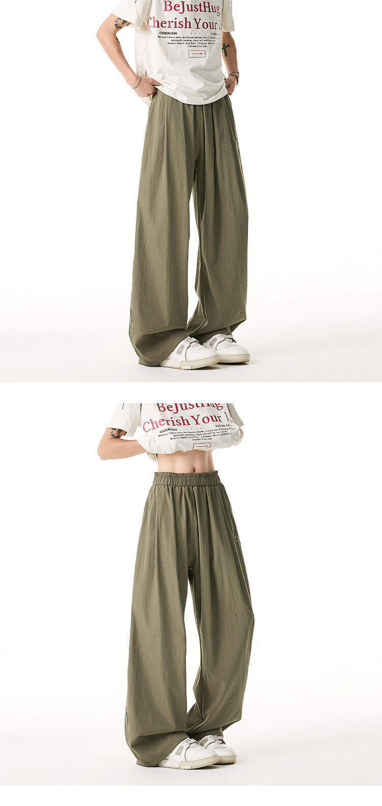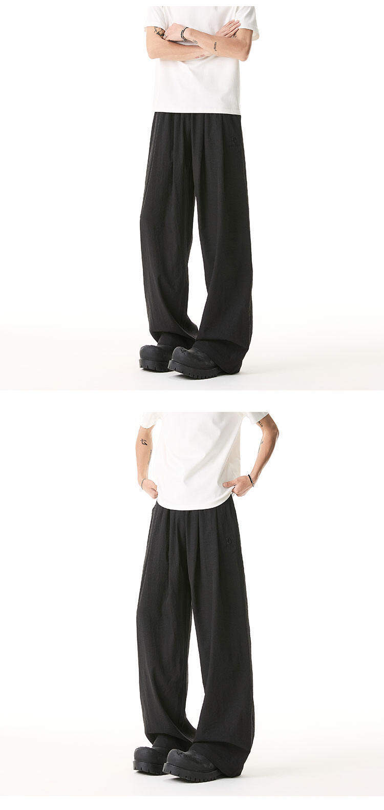 2025 여름 새로운 남자 아이스 실크 통기성 야마모토 바지 느슨한 넓은 다리 캐주얼 바지 고급 감각 얇은 트렌디 바지