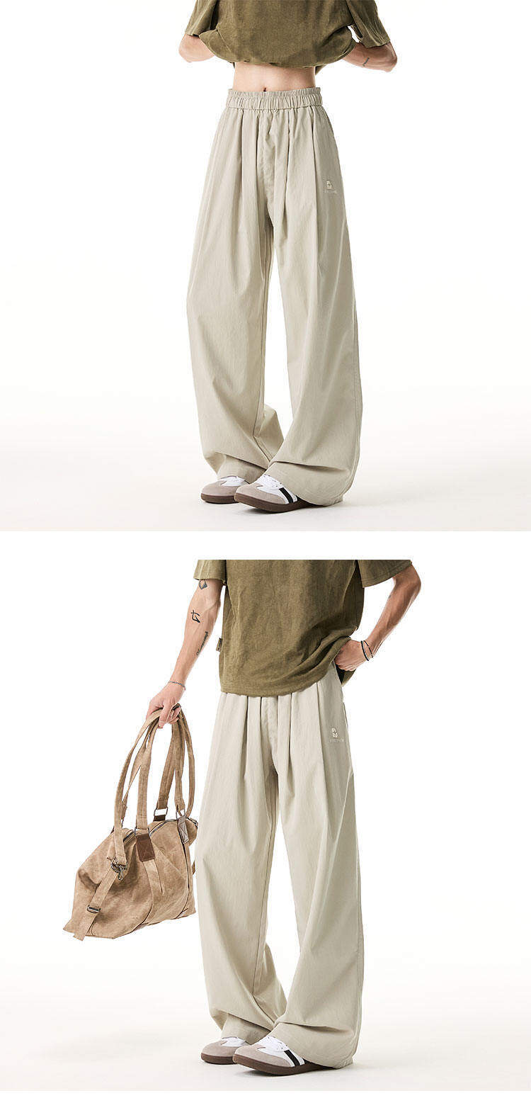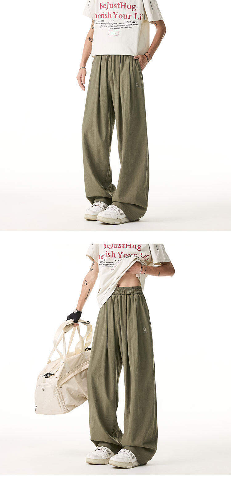 2025 여름 새로운 남자 아이스 실크 통기성 야마모토 바지 느슨한 넓은 다리 캐주얼 바지 고급 감각 얇은 트렌디 바지스토어 가기