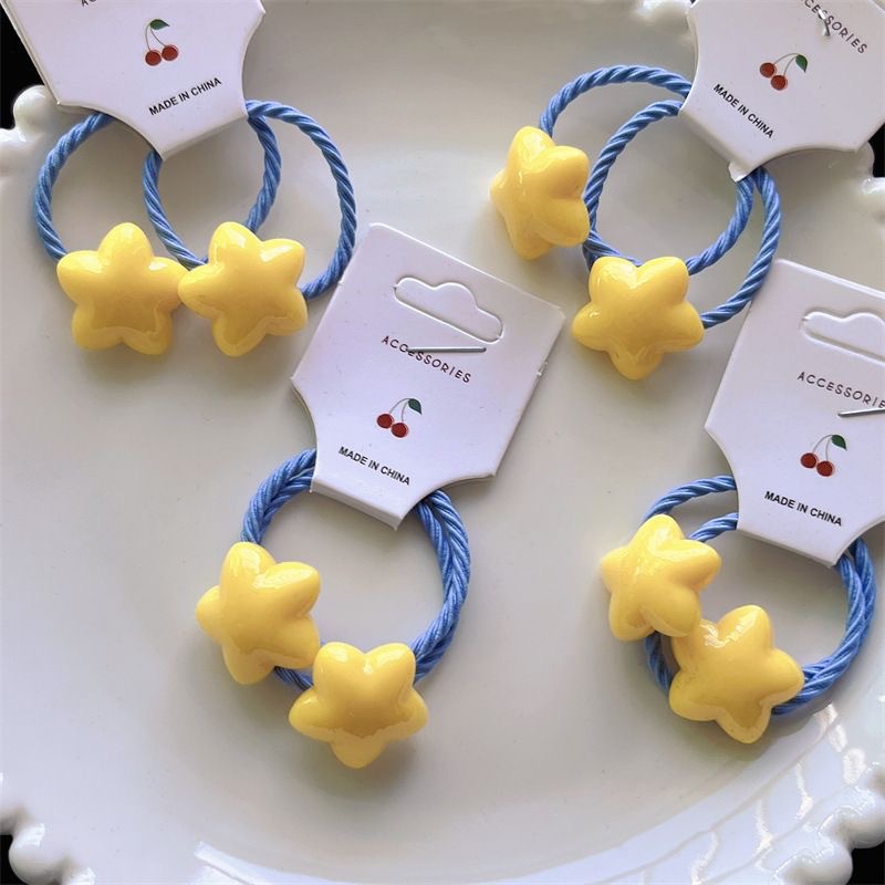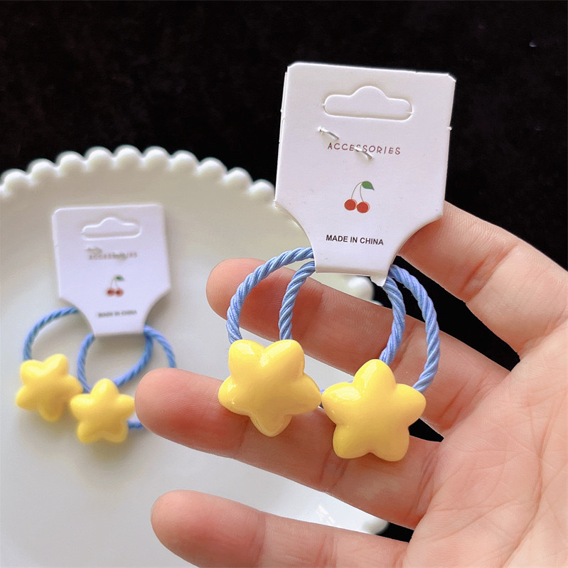 노란 별 모양 작은 머리끈, 인스 감성의 달콤하고 귀여운 머리끈, 파란색 머리끈, 학생용 다용도 헤어 액세서리, 인스 스타일스토어 가기