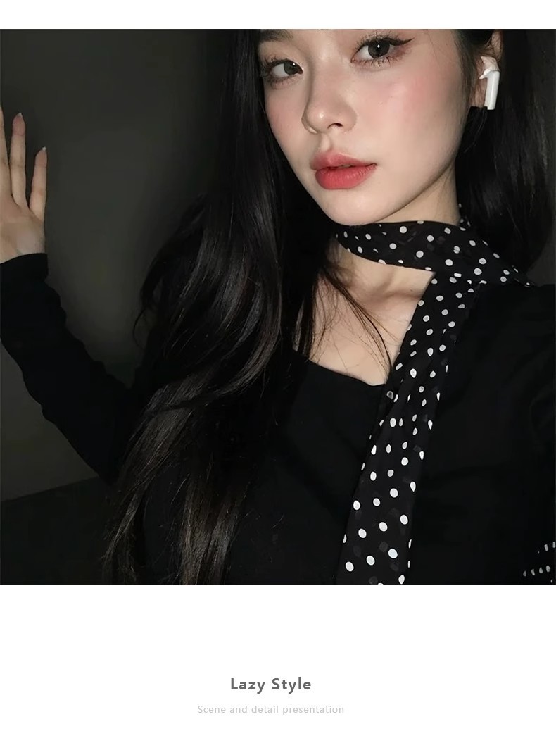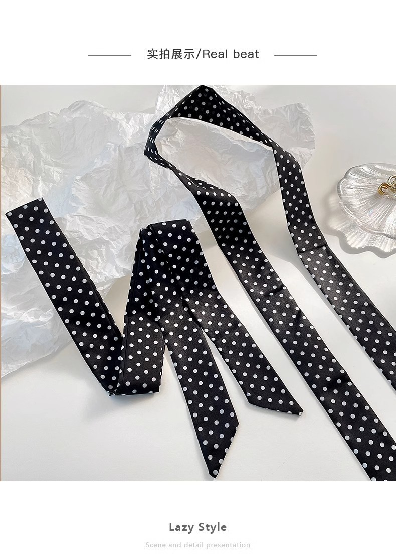 한국식 Poll Dot 틈새 실크 스카프 목 넥타이 헤어 리본 여성용 하이 엔드 스카프 봄과 여름 얇은 목 보호 긴 스카프스토어 가기