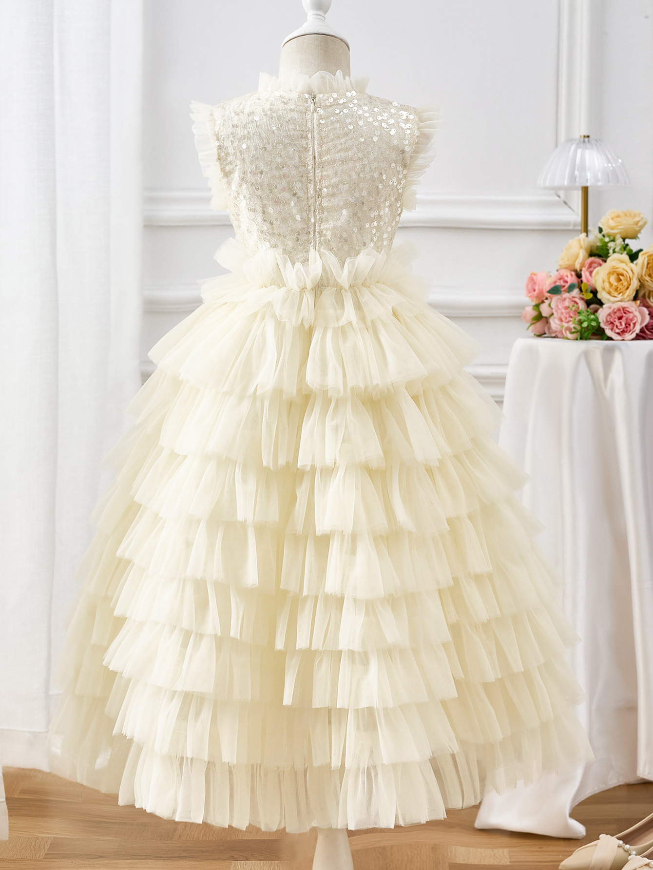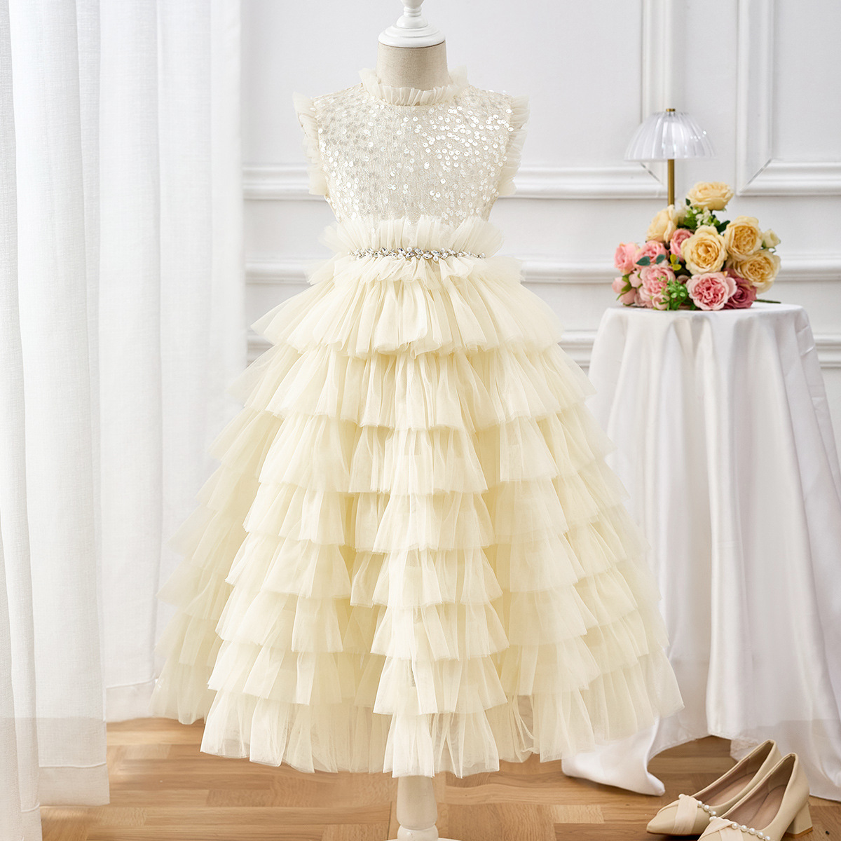 스팟 새 여름 어린이 메쉬 투투 스커트 소녀 민소매 케이크 스커트 스팽글 레이스 생일 드레스스토어 가기