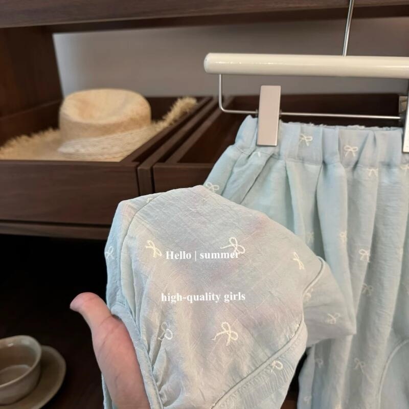 핑크하우스 여름신상 민트그린! 여아 한국 스타일 귀여운 플라잉 슬리브 티셔츠 보우 블루머 7735