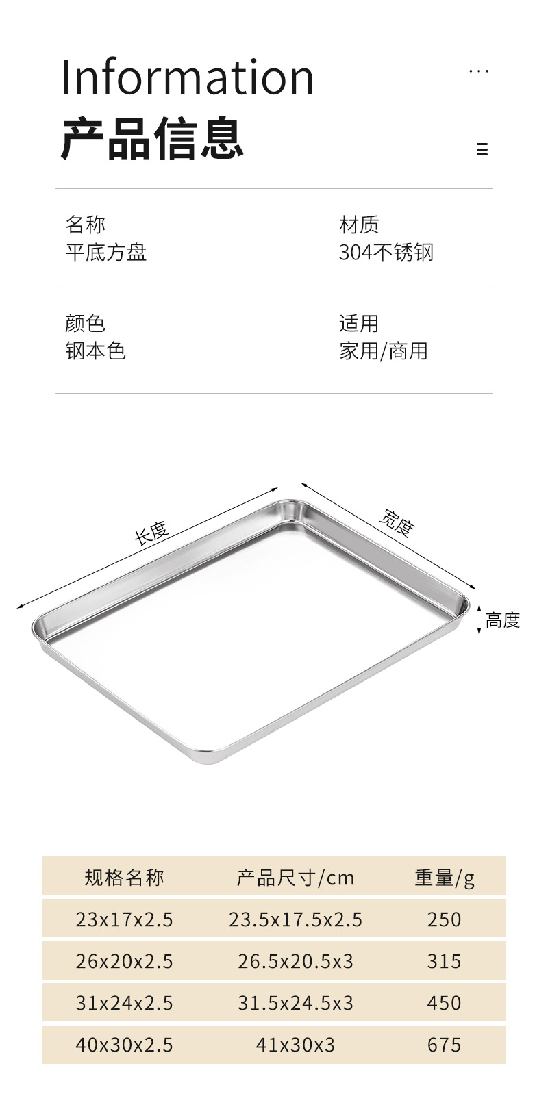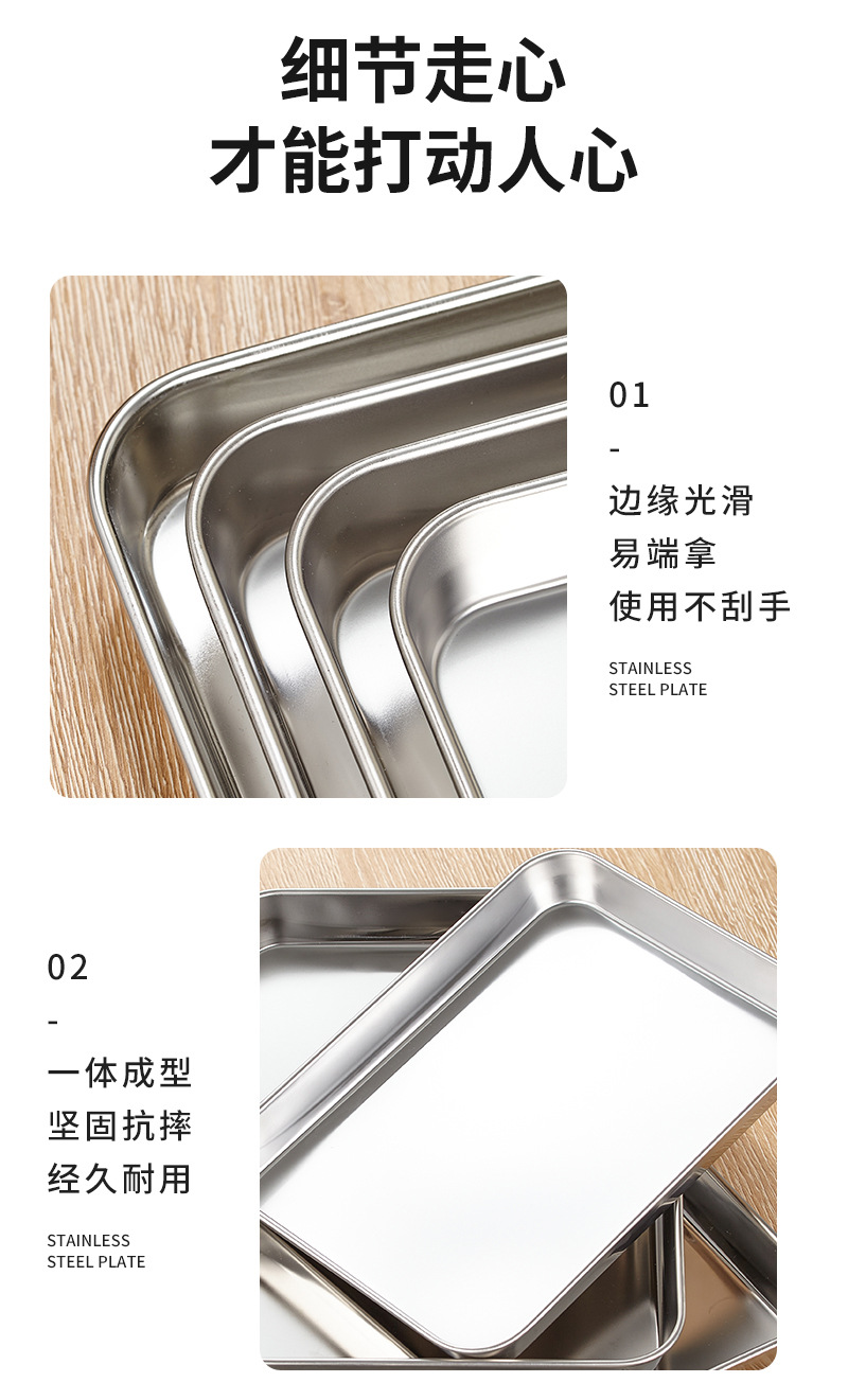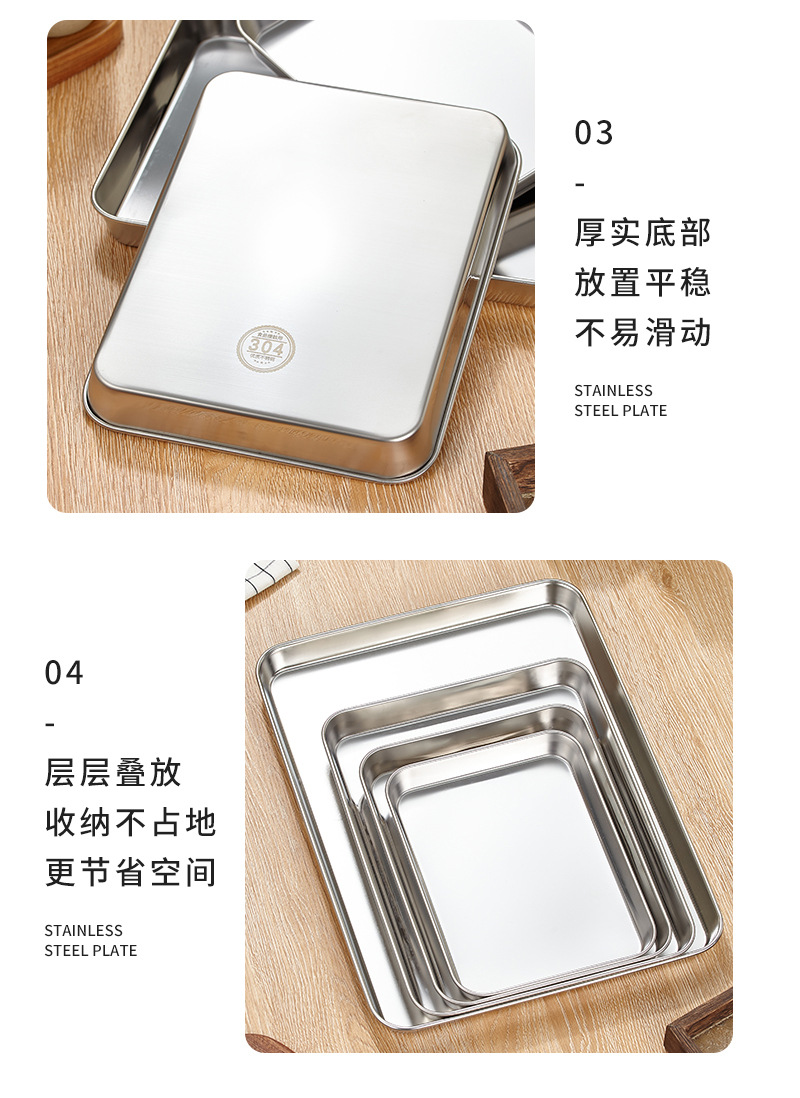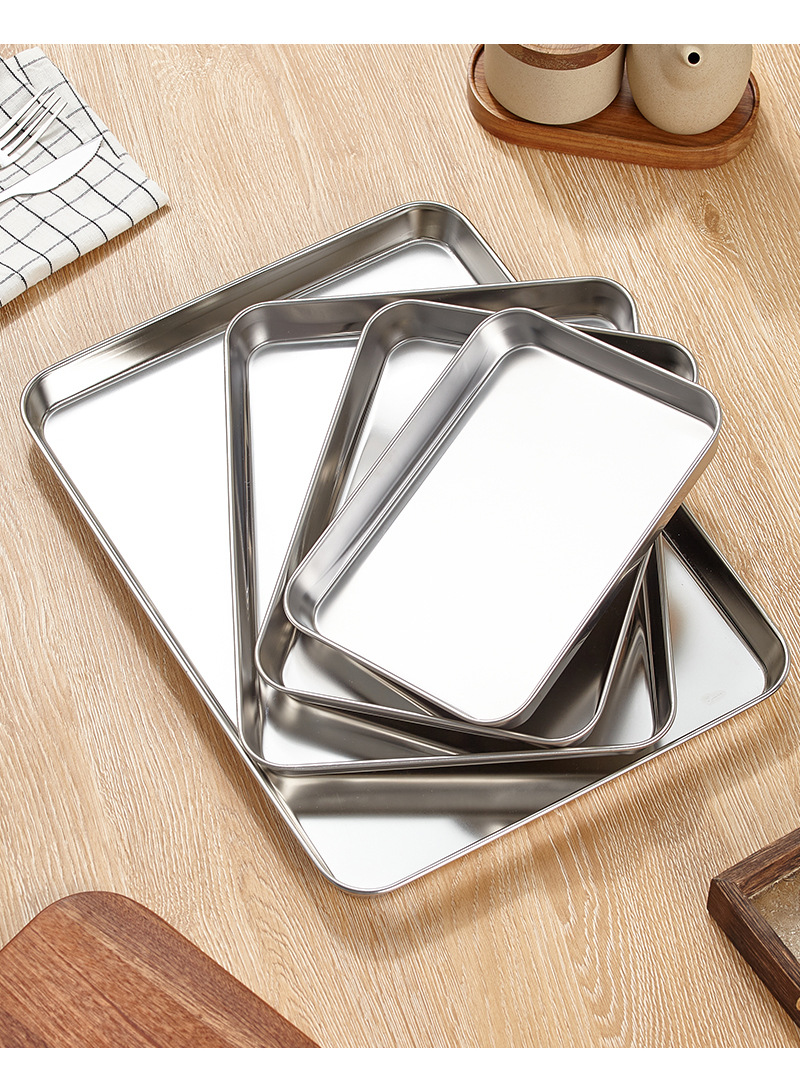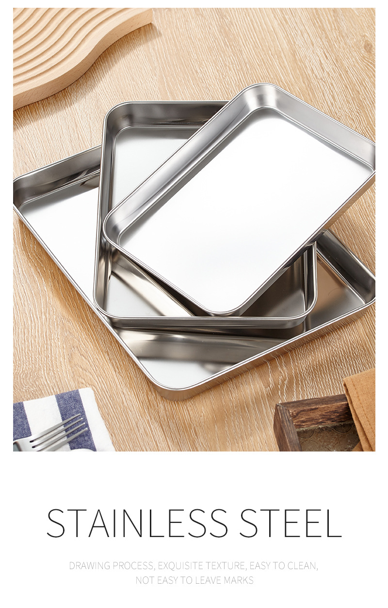 304 스테인레스 스틸 직사각형 트레이 디너 플레이트 사각형 플레이트 바베큐 플레이트 평평한 바닥 생선 찜 플레이트 밥 찜 플레이트 과일 플레이트스토어 가기