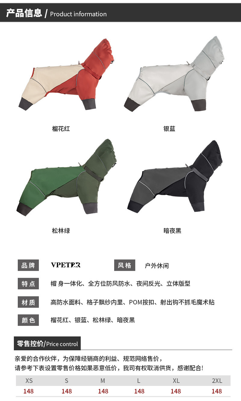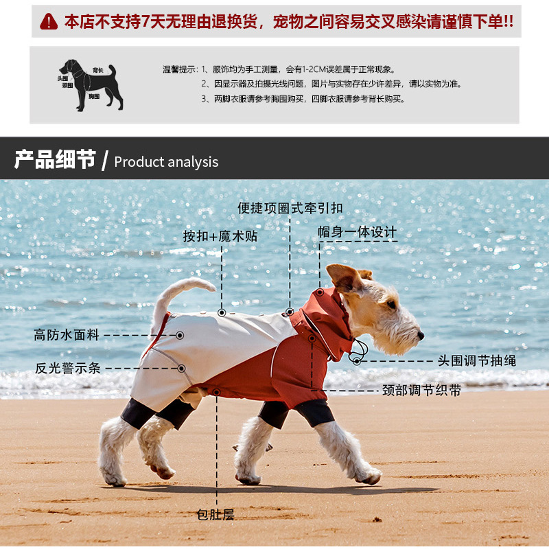 개 4 발 비옷 방수 내마모성 경량 충전 의류 애완 동물 특수 비오는 날 모든 것을 포함하는 비방성 애완 동물 옷스토어 가기