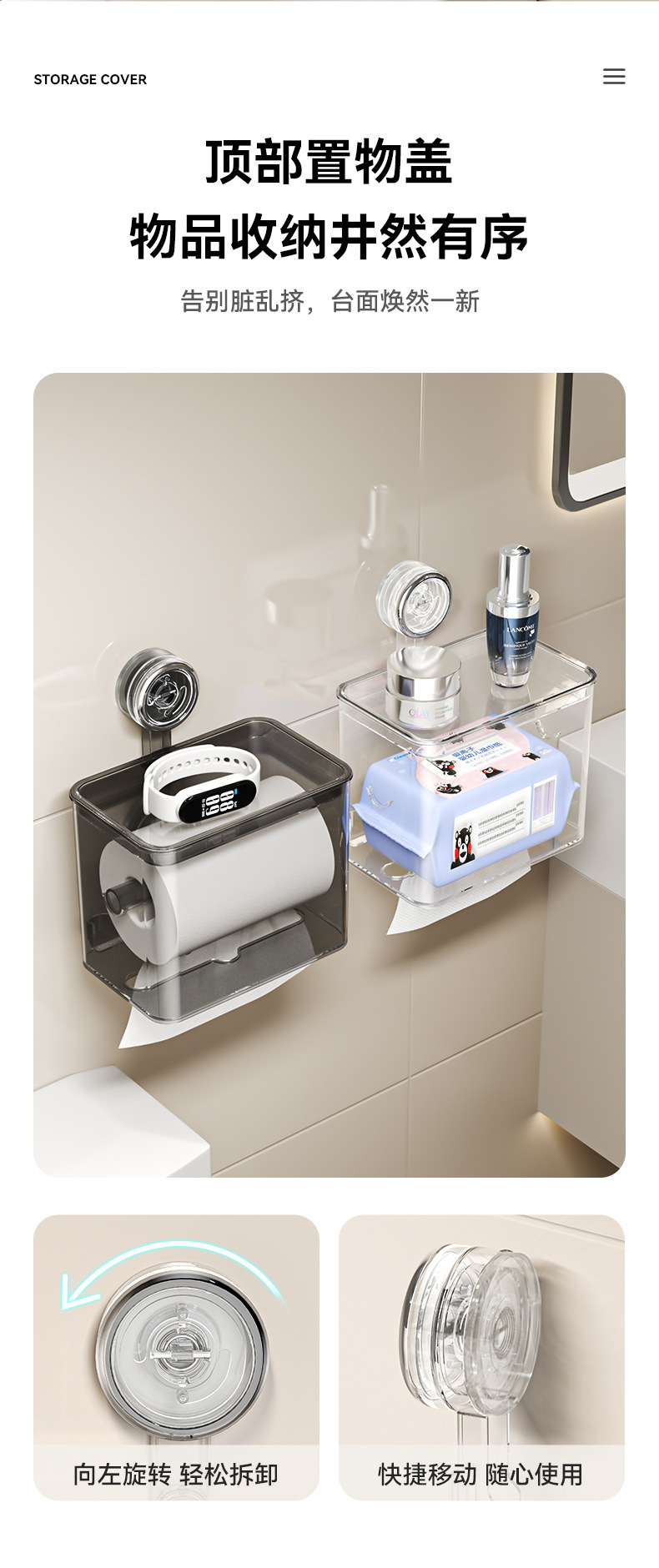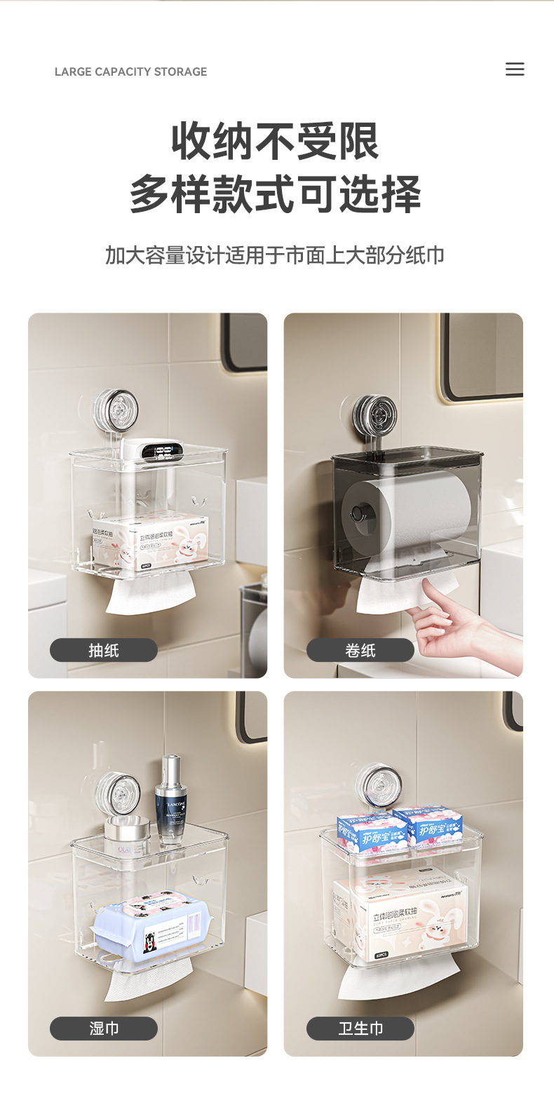 손잡이 흡입 컵 욕실 티슈 상자 펀치없는 보관 상자 화장지 상자 벽걸이 형 플라스틱 흡입 컵 보관