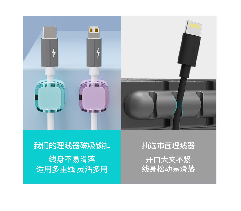 마그네틱 데스크탑 케이블 관리자 데이터 케이블 보관함 침대 옆 충전 케이블 홀더 네트워크 케이블 클립 벽 정리 버클
