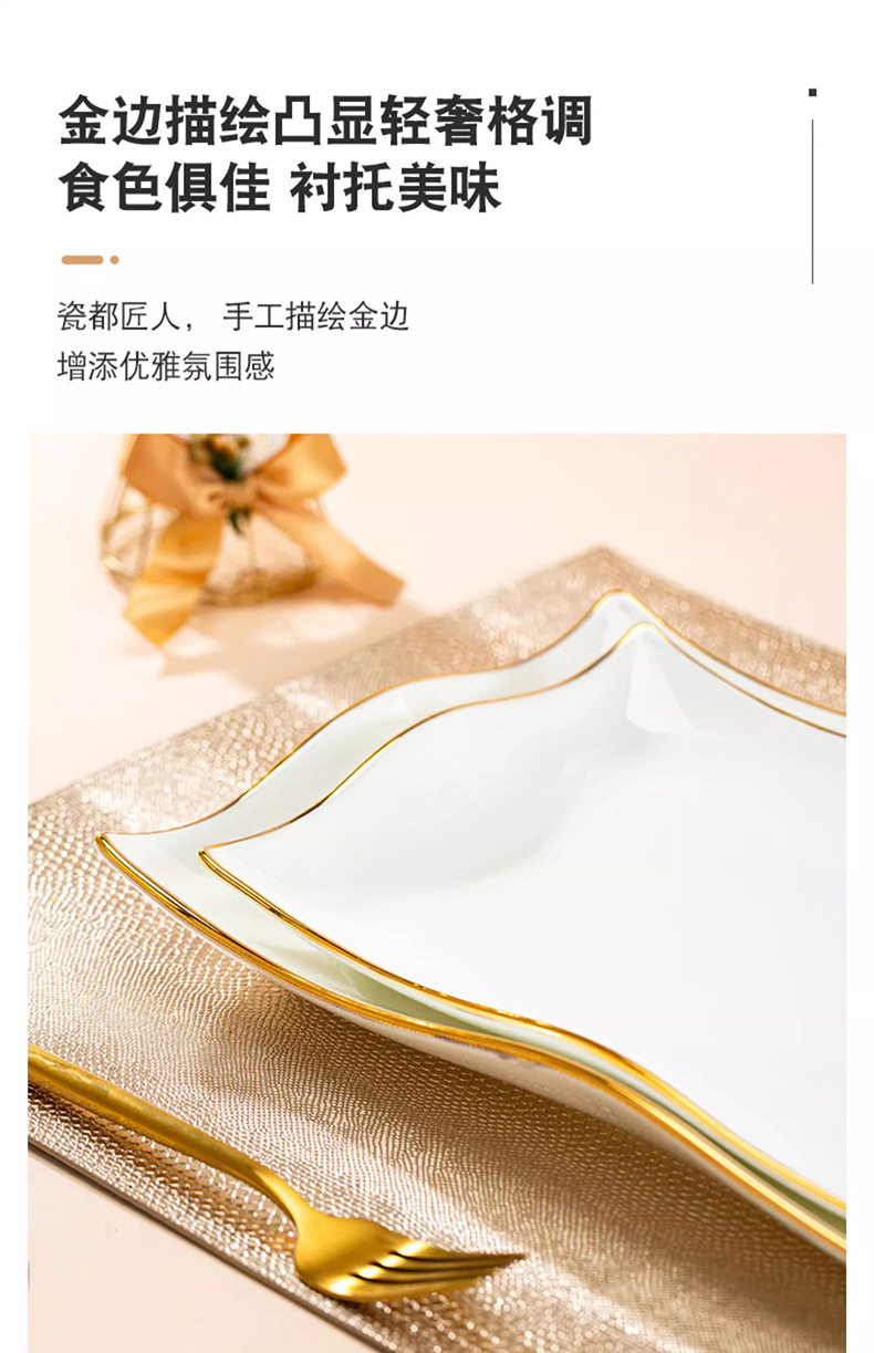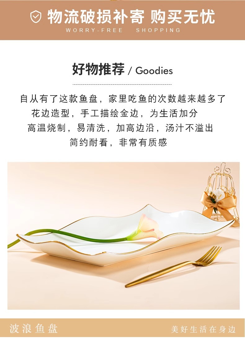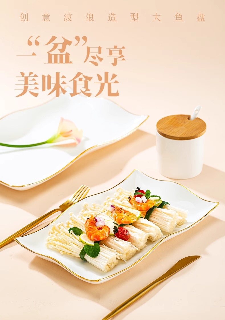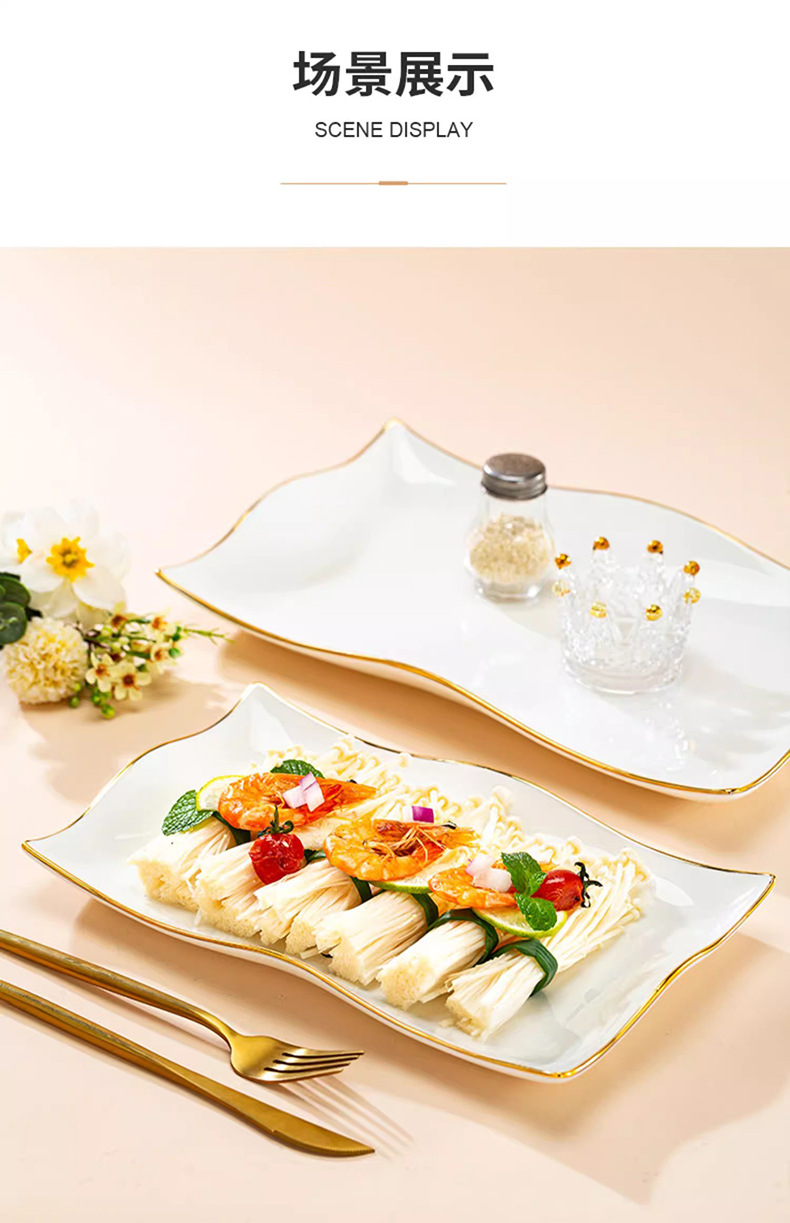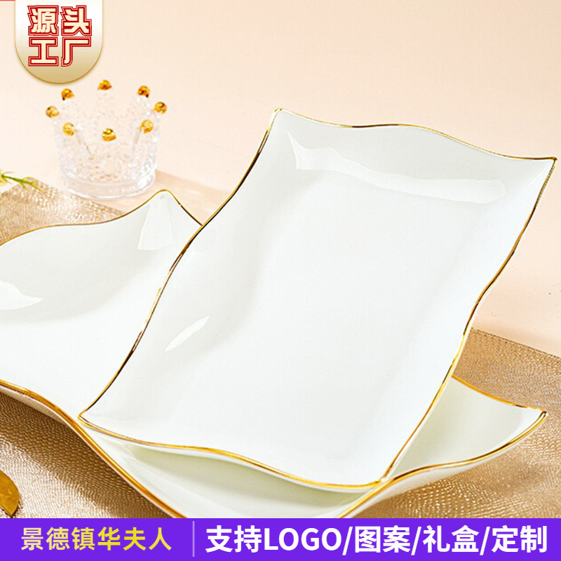 경덕진 본차이나 금테 생선 접시 가정용 생선 찜 접시 일본식 창작 직사각형 대형 생선 접시 창작 해산물 접시