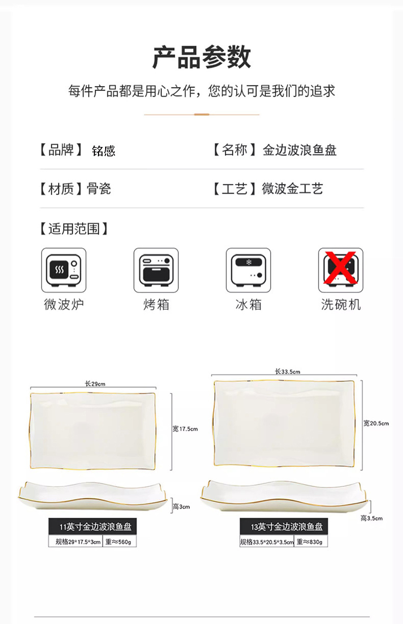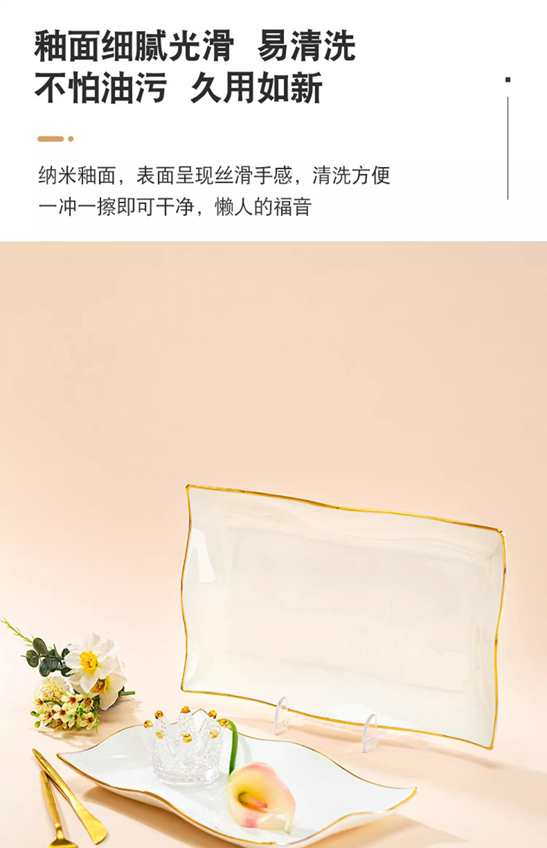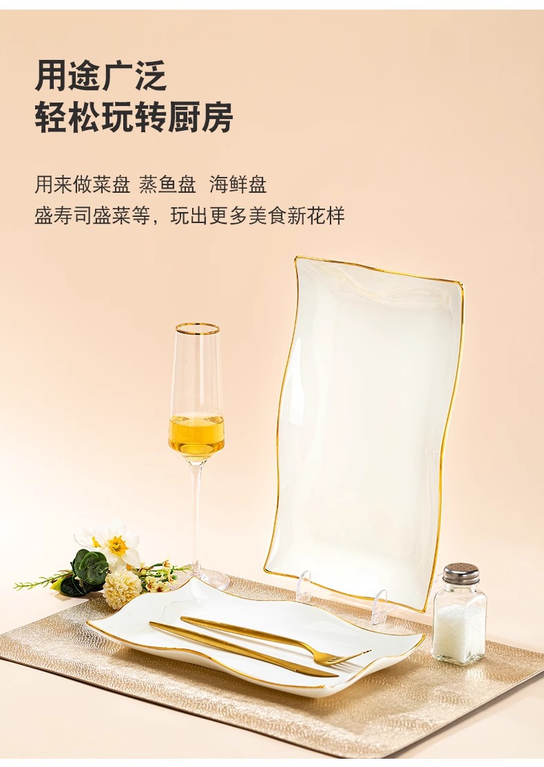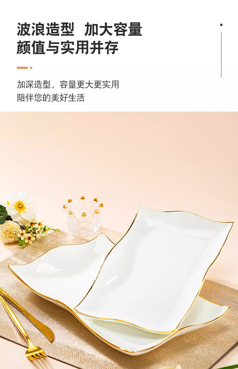 경덕진 본차이나 금테 생선 접시 가정용 생선 찜 접시 일본식 창작 직사각형 대형 생선 접시 창작 해산물 접시