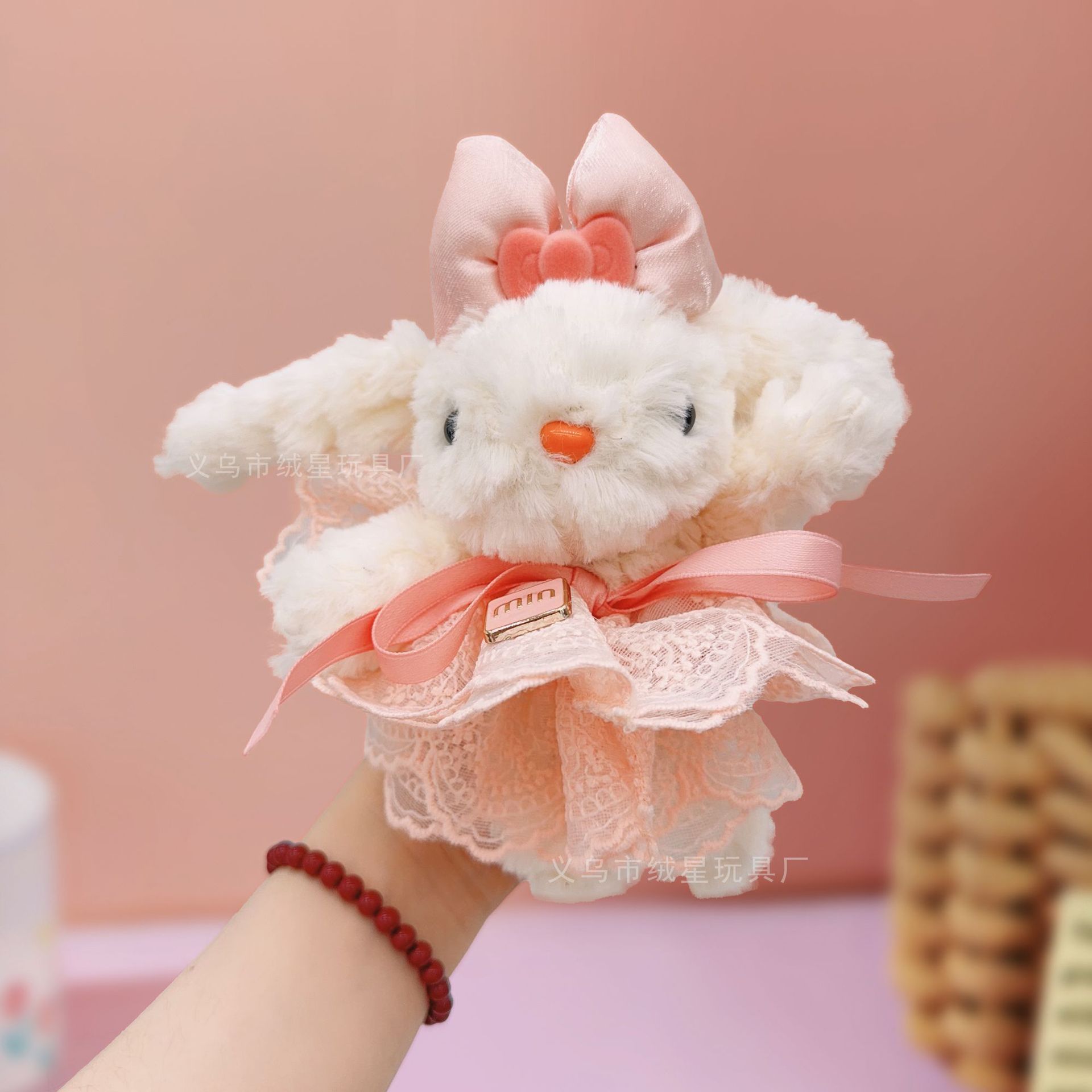 새로운 레이스 원피스 매달려 귀 토끼 봉제 인형 매달려 달콤한 공주 원피스 높은 감각 우아한 토끼 인형 가방 교수형스토어 가기