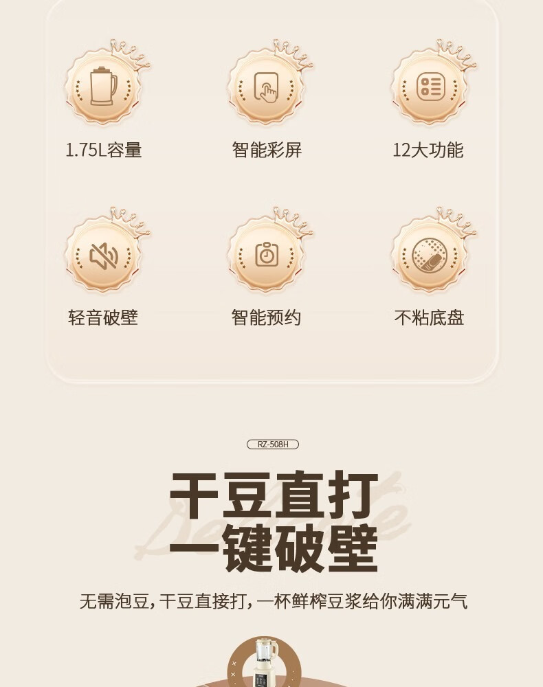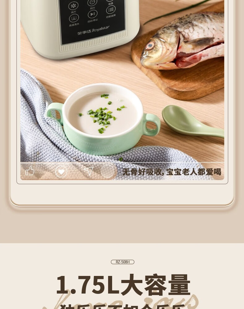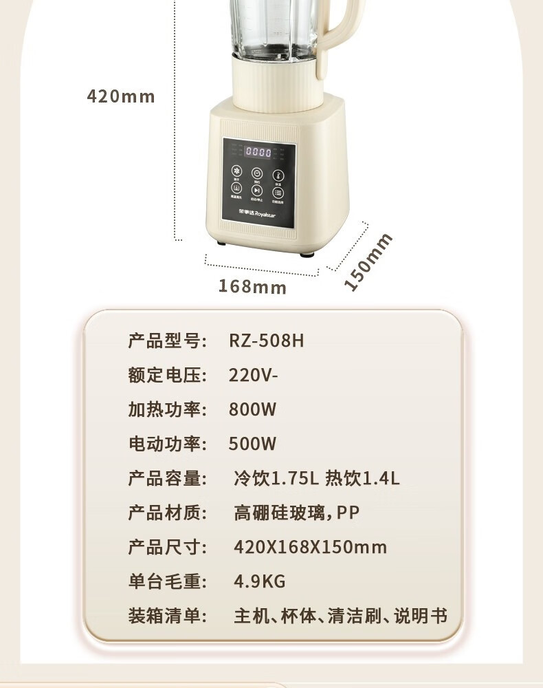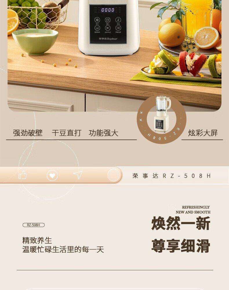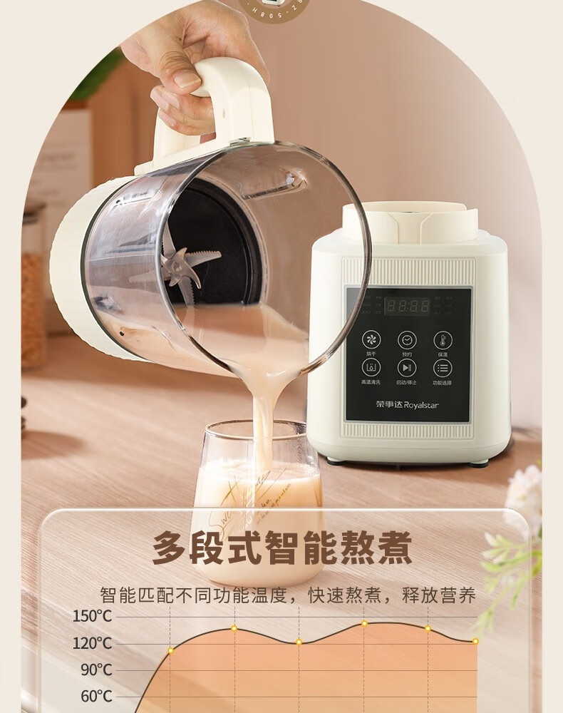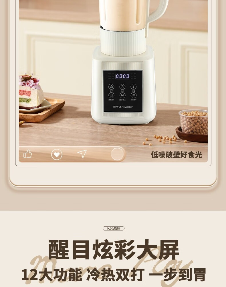 Royalstar 벽 파괴 기계 가정용 다기능 가열 두유 기계 주스 기계 보충 식품 기계 1.75L 용량 RZ-508H스토어 가기