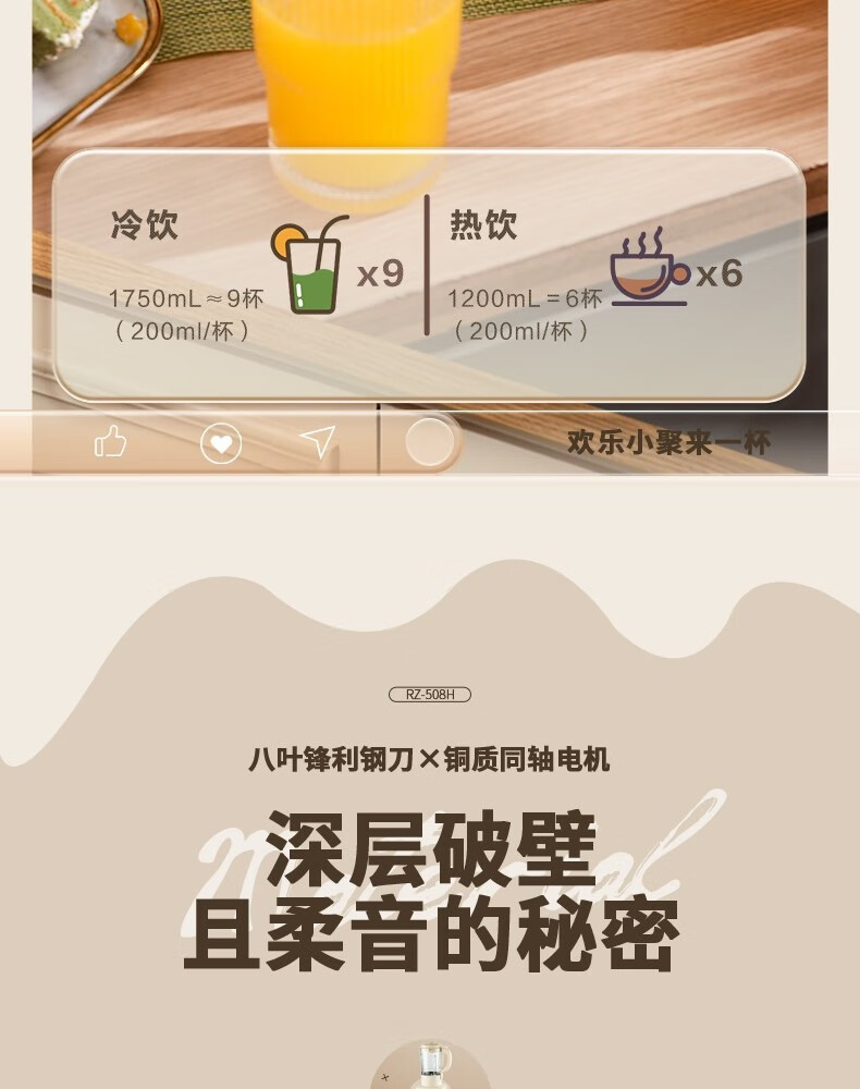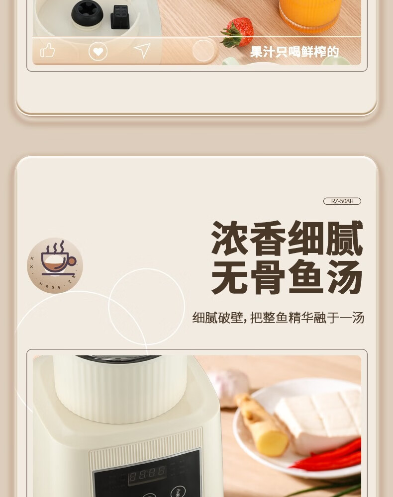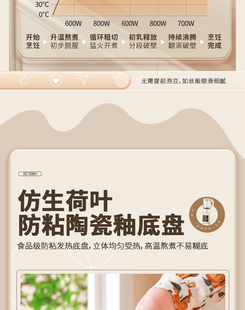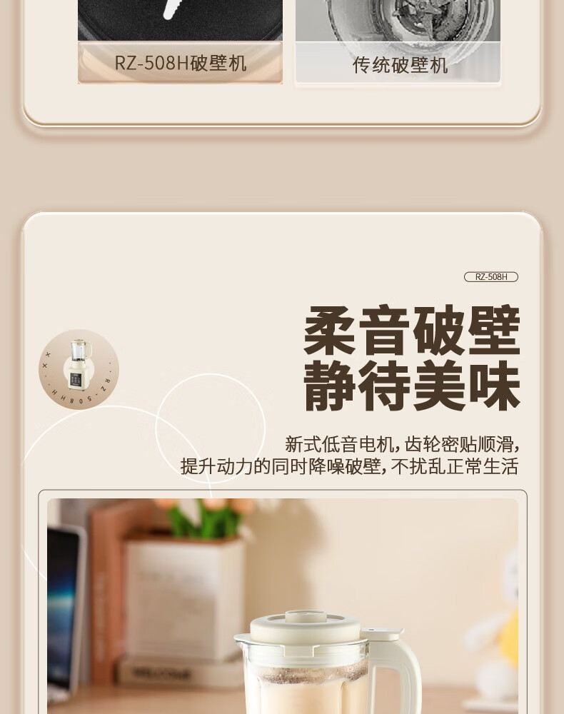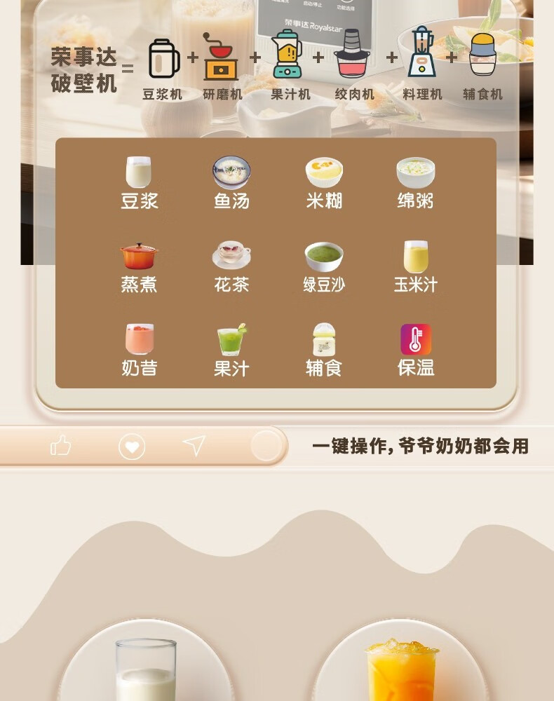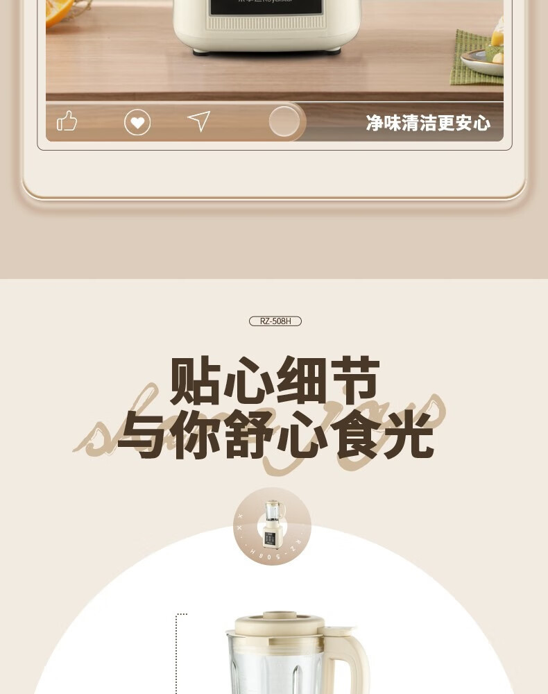 Royalstar 벽 파괴 기계 가정용 다기능 가열 두유 기계 주스 기계 보충 식품 기계 1.75L 용량 RZ-508H스토어 가기