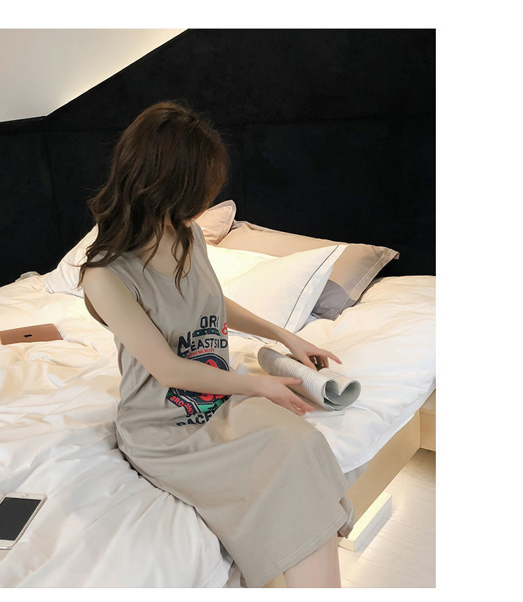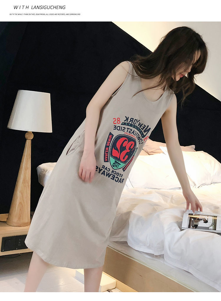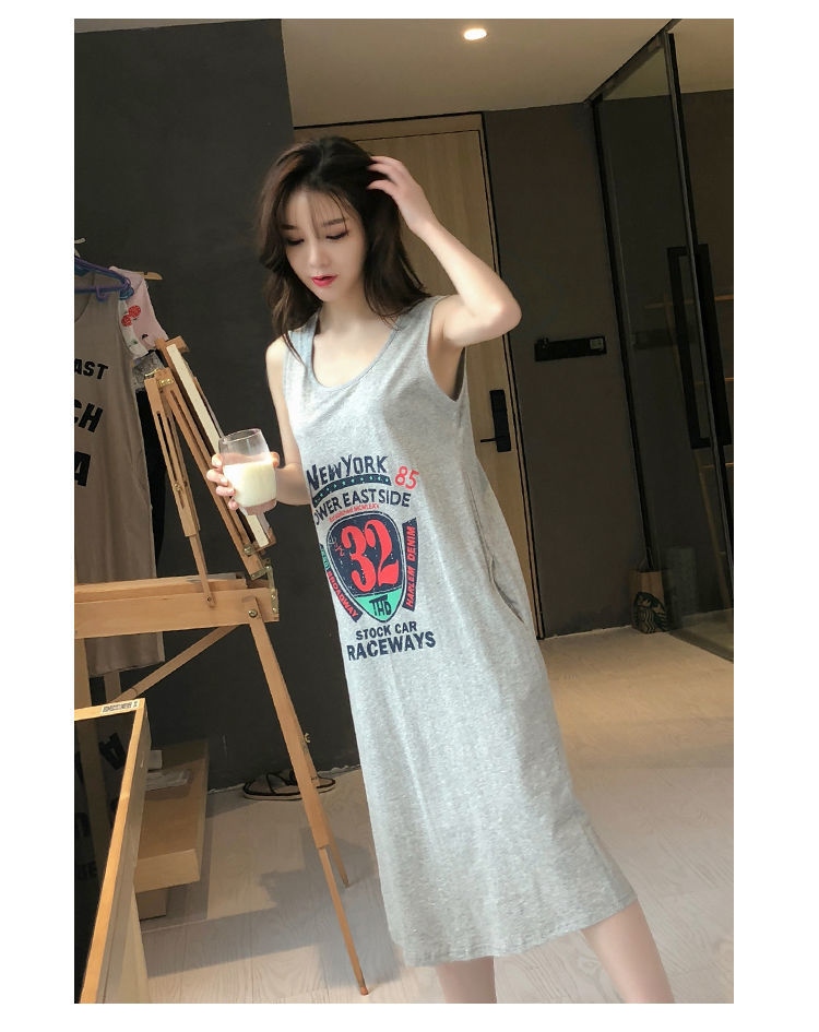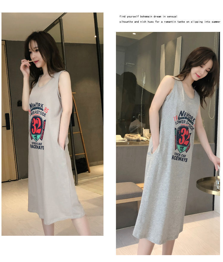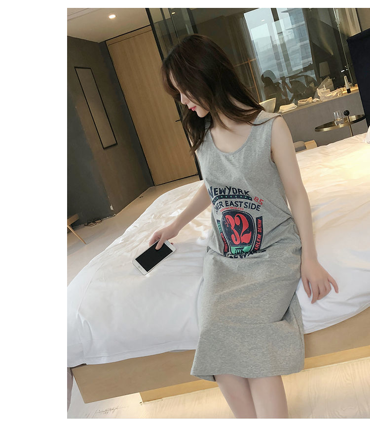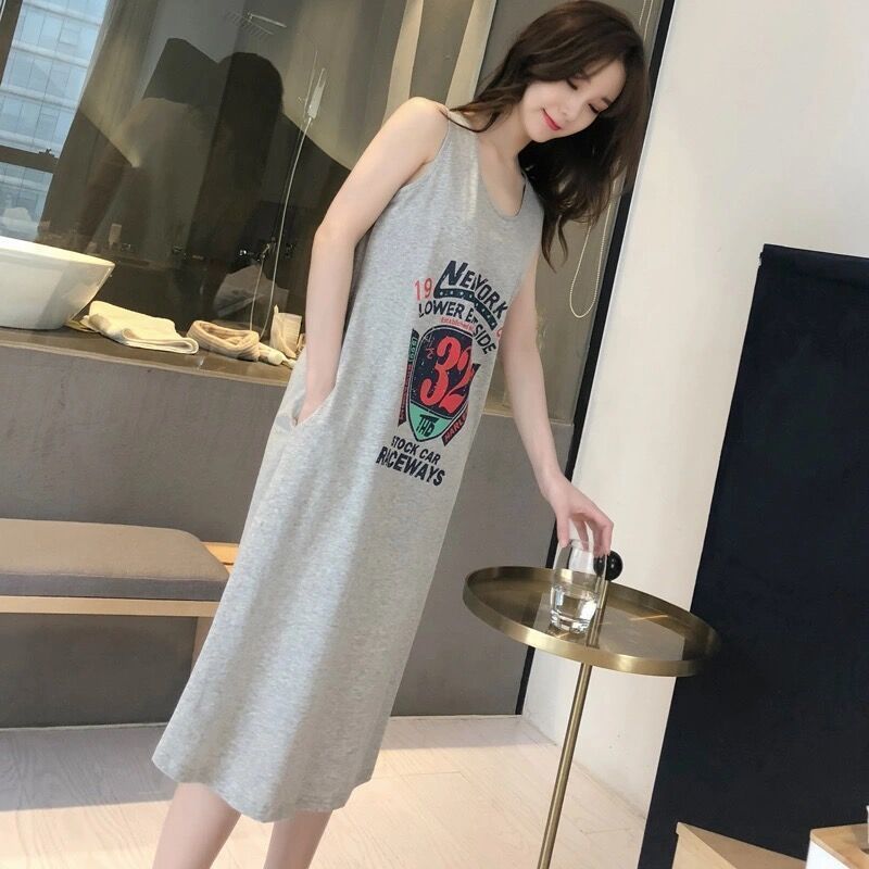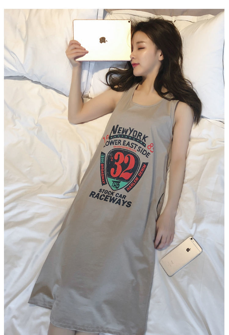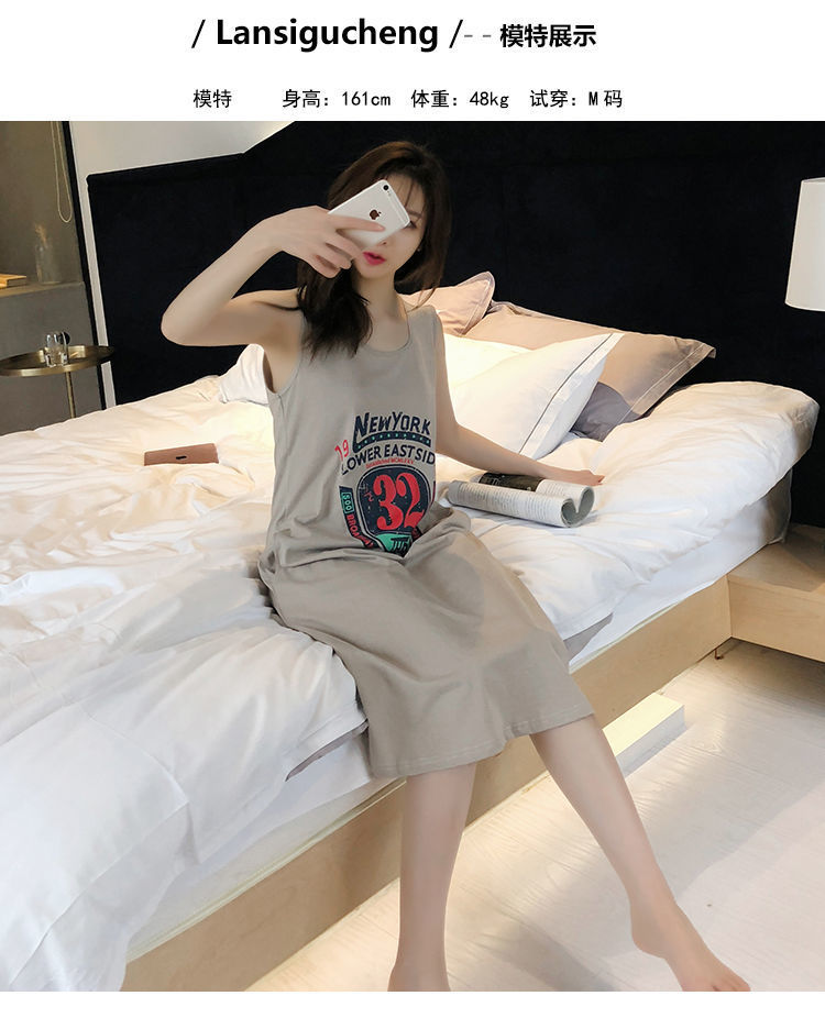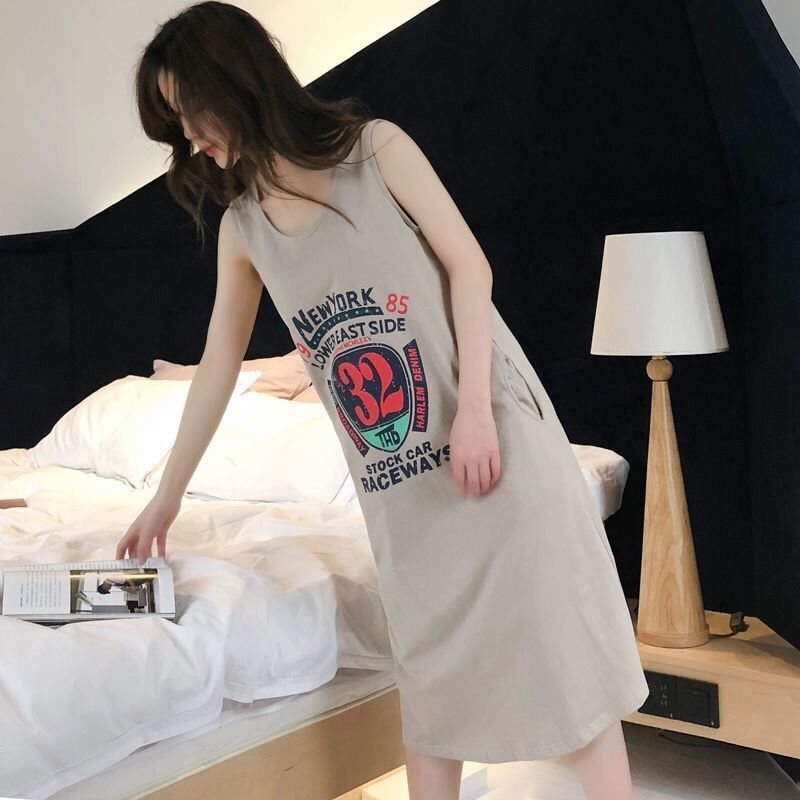 나이트 드레스 여성의 여름 슬링 코튼 얇은 학생 느슨한 민소매 조끼 파자마 한국 스타일 플러스 사이즈 여름 홈 옷스토어 가기