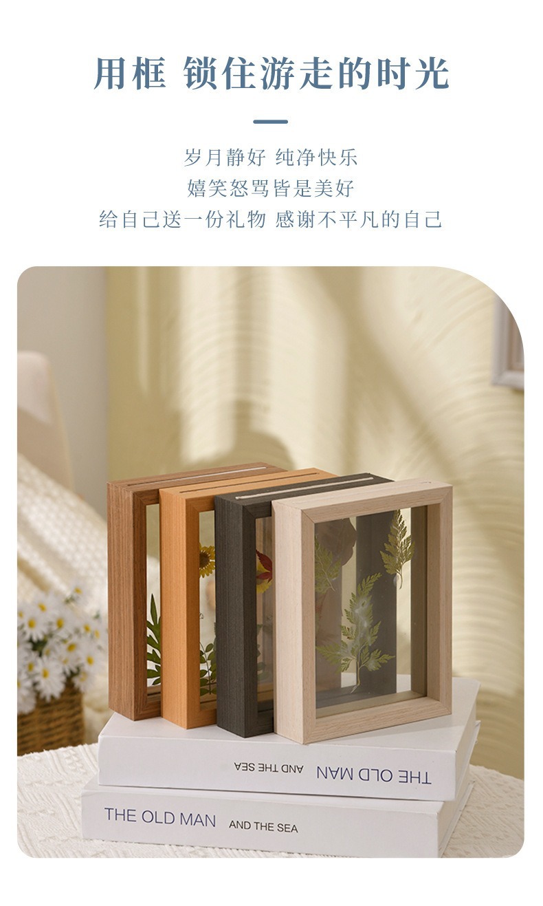투명한 나무 사진 프레임 간단한 창조적 인 양면 유기 유리 공장 동물 표본 사진 프레임 로그 색상 스테레오 그림스토어 가기