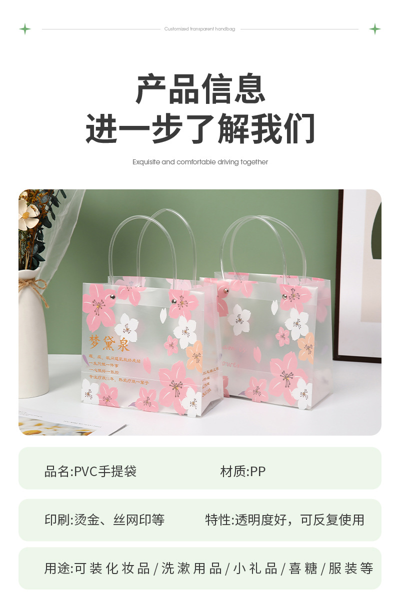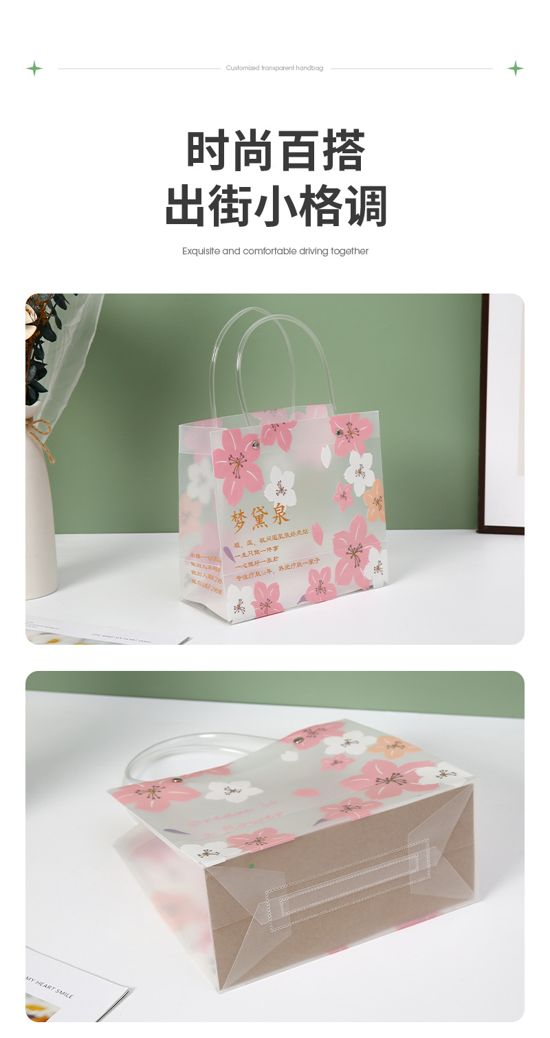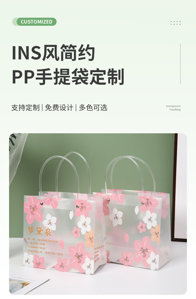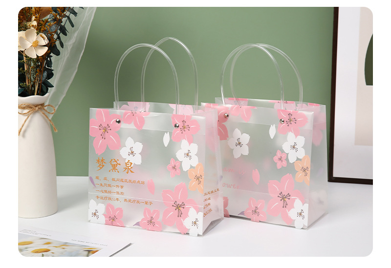 사쿠라 pp 플라스틱 핸드백 맞춤 의류 쇼핑백 맞춤 선물 가방 투명 pvc 기념품 가방스토어 가기