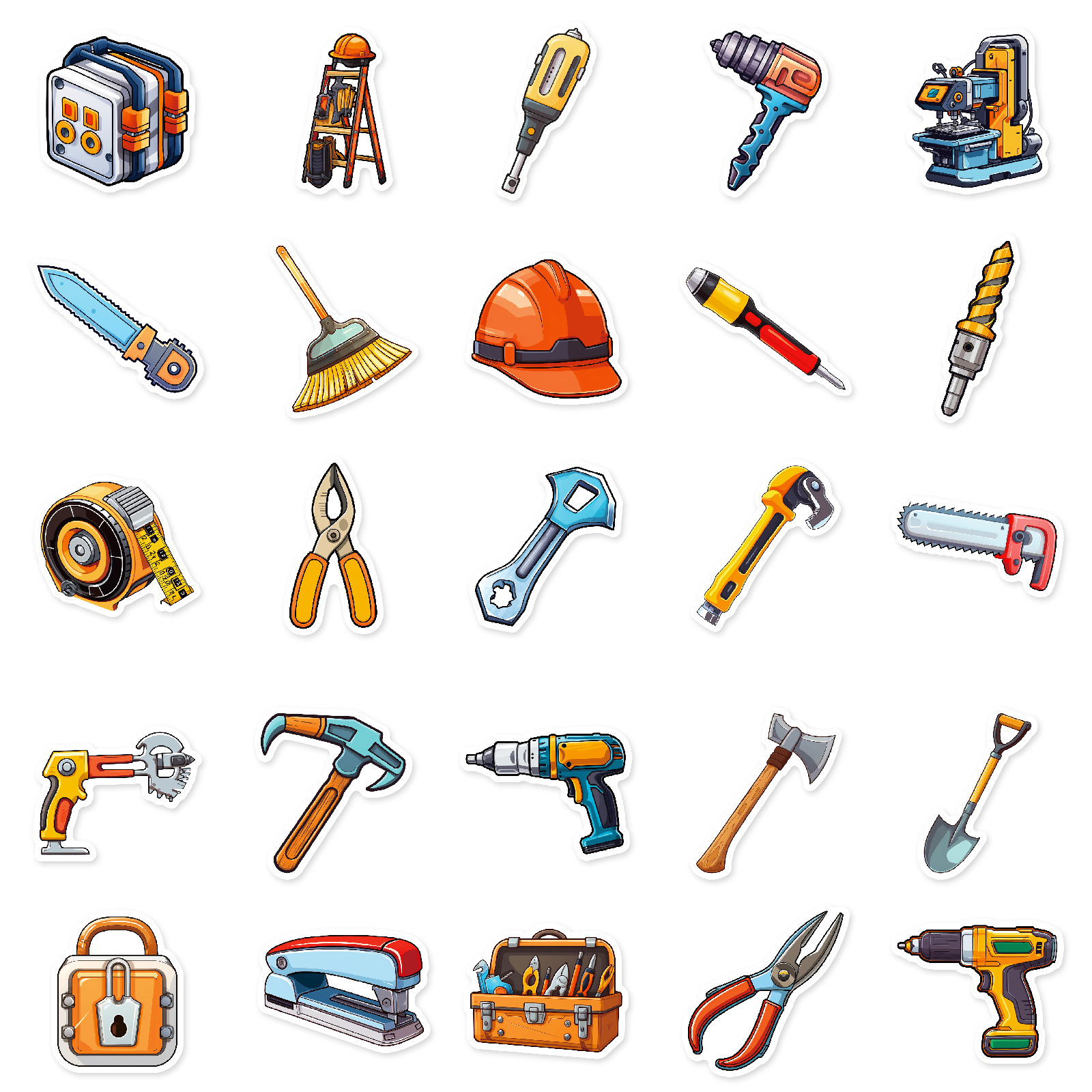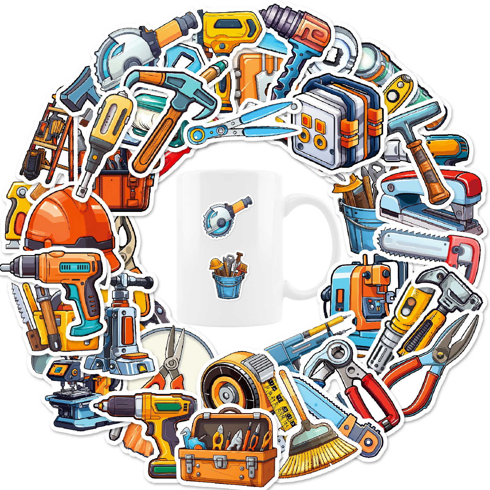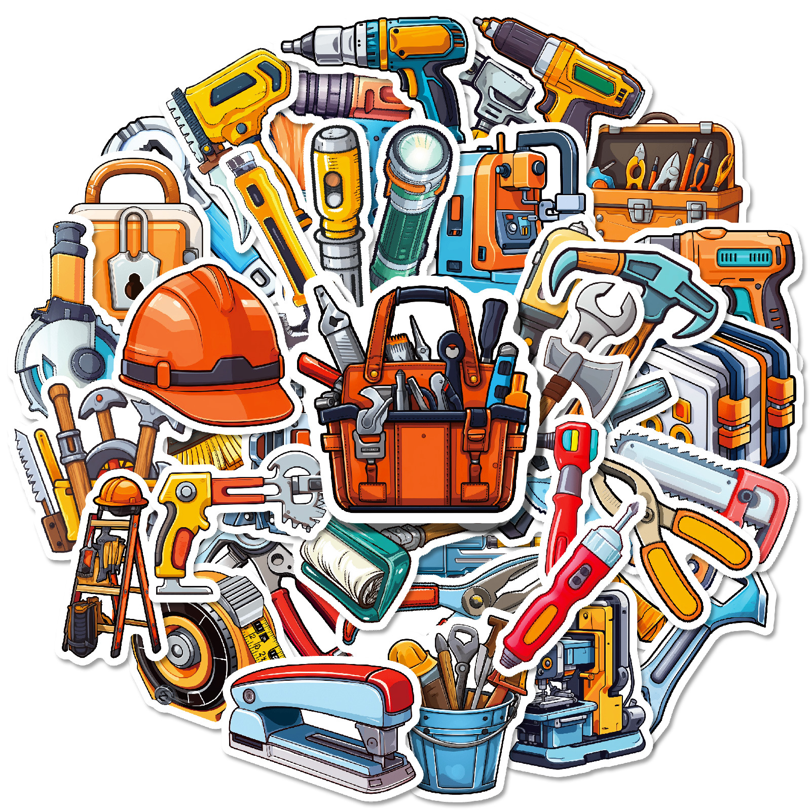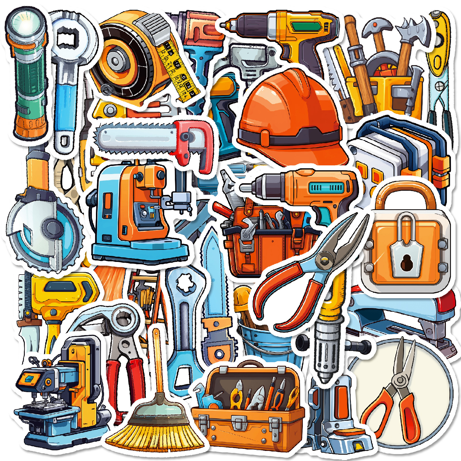 뜨거운 판매 50 개의 새로운 도구 큰 경쟁 스티커 국경 어린이 만화 전기 드릴 도끼 수리 키트를 보았다스토어 가기