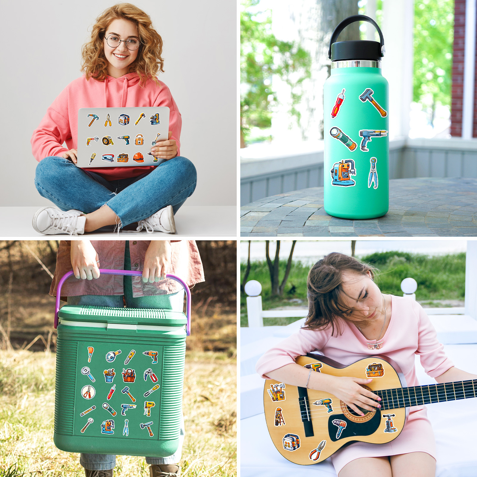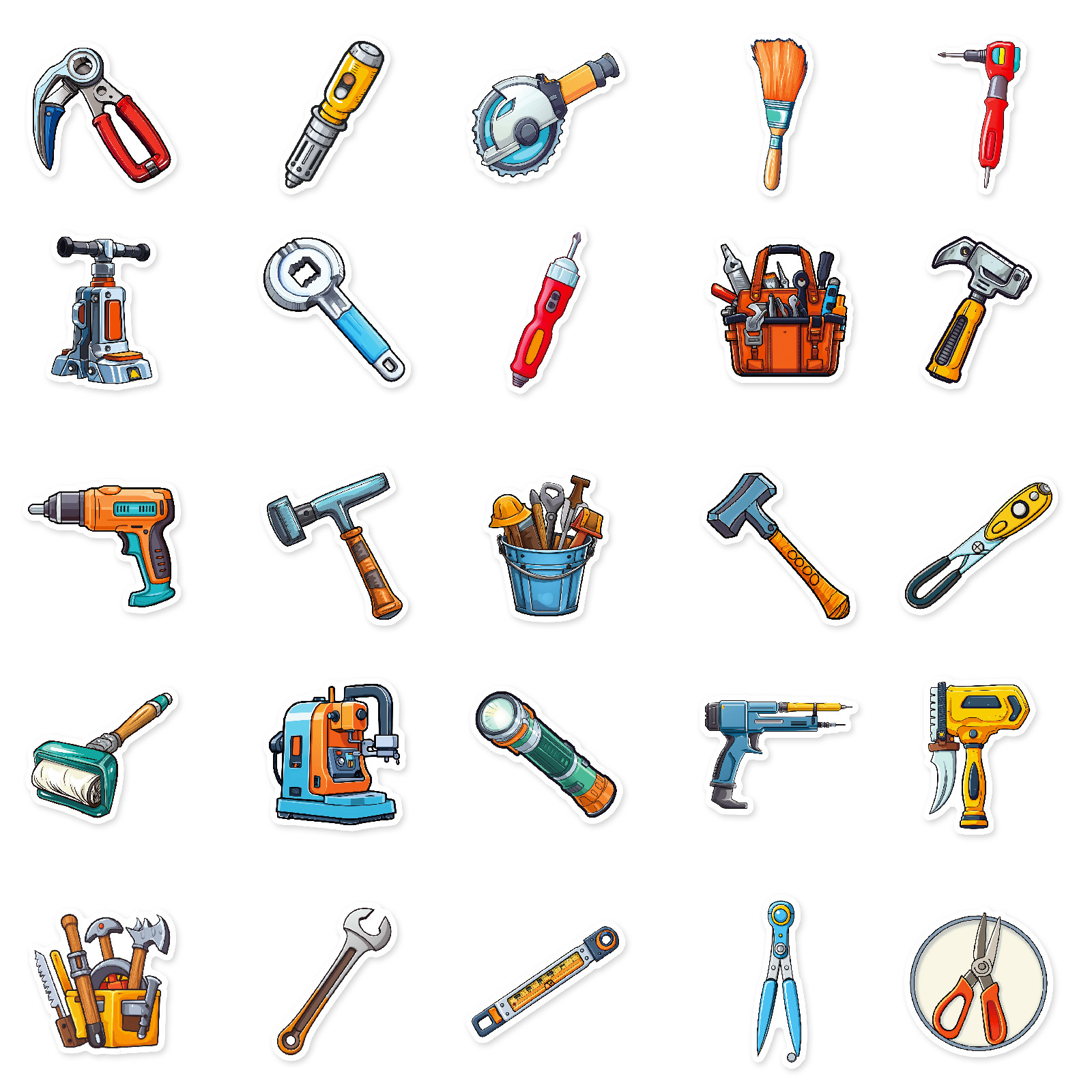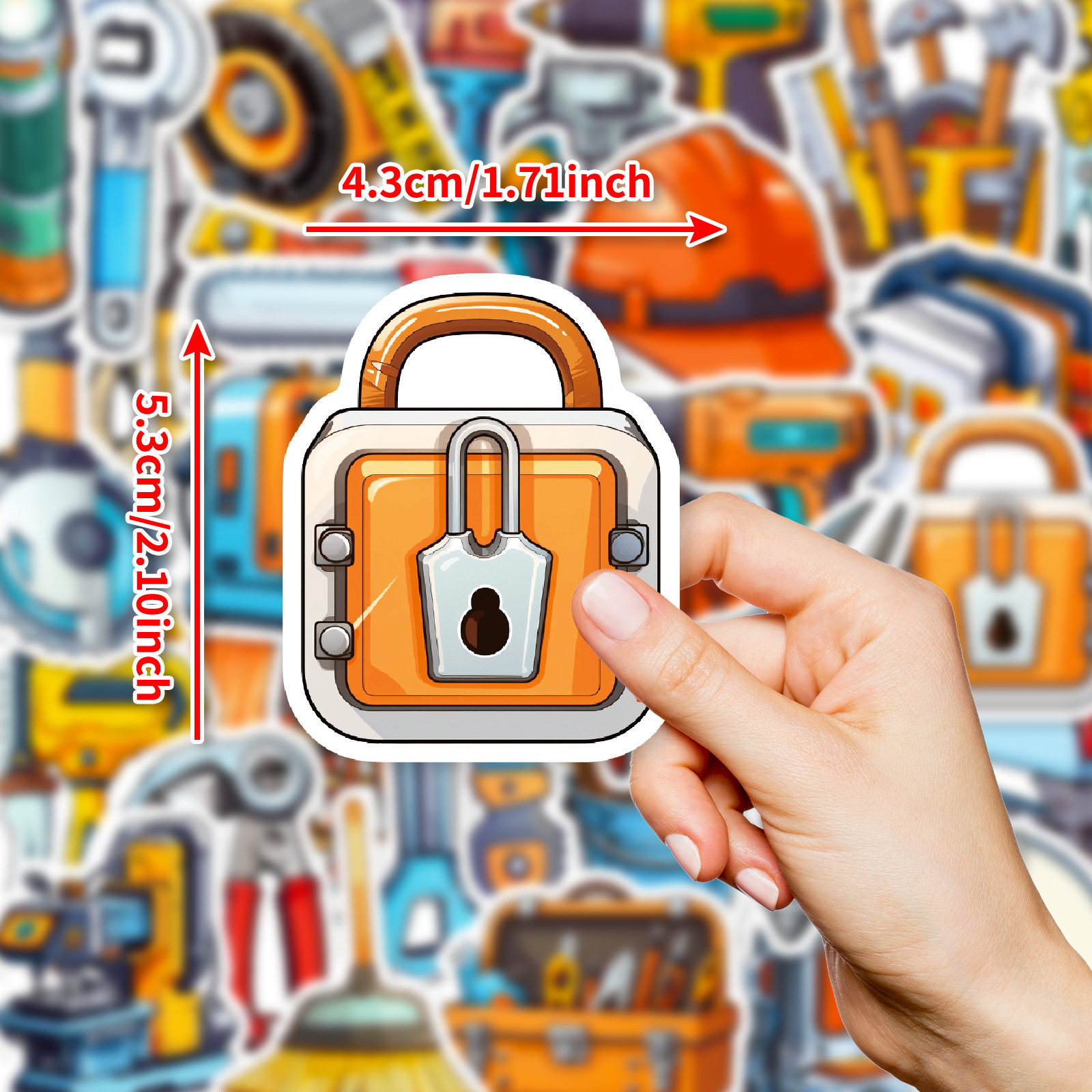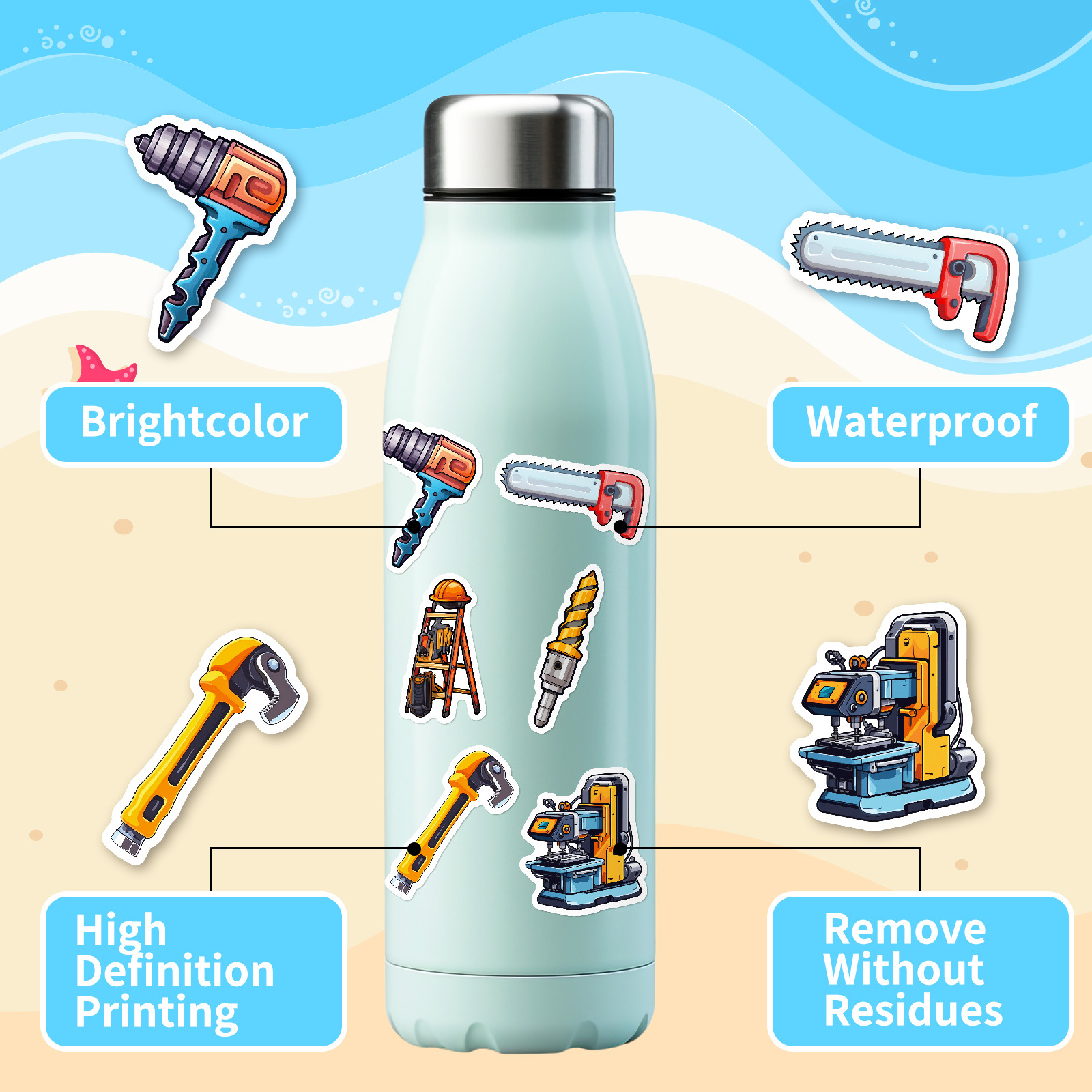 뜨거운 판매 50 개의 새로운 도구 큰 경쟁 스티커 국경 어린이 만화 전기 드릴 도끼 수리 키트를 보았다스토어 가기
