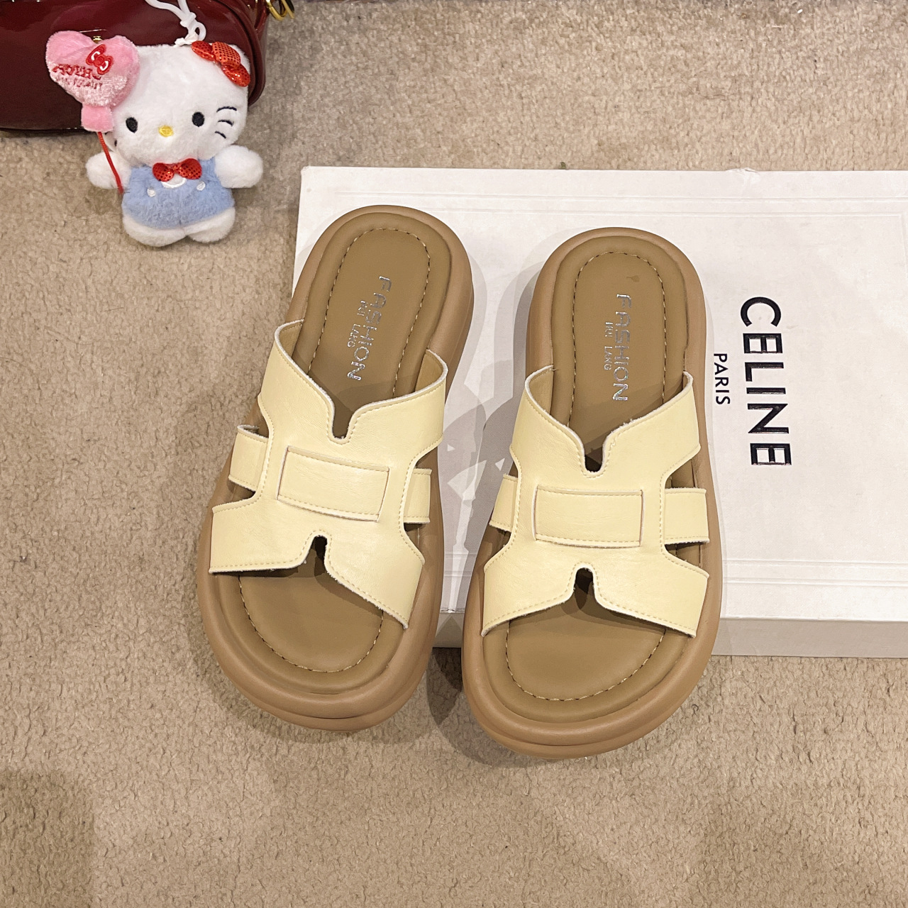 두꺼운 밑창 샌들과 슬리퍼 여름 착용 2025 새로운 한 단어 부드러운 밑창 느낌 캐주얼 일일복 여성 슬리퍼 공장스토어 가기