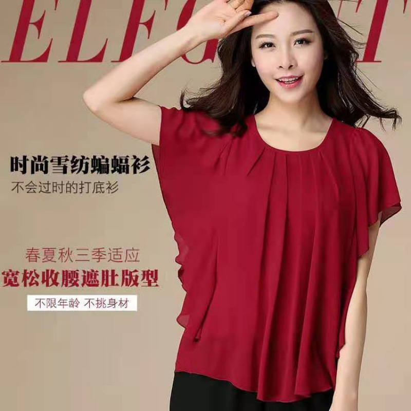 뚱뚱한 여성을위한 쉬폰 셔츠 플러스 사이즈 여성 의류 100kg 새로운 배 커버 슬리밍 쉬폰 셔츠 루즈 솔리드 컬러 어머니 셔츠