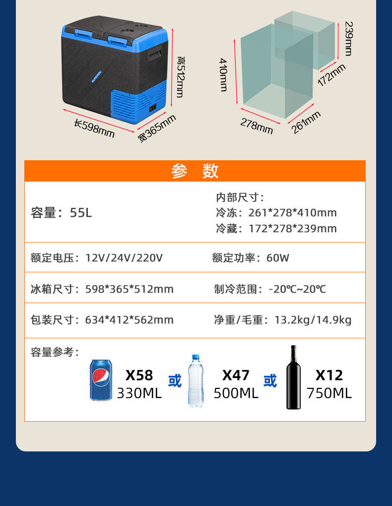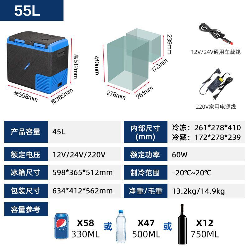 • KLS 이중 목적 이중 온도 이중 제어 이중 도어 55리터 가정용 및 차량용