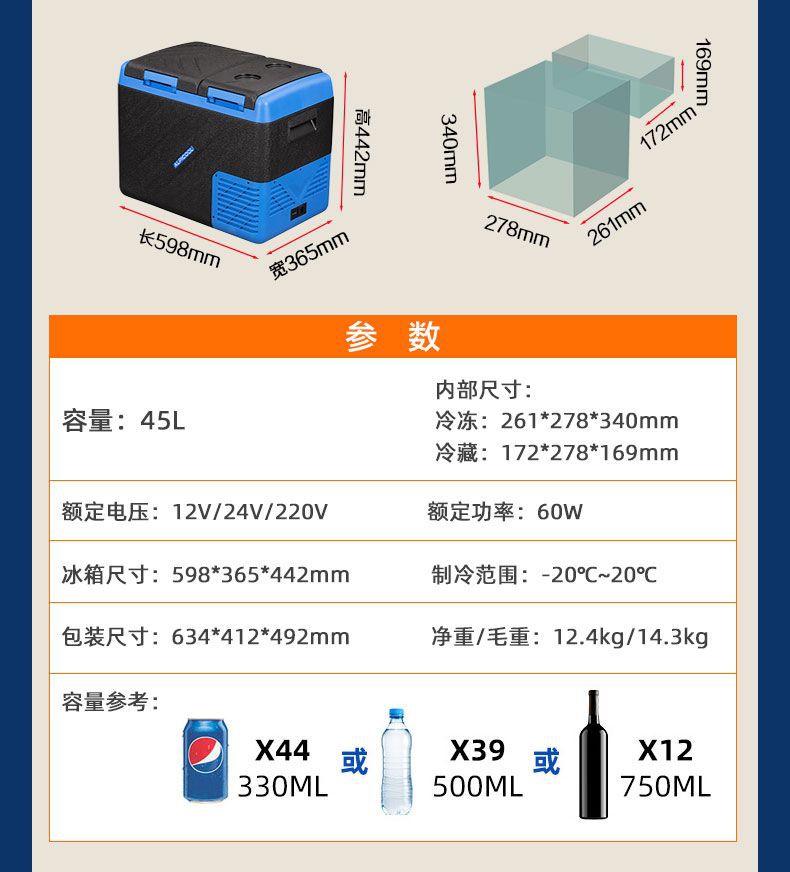 • KLS 가정용 및 차량용 이중 목적 이중 온도 이중 제어 이중 도어 45리터