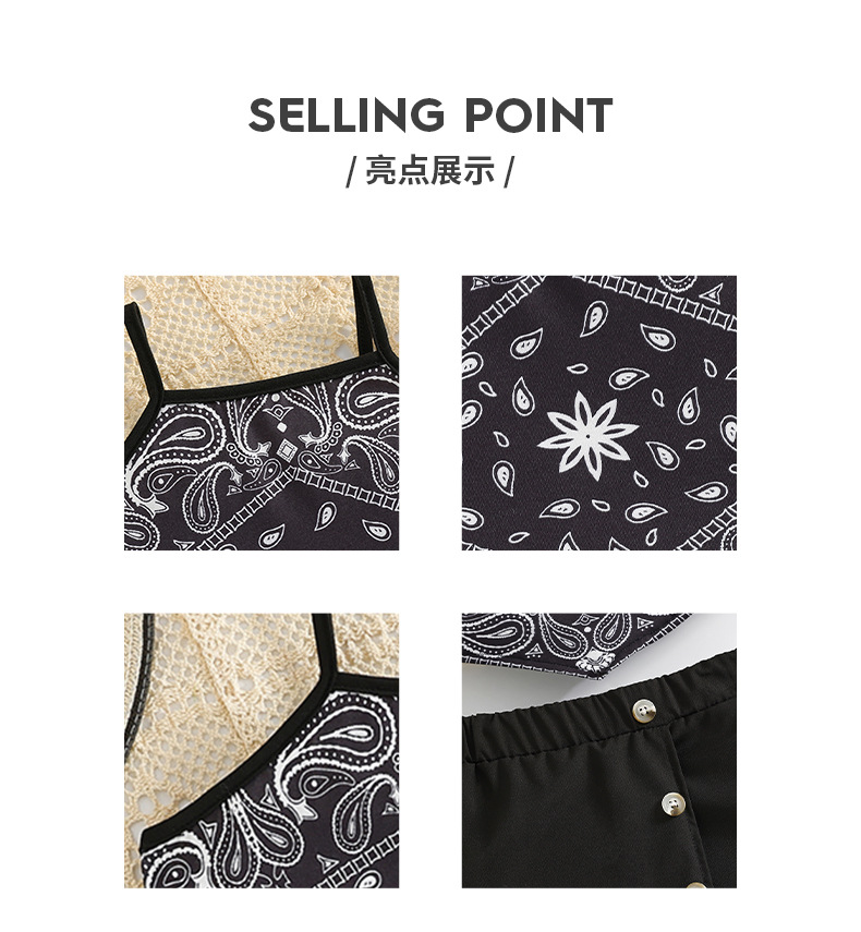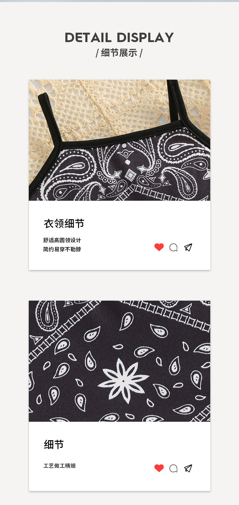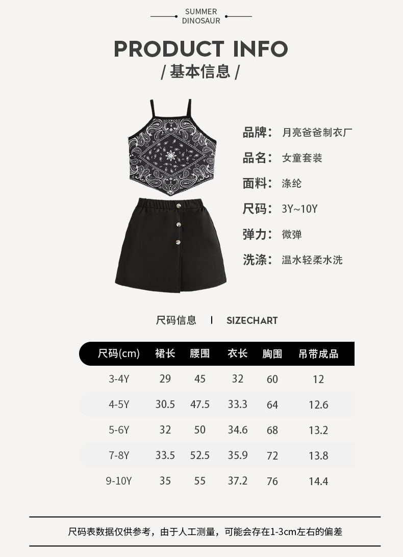 국경 간 소녀 여름 세트 캐슈 플라워 슬링 탑 블랙 짧은 바지 스커트 여름 여성 어린이 투피스 세트스토어 가기