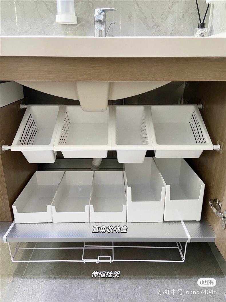 주방 마감 바구니 텔레스코픽 로드 싱크대 아래 스토리지 바구니 펀치 무료 스토리지 랙 스토리지 박스 캐비닛 아티팩트