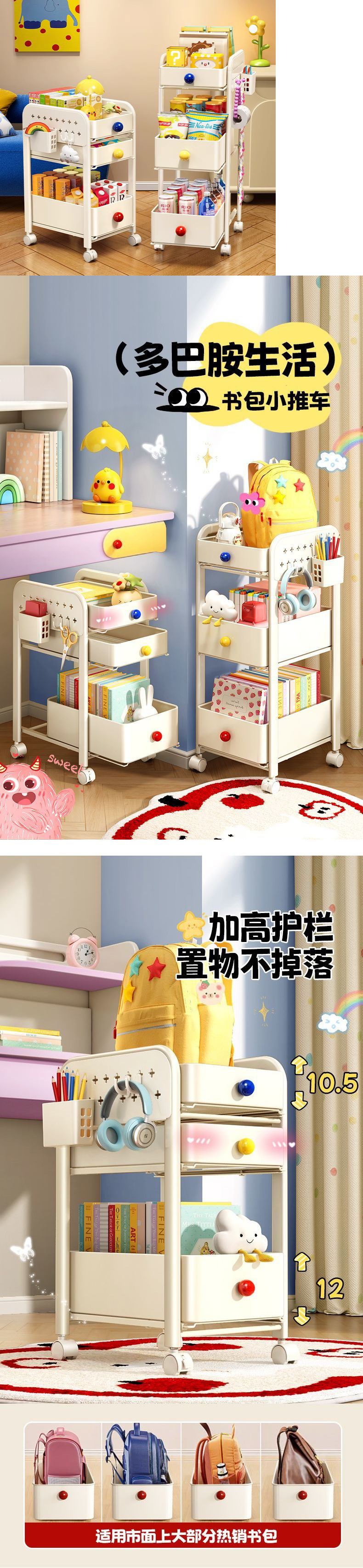 Tiandi Yu 학교 가방 보관 랙 다층 가정용 바닥 스탠딩 학생 책상 아래 휠 책 보관 이동식 트롤리스토어 가기