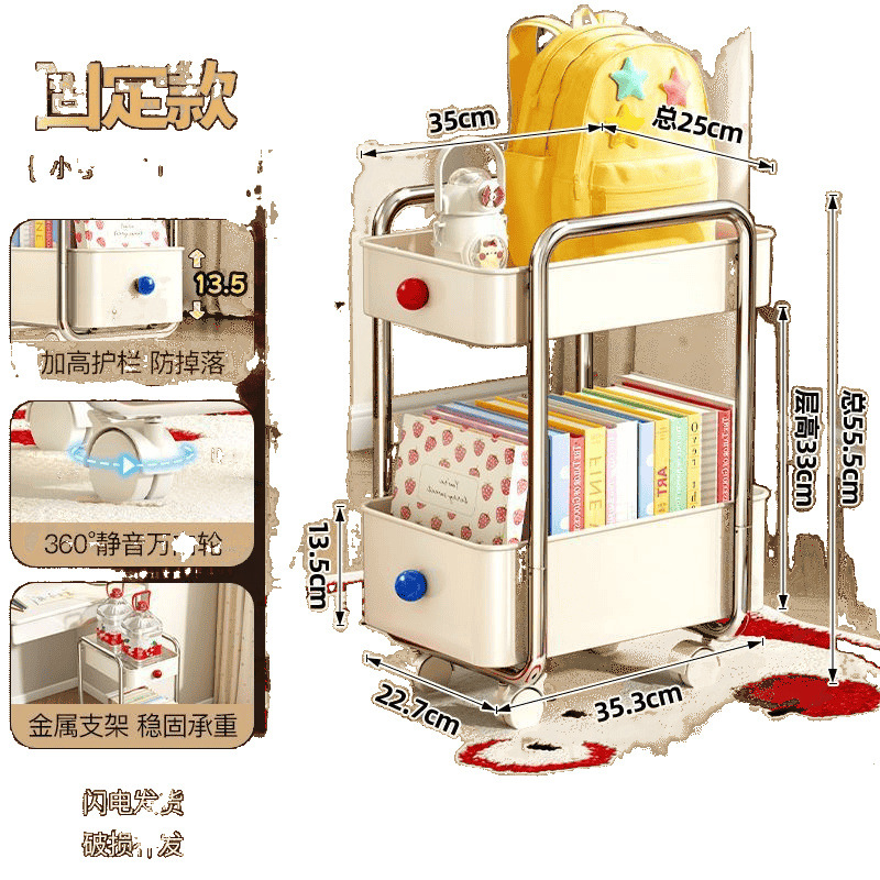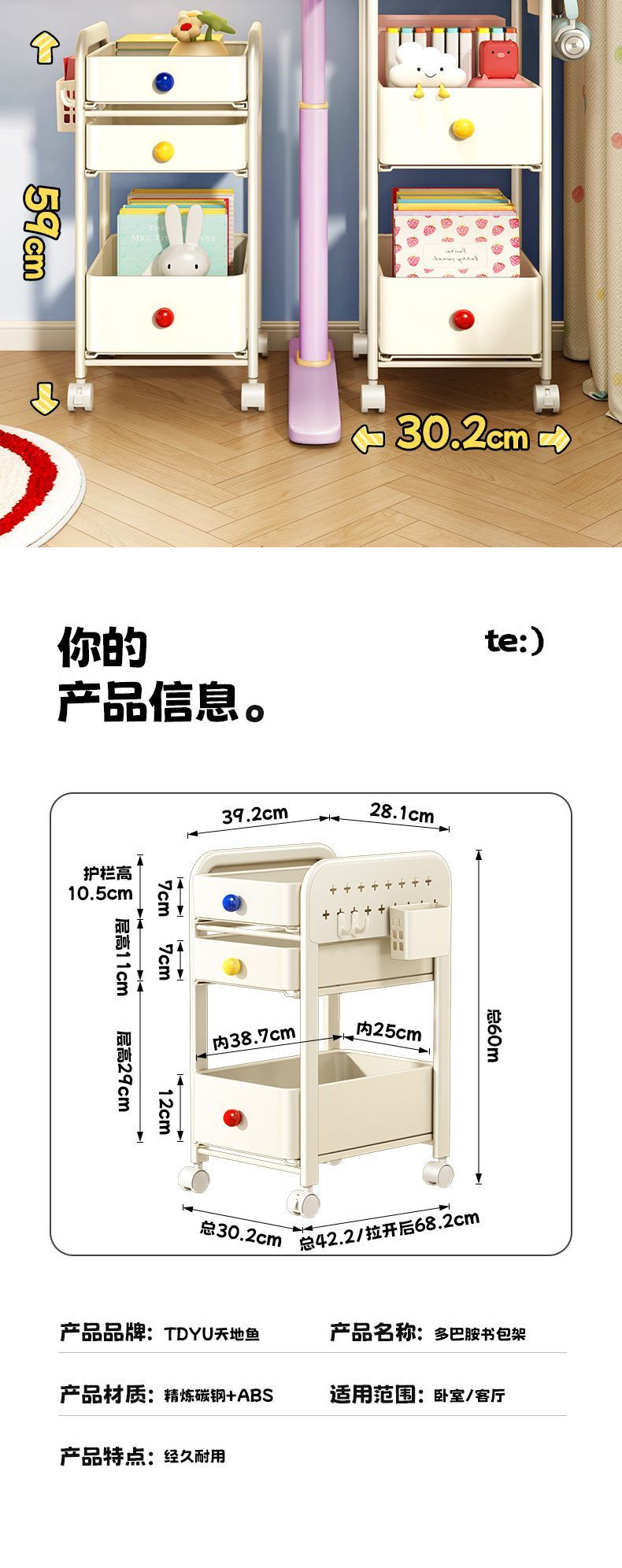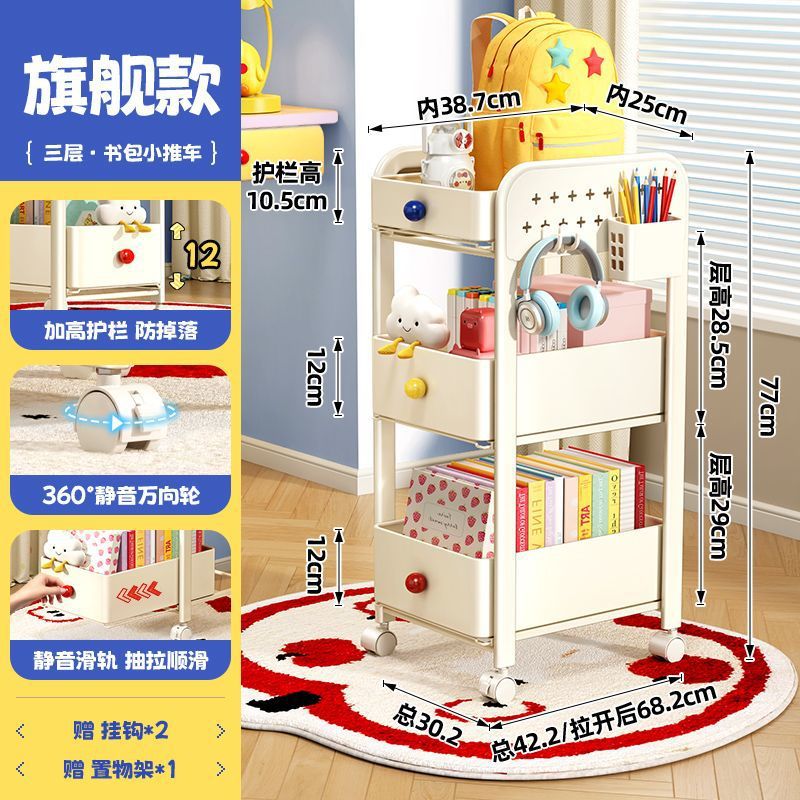 Tiandi Yu 학교 가방 보관 랙 다층 가정용 바닥 스탠딩 학생 책상 아래 휠 책 보관 이동식 트롤리
