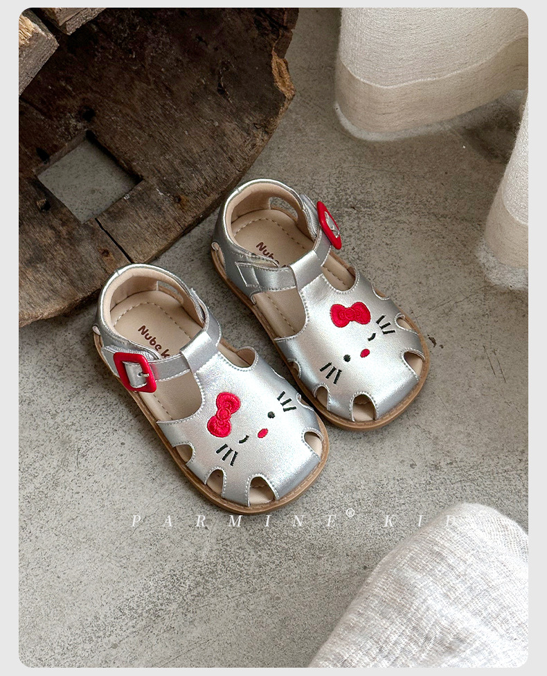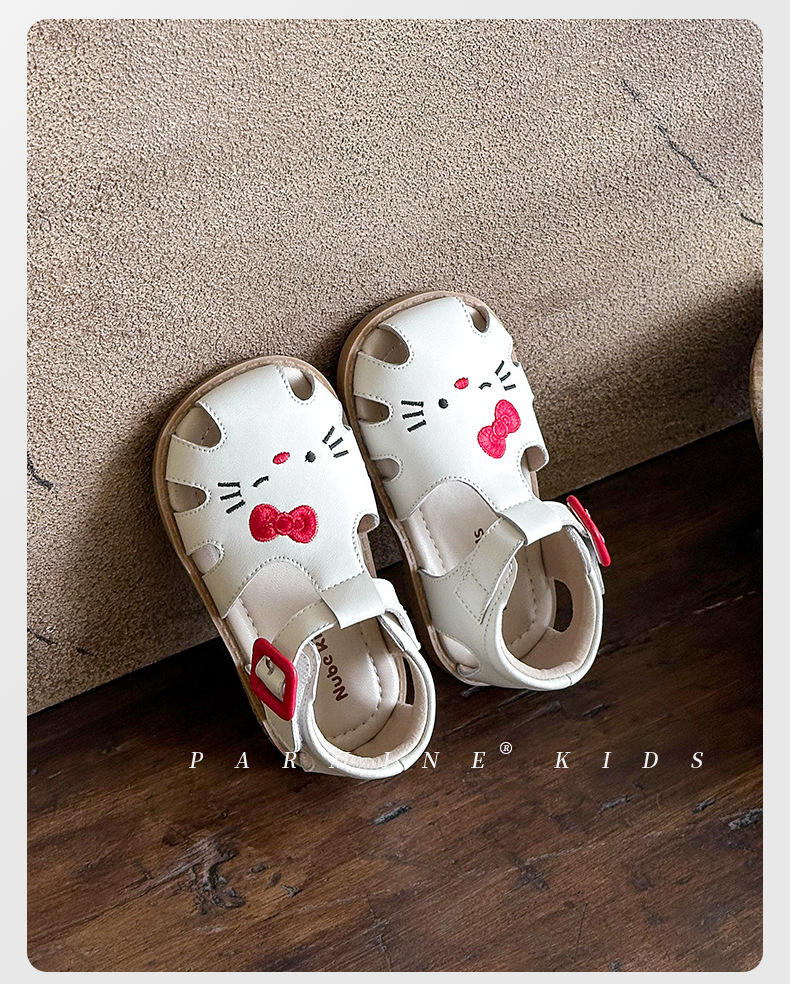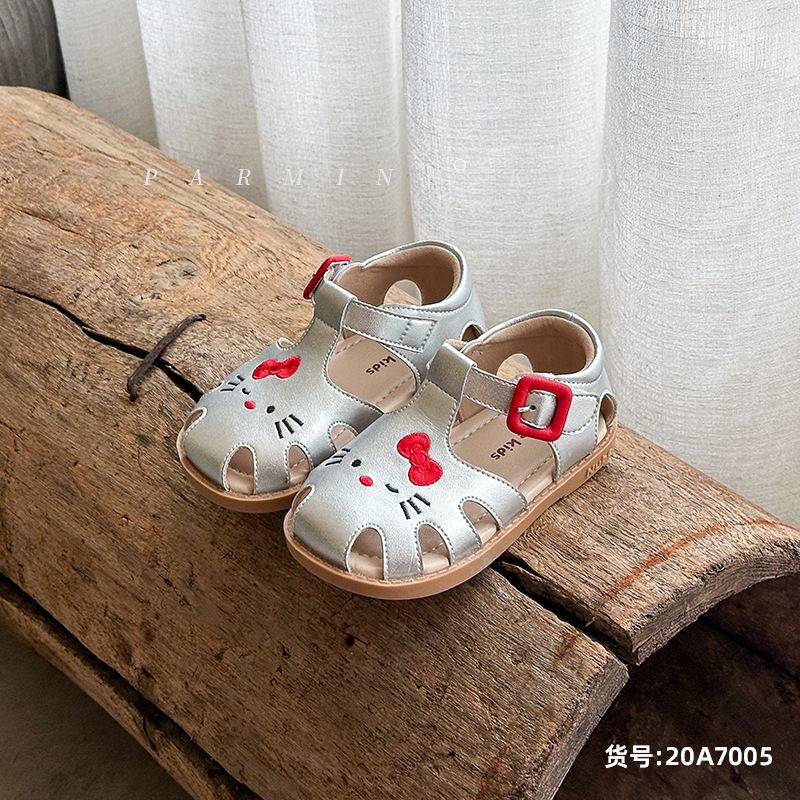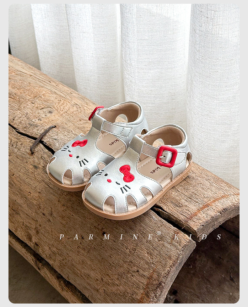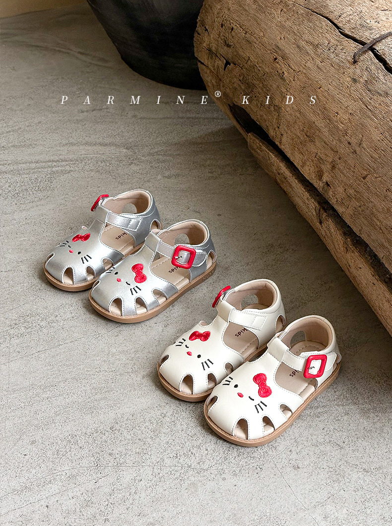 정품 가죽 어린이 신발 소녀 샌들 귀여운 고양이 여름 새로운 아기 소녀 공주 해변 신발 한 세대 머리카락스토어 가기
