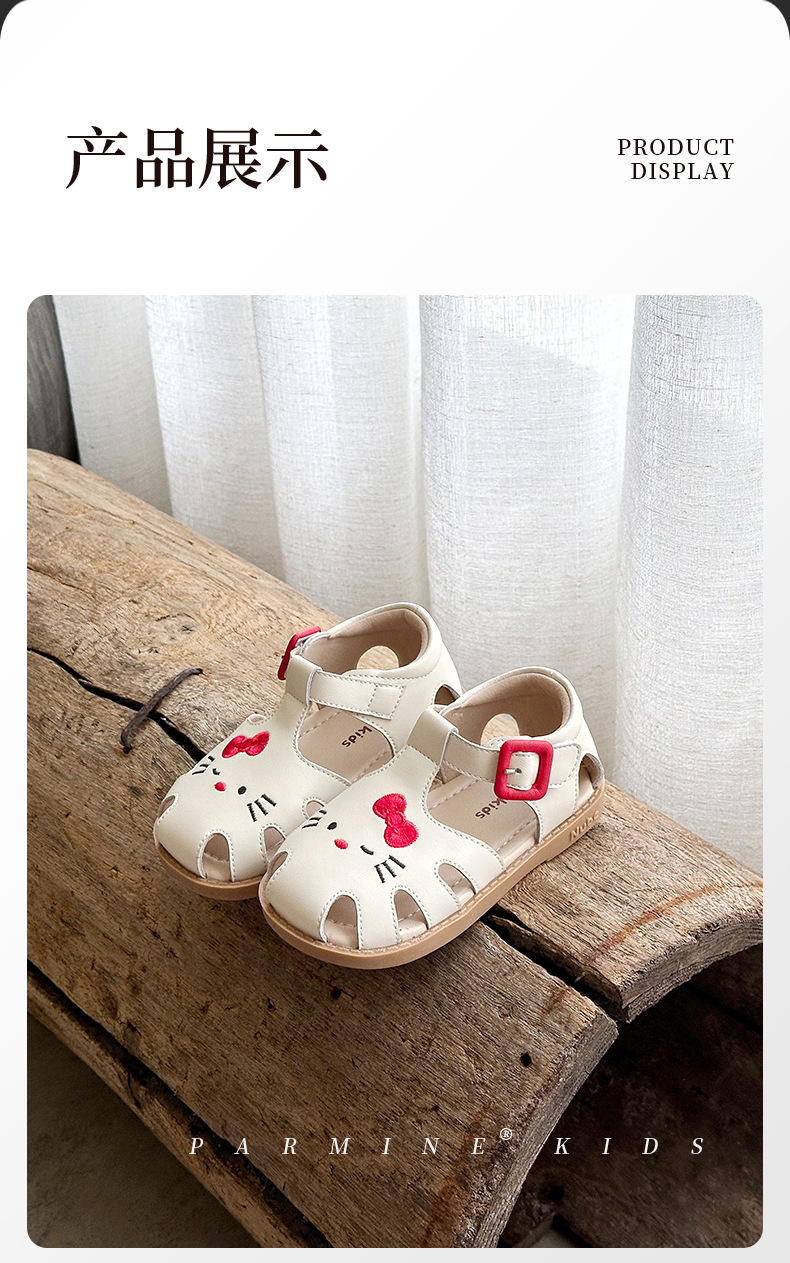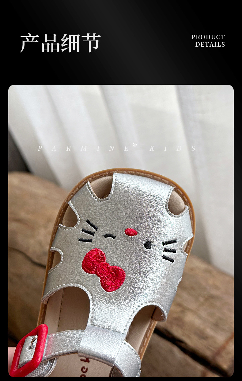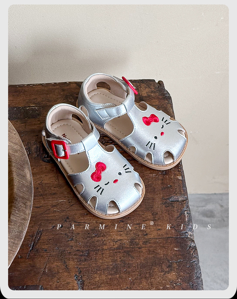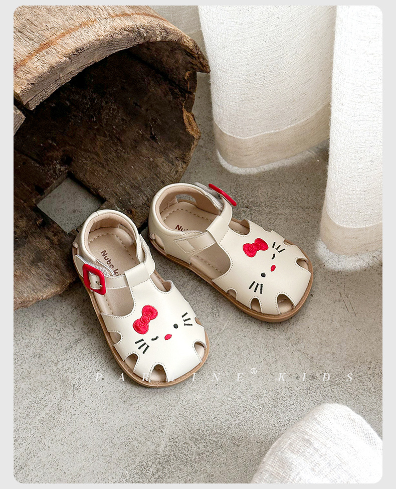 정품 가죽 어린이 신발 소녀 샌들 귀여운 고양이 여름 새로운 아기 소녀 공주 해변 신발 한 세대 머리카락스토어 가기