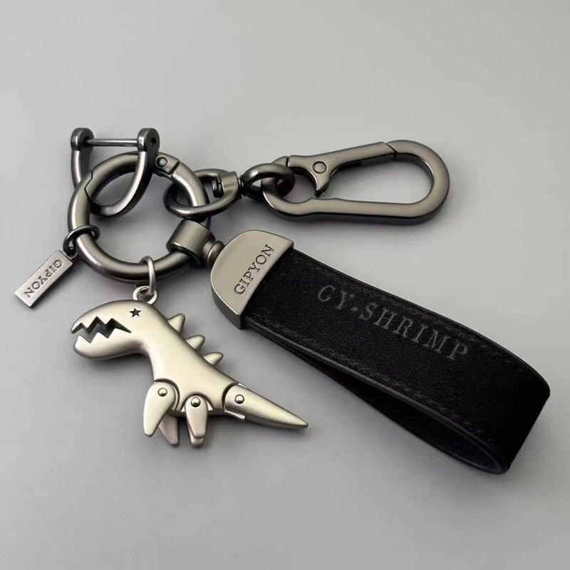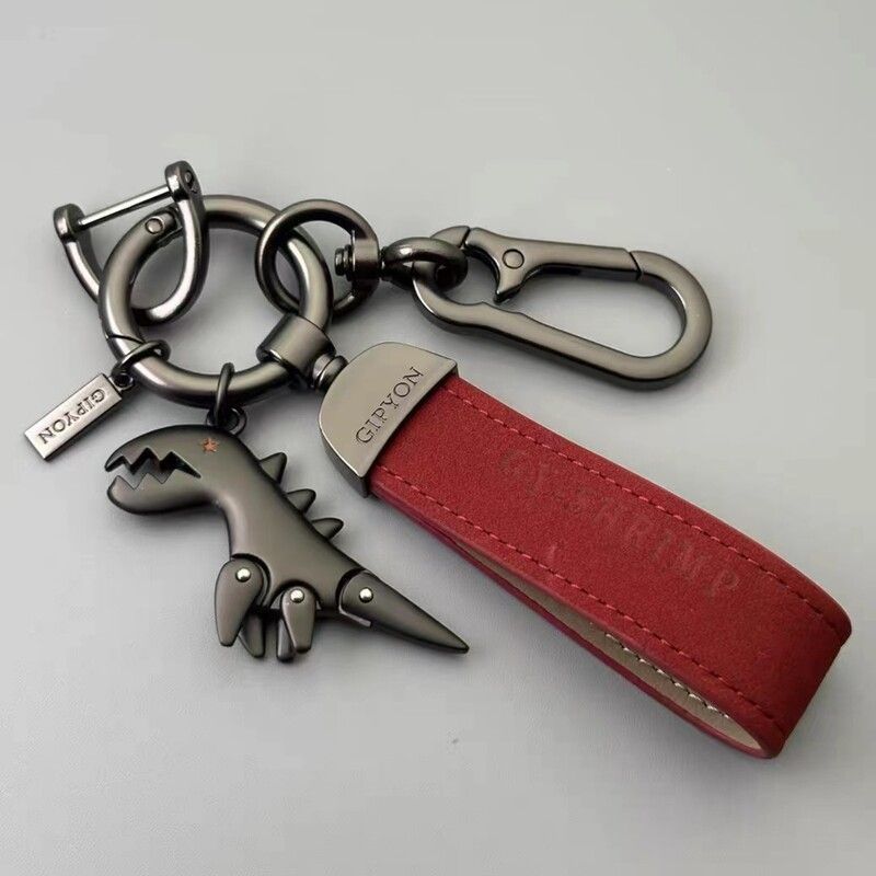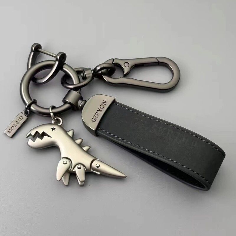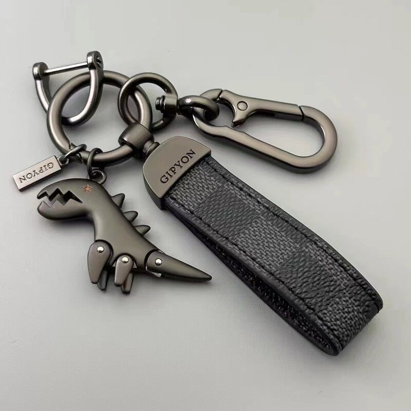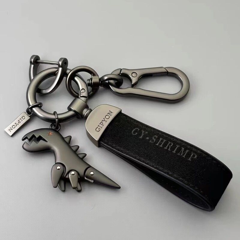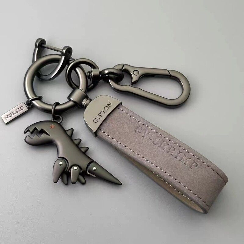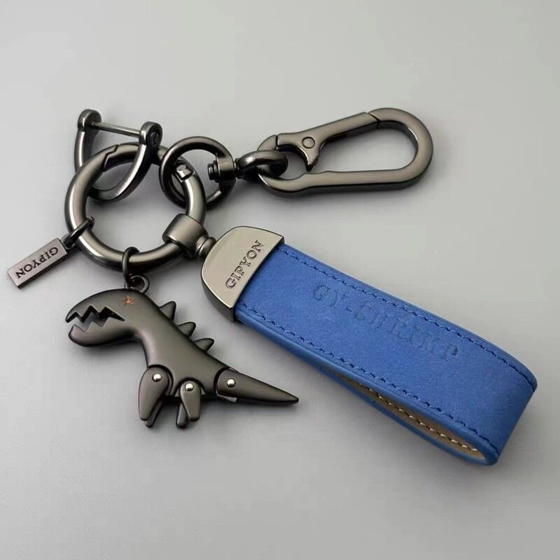 귀여운 만화 작은 공룡 키 체인 금속 펜던트 남자 자동차 키 체인 하이 엔드 가죽 로프 키 체인 허리 걸이