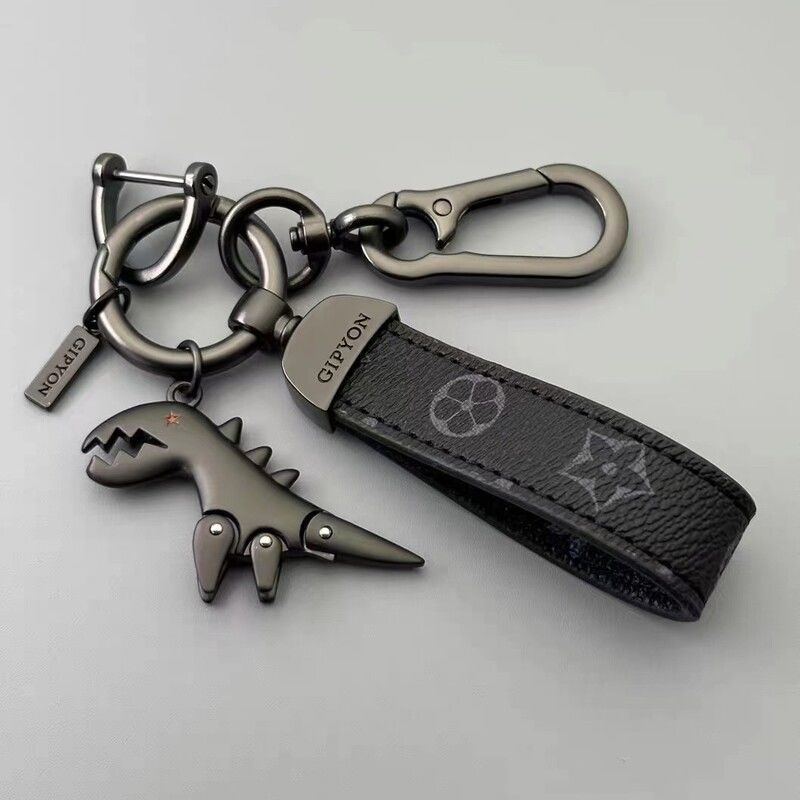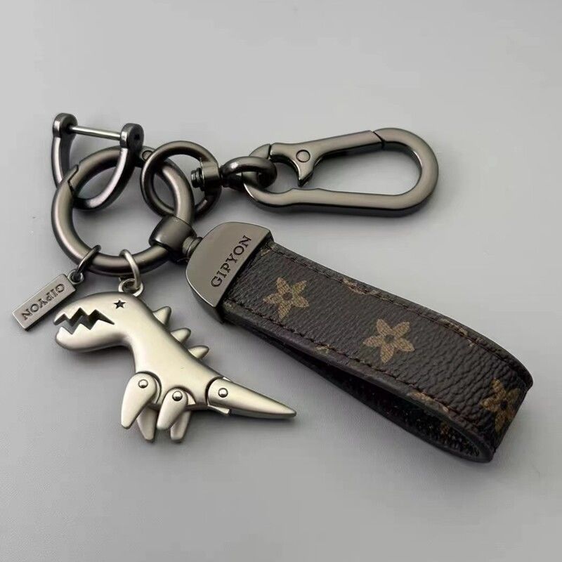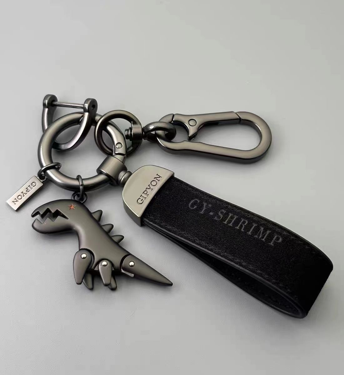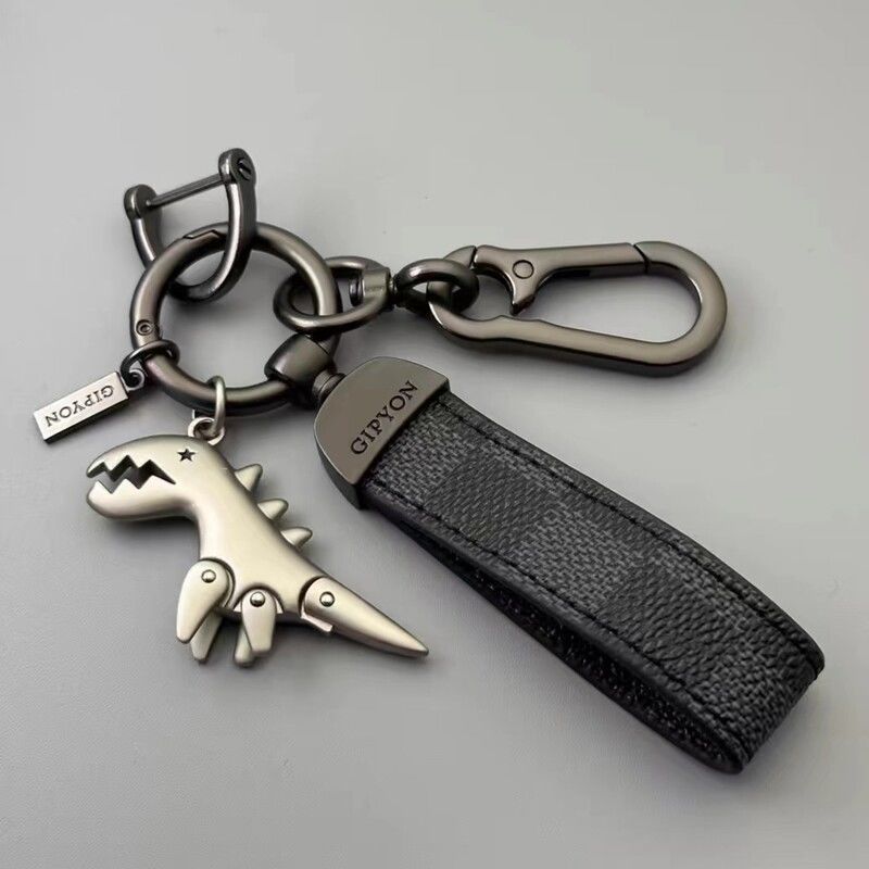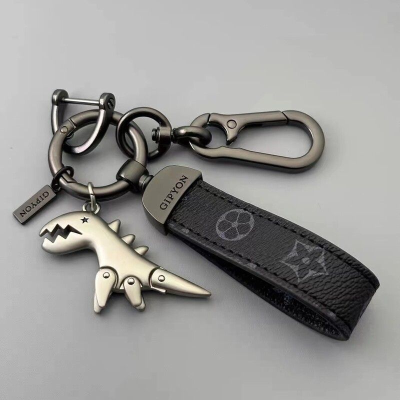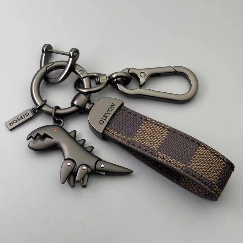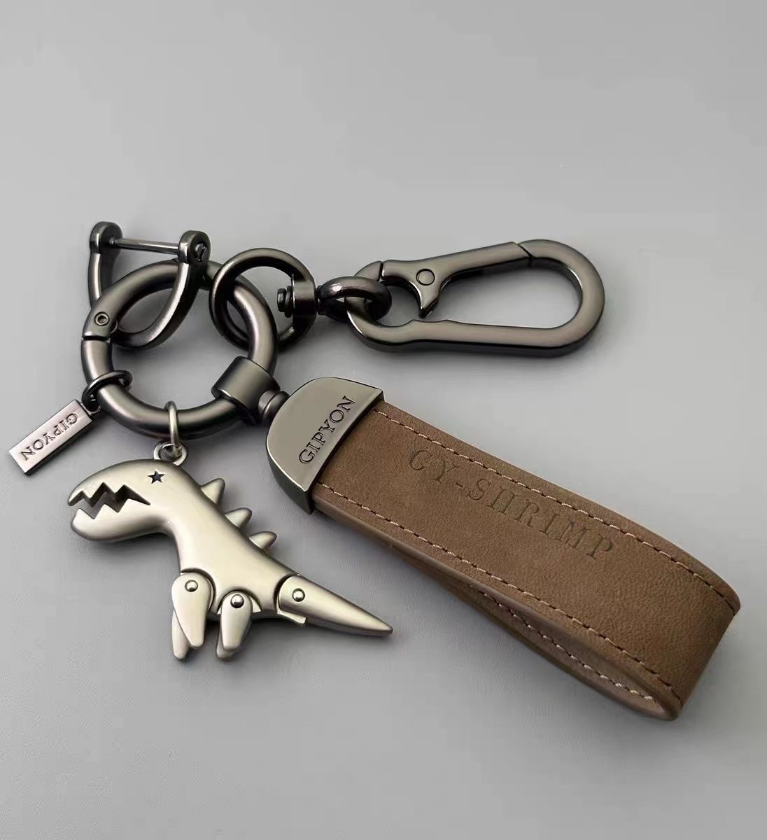 귀여운 만화 작은 공룡 키 체인 금속 펜던트 남자 자동차 키 체인 하이 엔드 가죽 로프 키 체인 허리 걸이