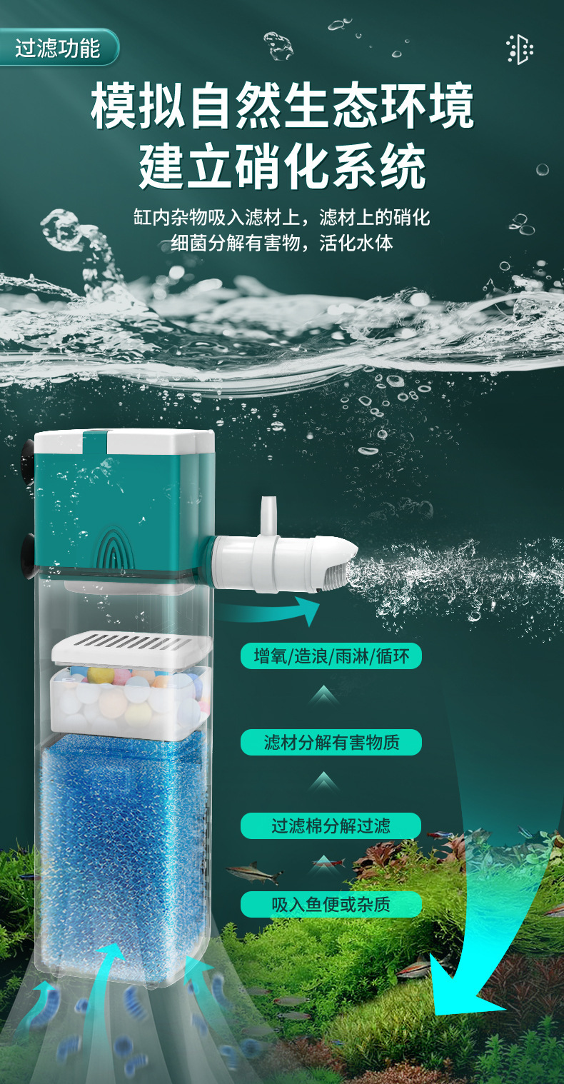 수조 필터, 자동 4-in-1 정수 순환, 내장형 수중 산소 펌프, 배변 흡입 필터 펌프, 소형 수족관스토어 가기
