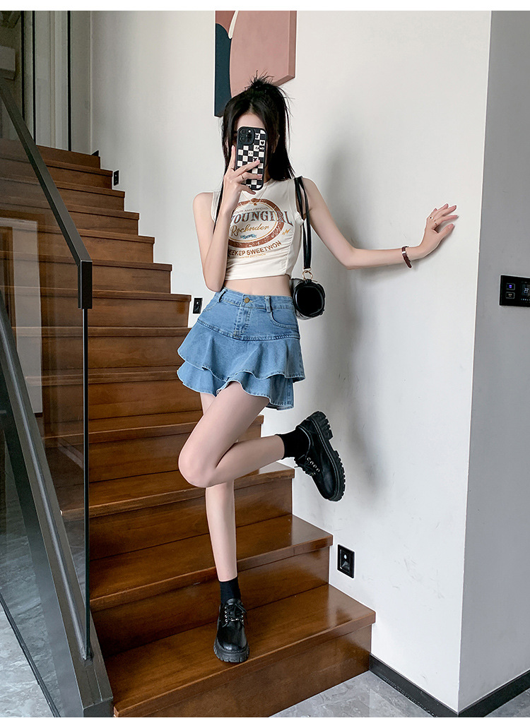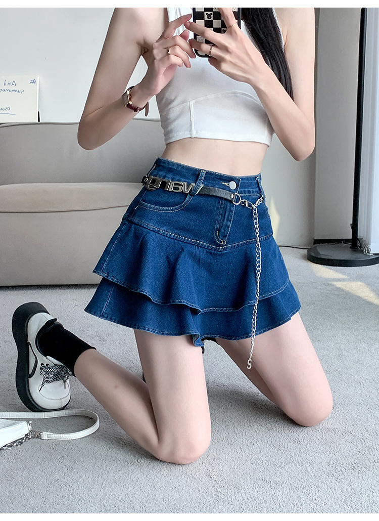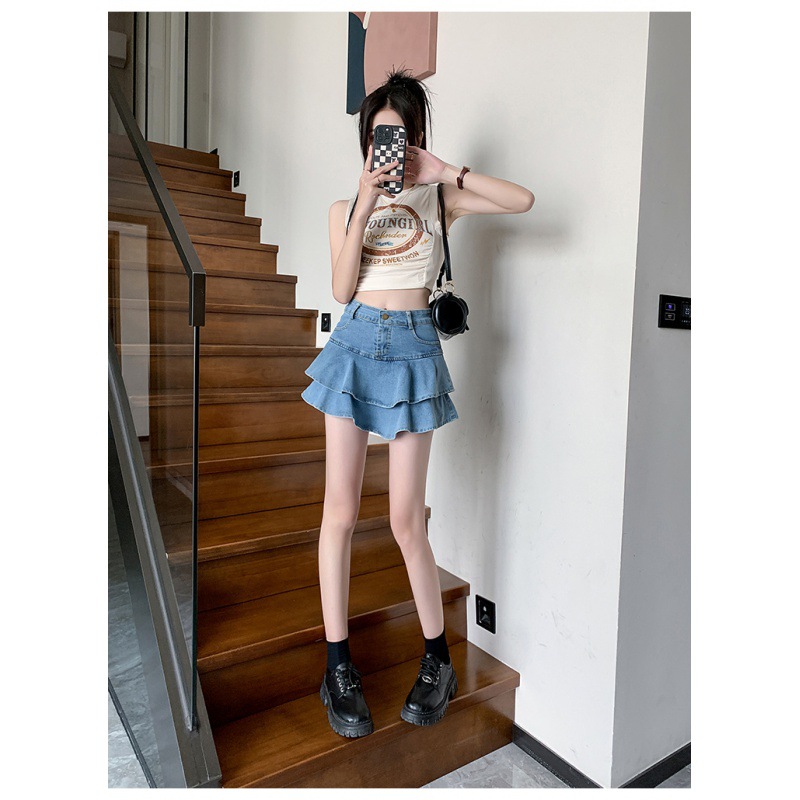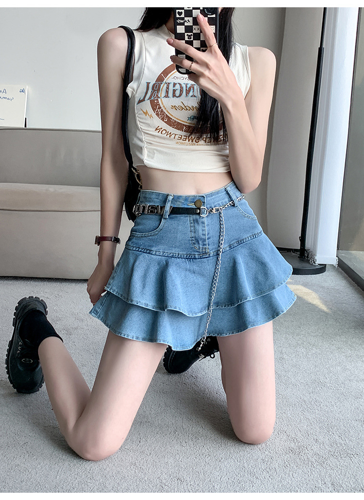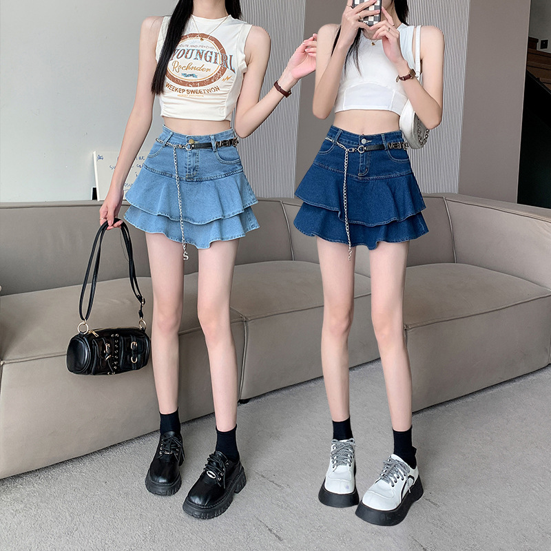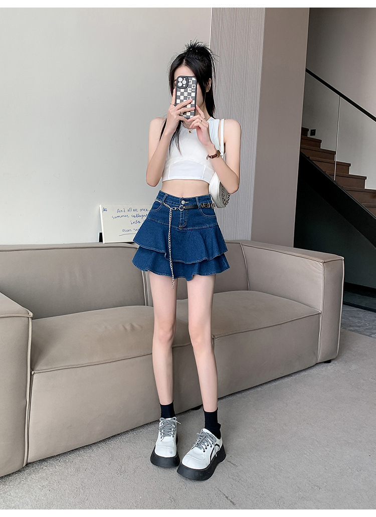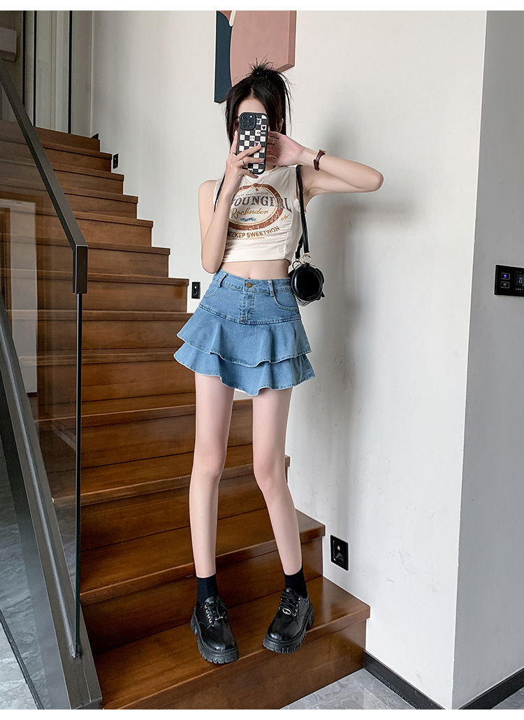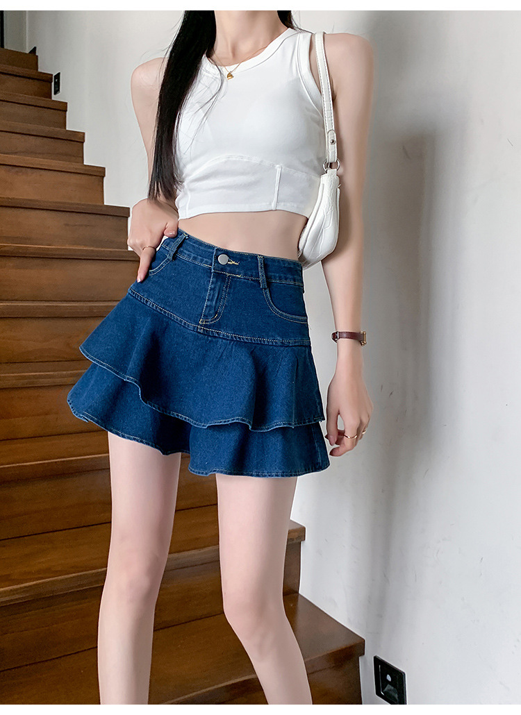 2024 데님 스커트, 여성용 스커트, 프렌치 레트로 하이웨이스트 케이크 스커트, 플리츠 스커트, 힙 커버 숏 스커트