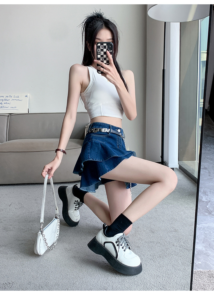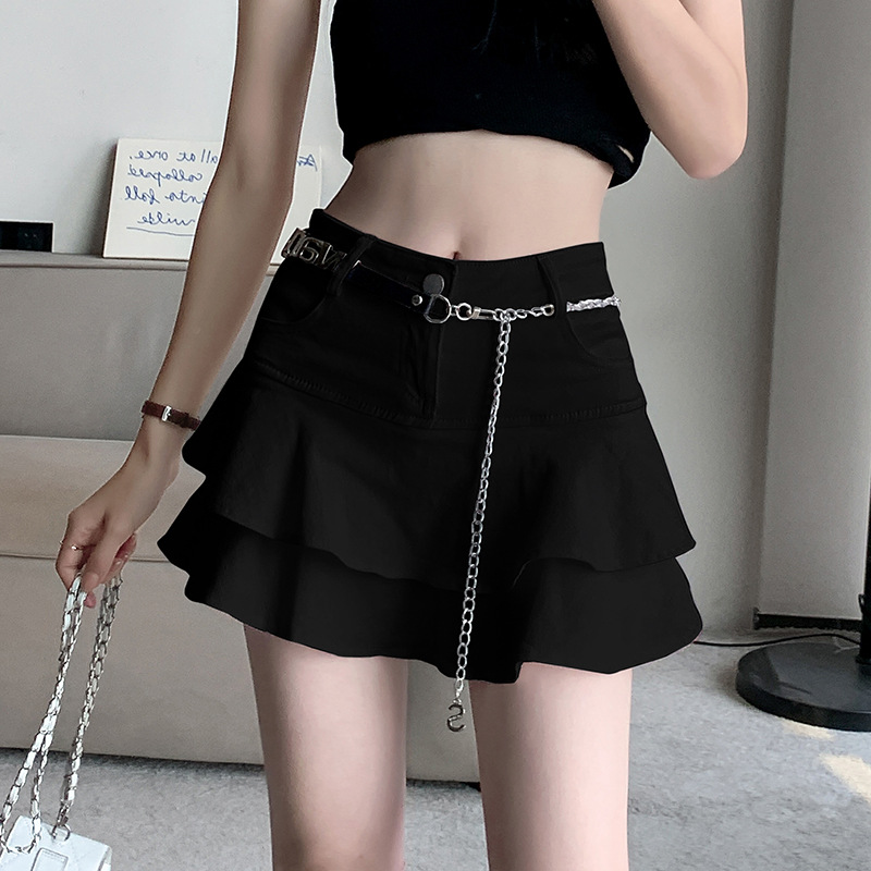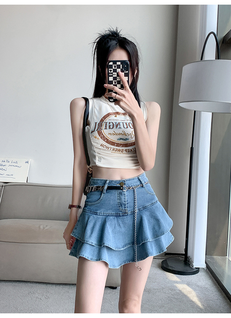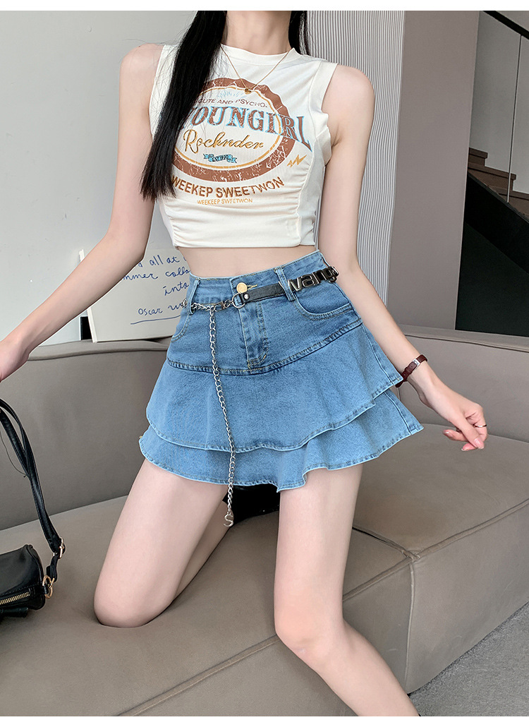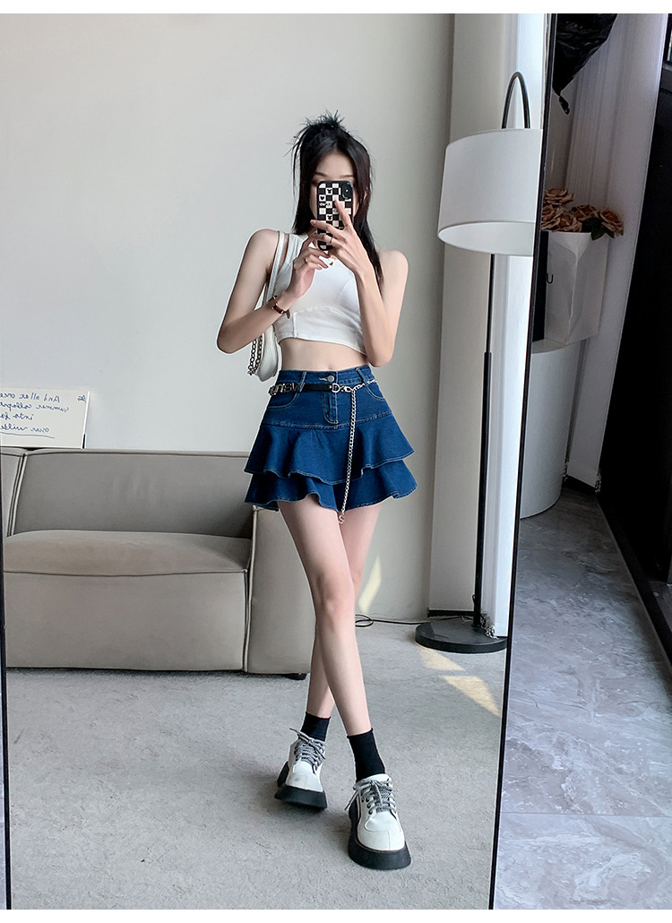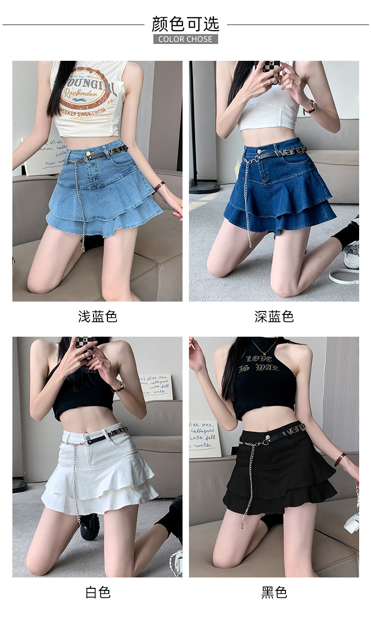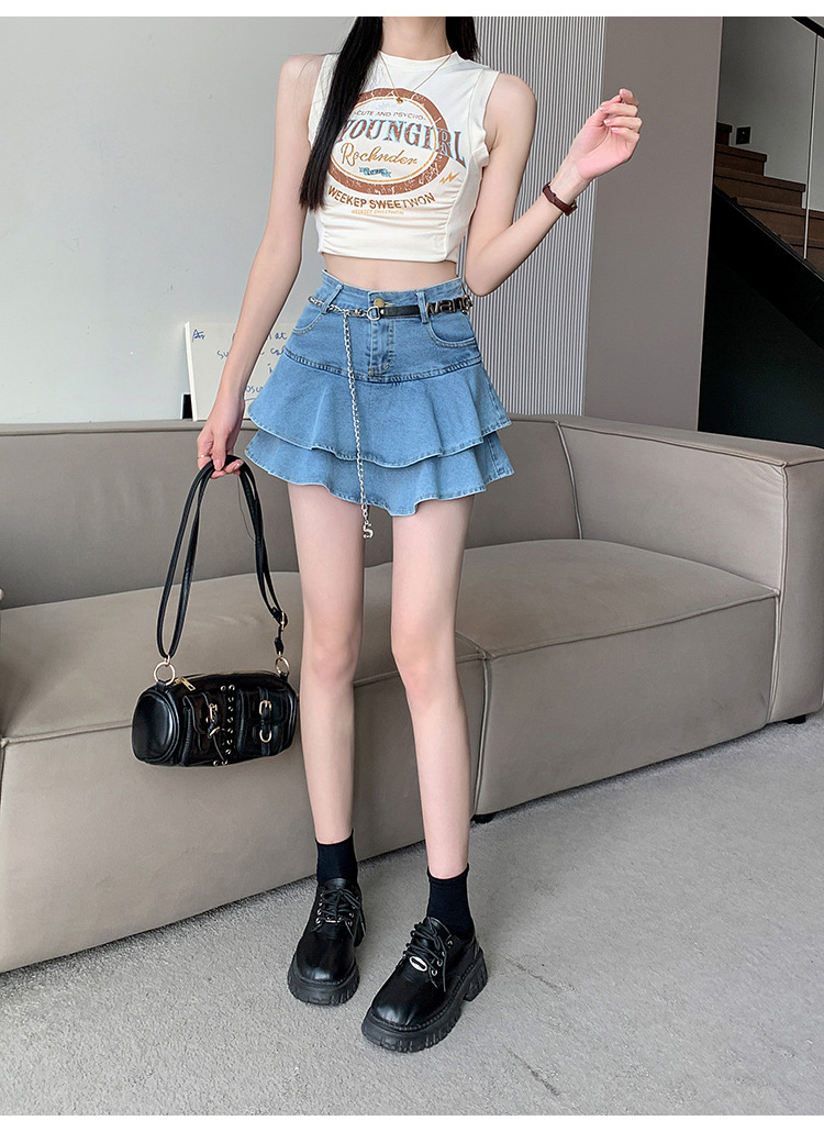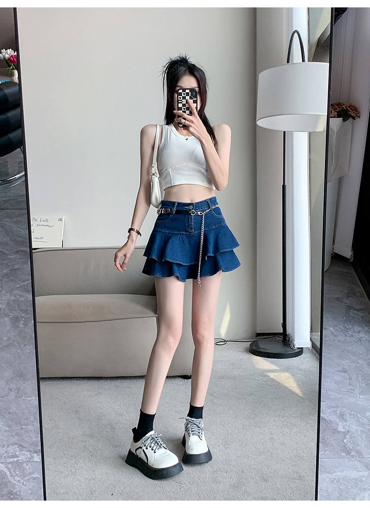 2024 데님 스커트, 여성용 스커트, 프렌치 레트로 하이웨이스트 케이크 스커트, 플리츠 스커트, 힙 커버 숏 스커트