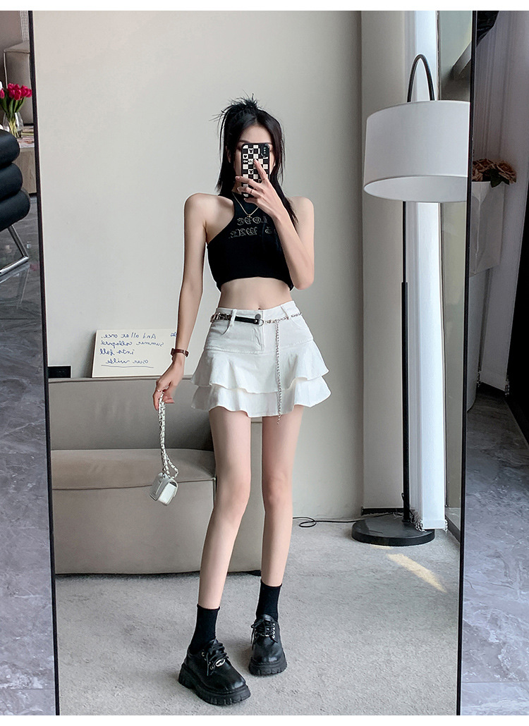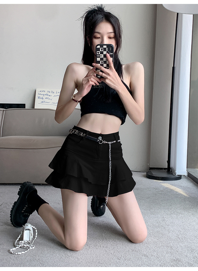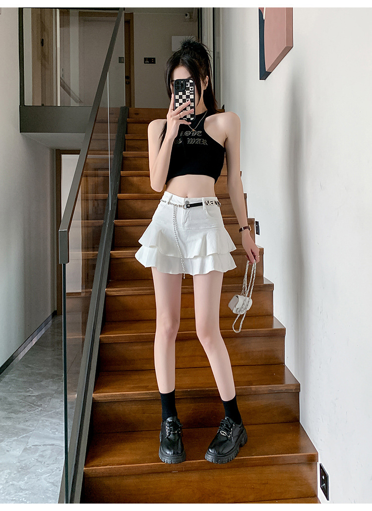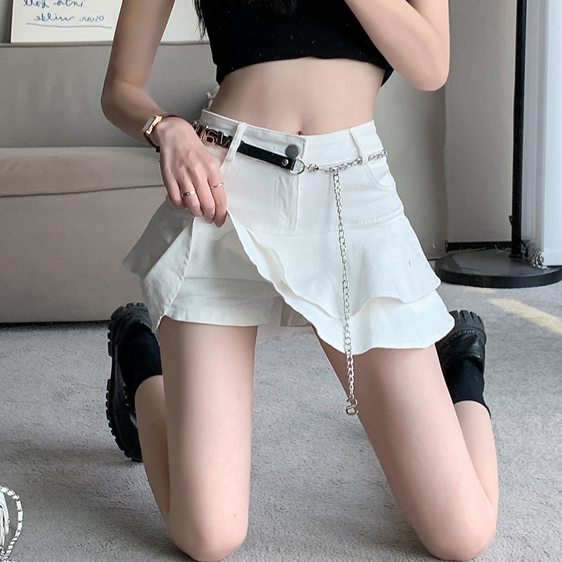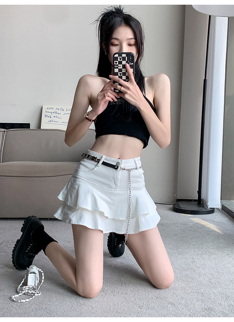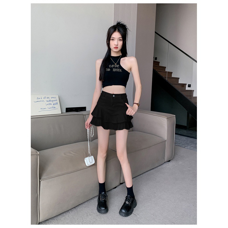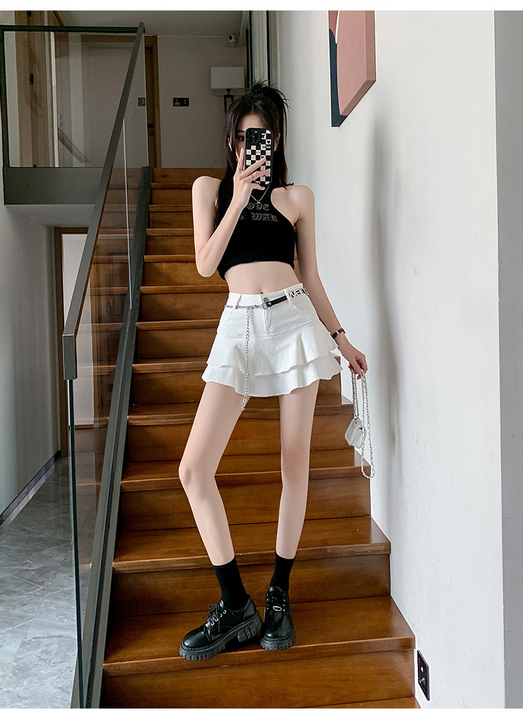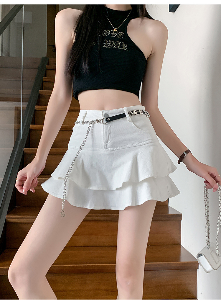 2024 데님 스커트, 여성용 스커트, 프렌치 레트로 하이웨이스트 케이크 스커트, 플리츠 스커트, 힙 커버 숏 스커트