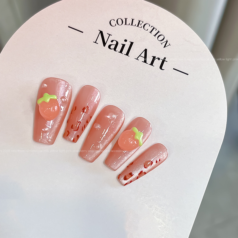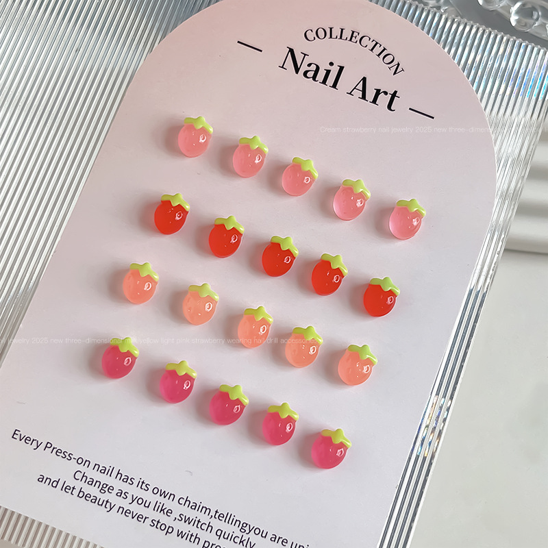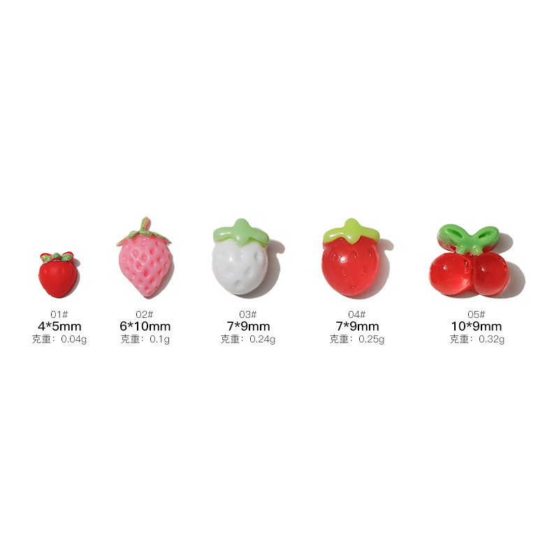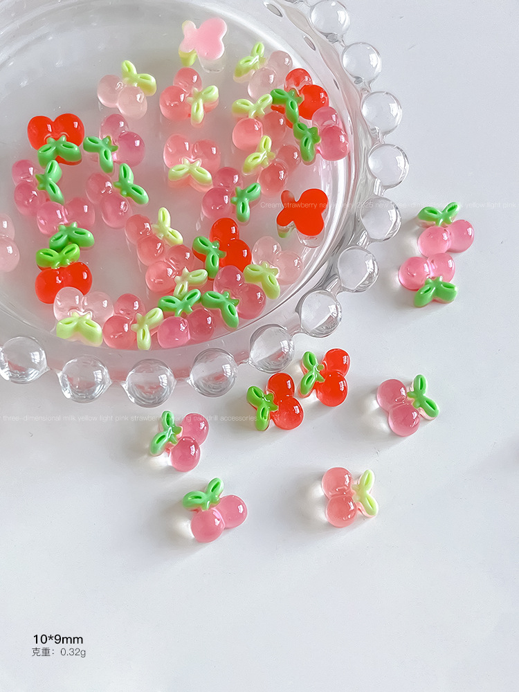 딸기 체리 네일 쥬얼리를 통해 얼음 2025 새로운 만화 3 차원 과일 미니 수지 네일 액세서리 도매
